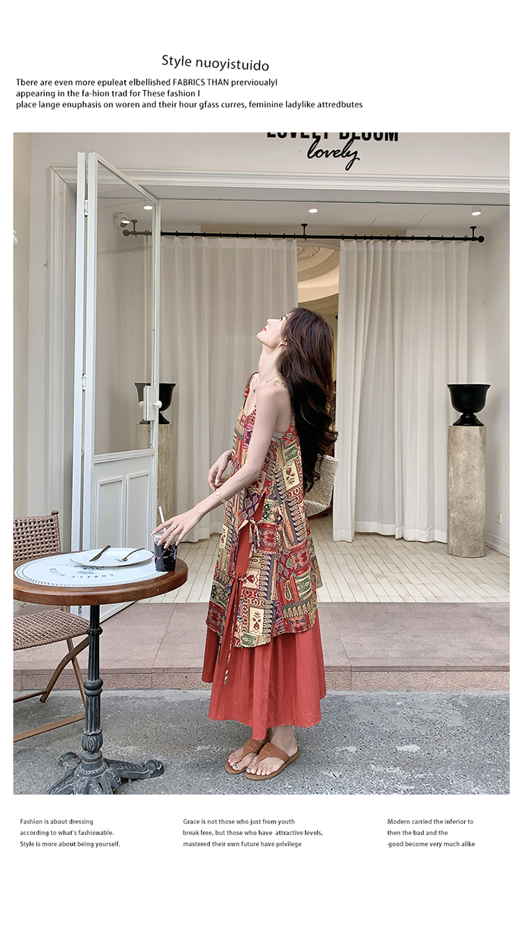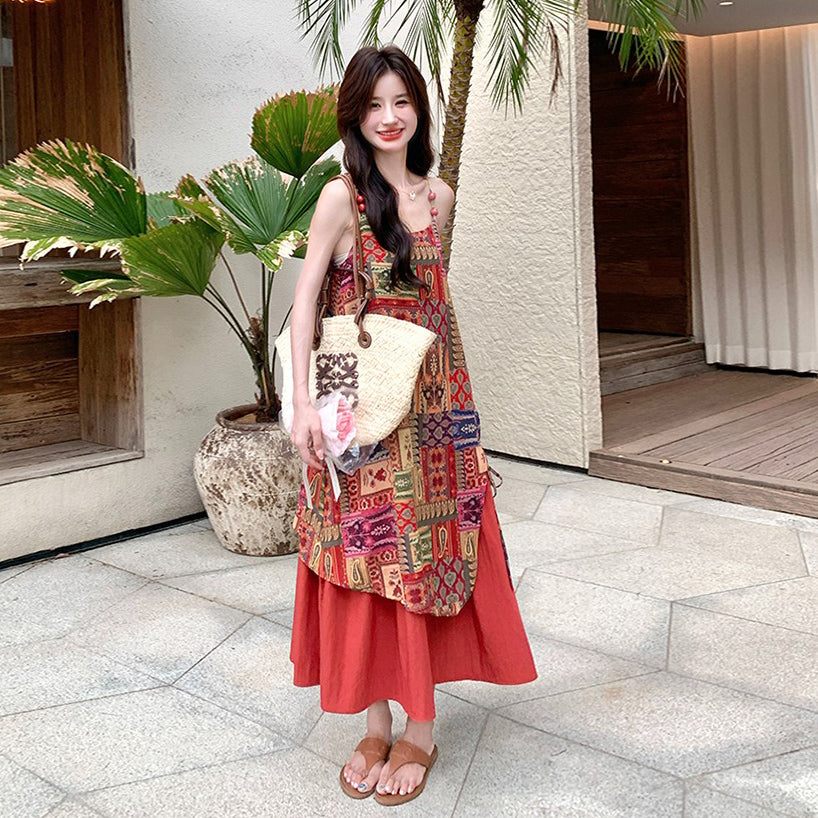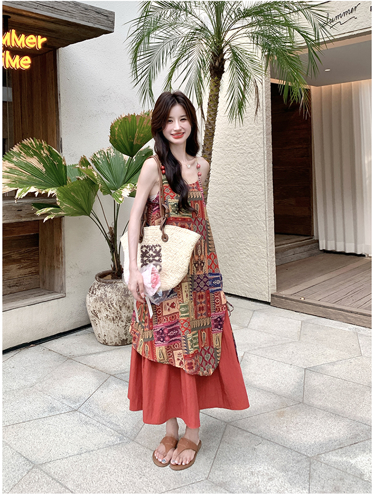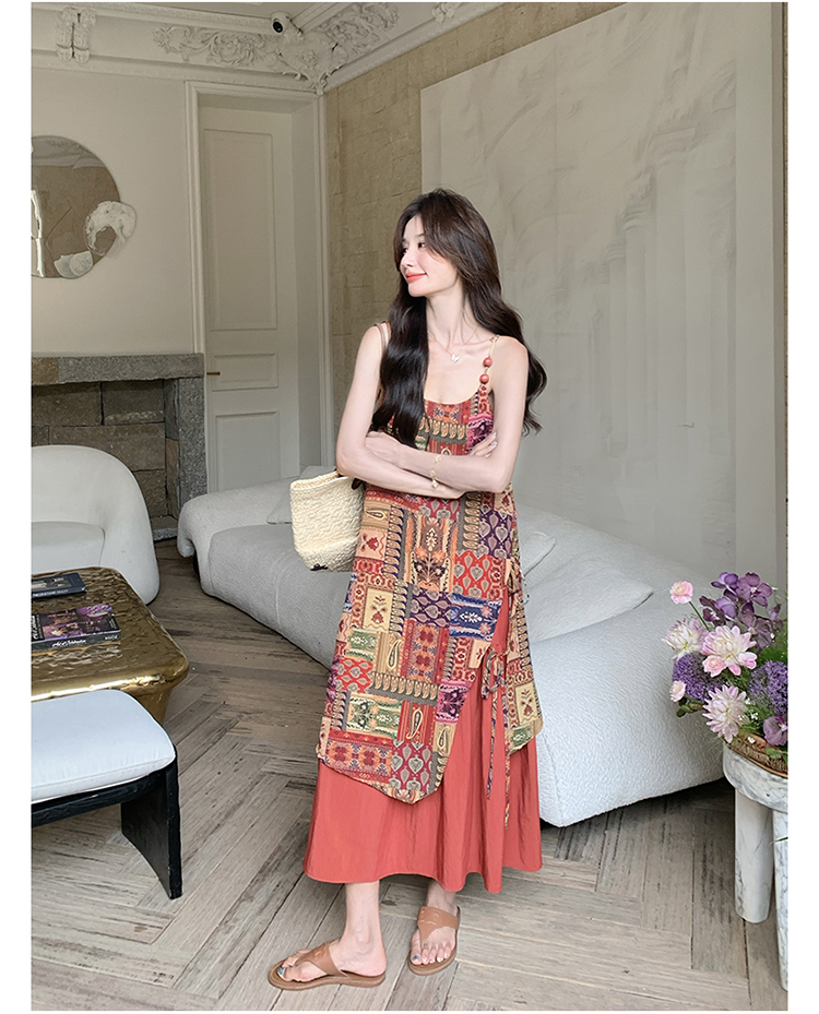 【商品名】【ワンピース】民族風 夏新作 ゆったり&細見え 花柄ノースリーブキャミワンピース【SHシリーズ】