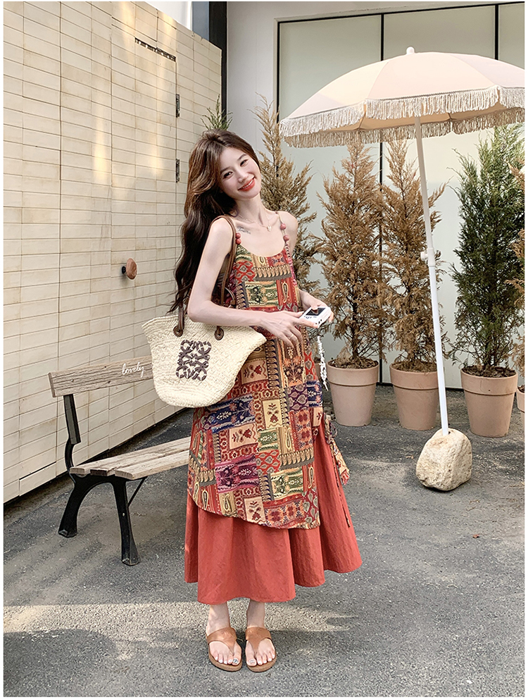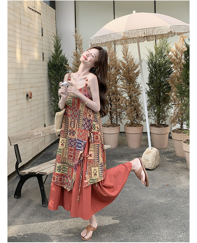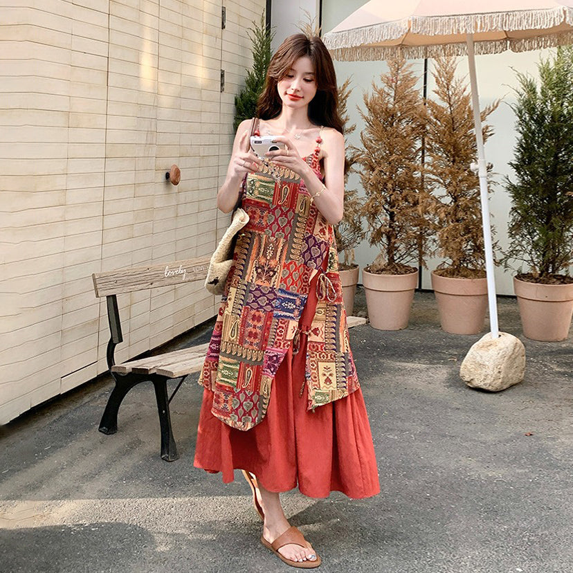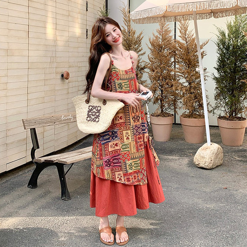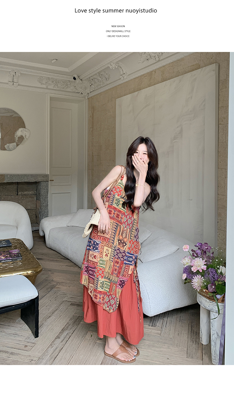 【商品名】【ワンピース】民族風 夏新作 ゆったり&細見え 花柄ノースリーブキャミワンピース【SHシリーズ】
