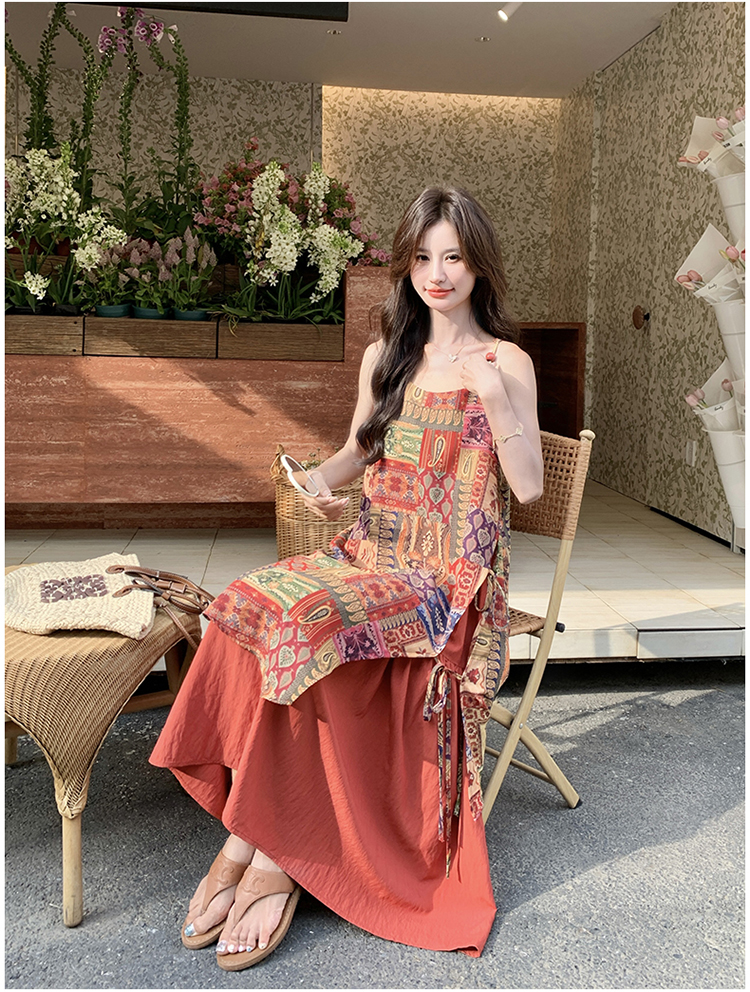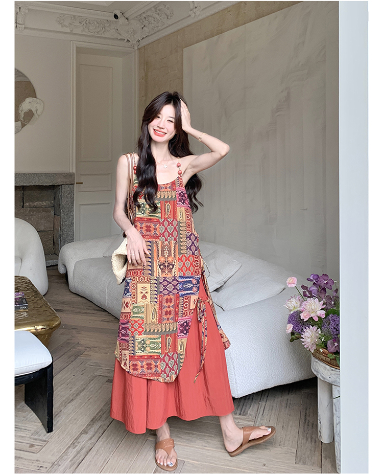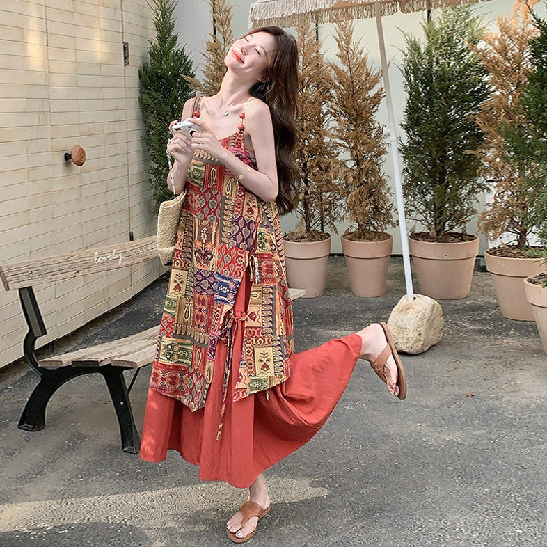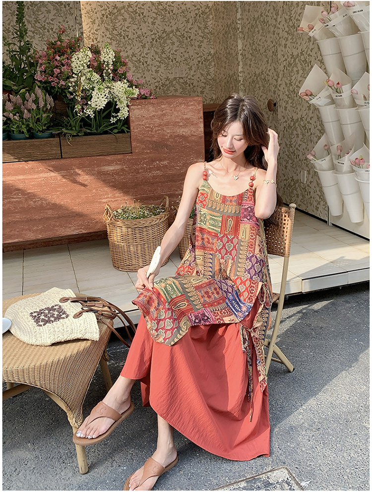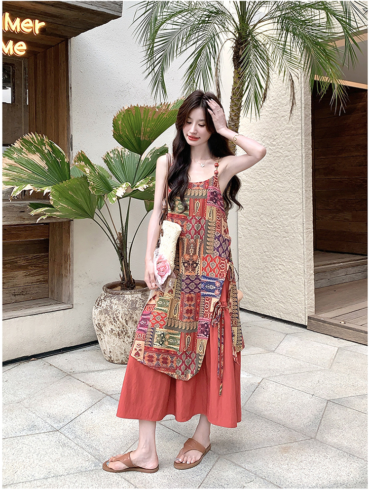 【ワンピース】民族風 夏新作 ゆったり&細見え 花柄ノースリーブキャミワンピース【SHシリーズ】
