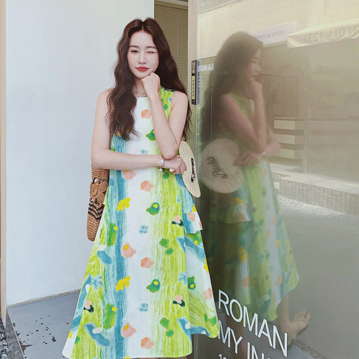 【ワンピース】フレンチ風 夏らしい 優しく甘めな雰囲気 花柄ノースリーブワンピース フェアリー感たっぷり【SHシリーズ】