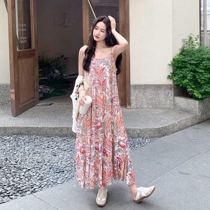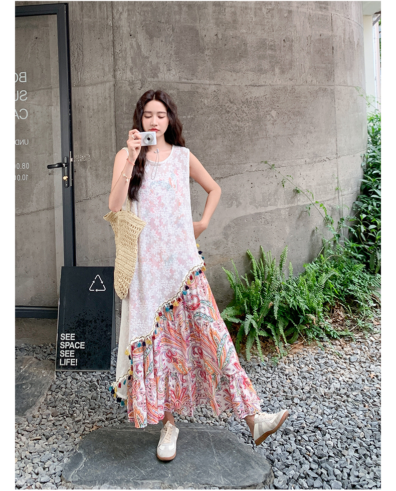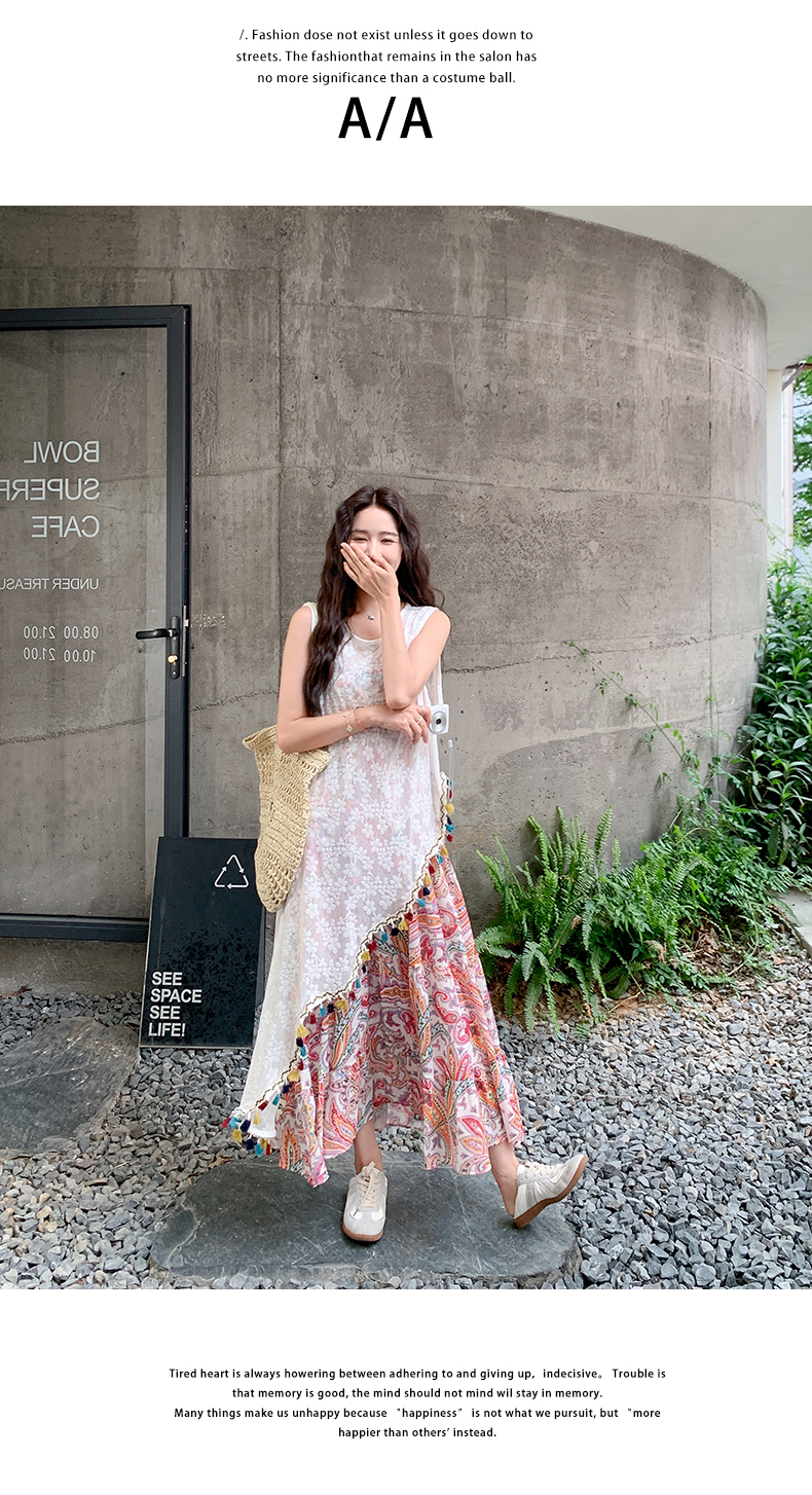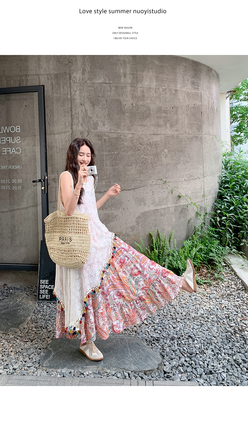 2点セット!【セットアップ】ボヘミアンレース刺繍シアーカーデ+花柄ノースリーブワンピース レイヤード風上下セット【SHシリーズ】