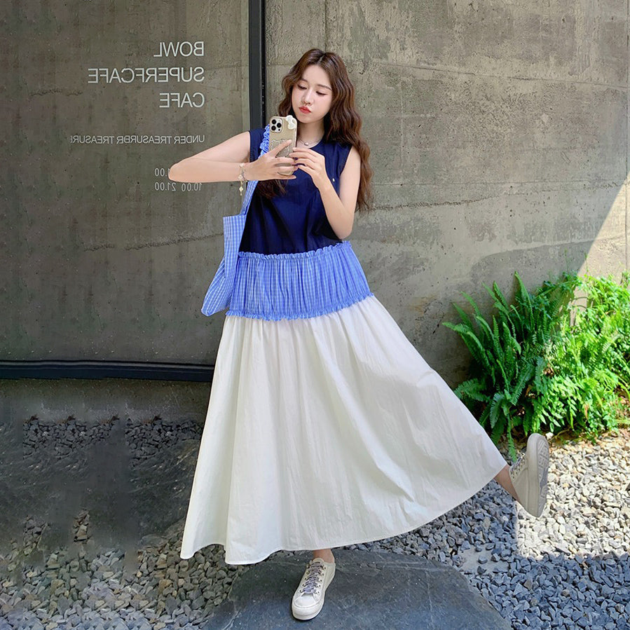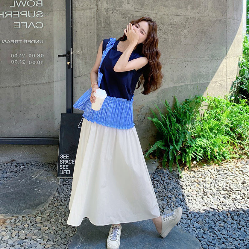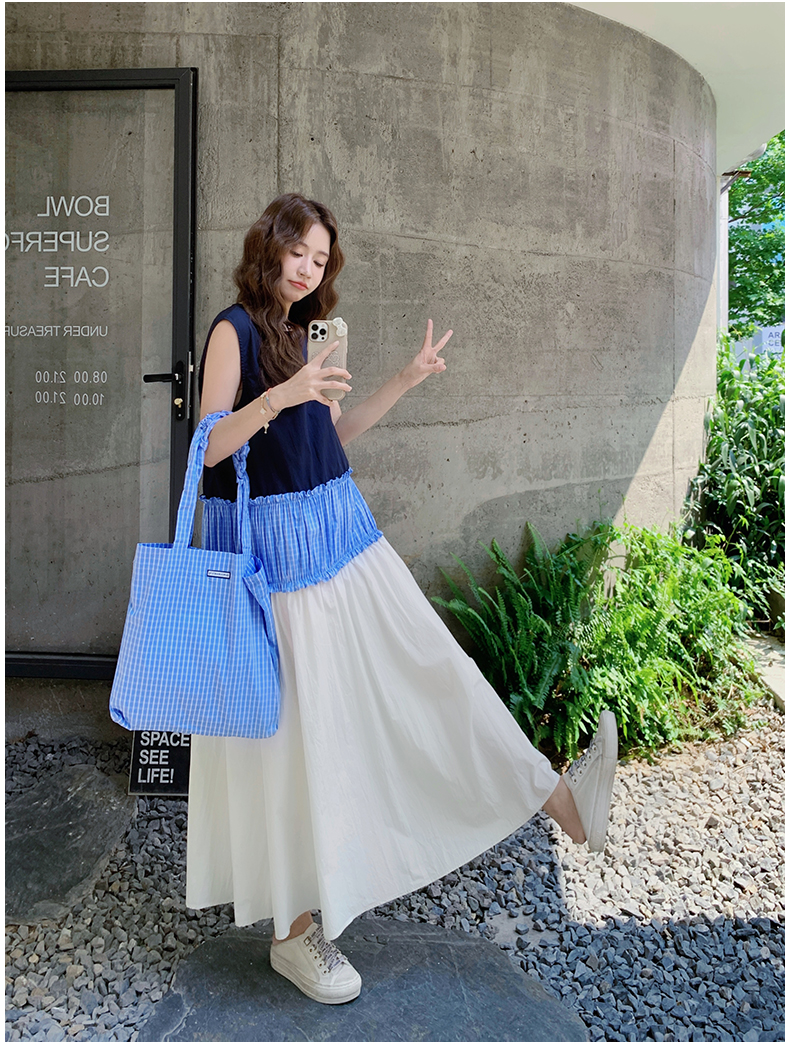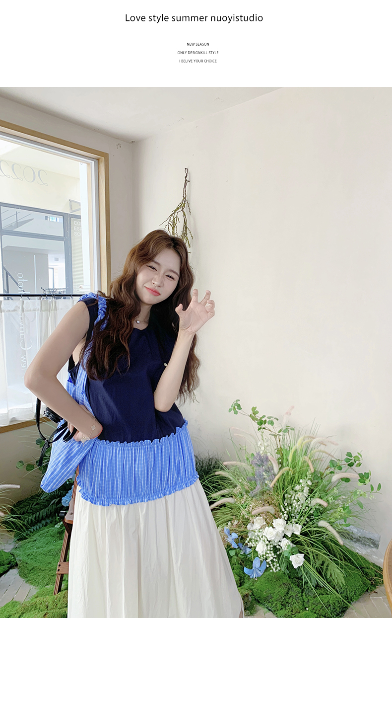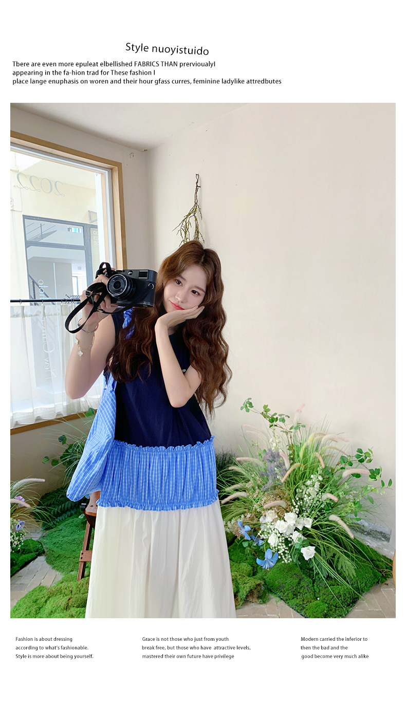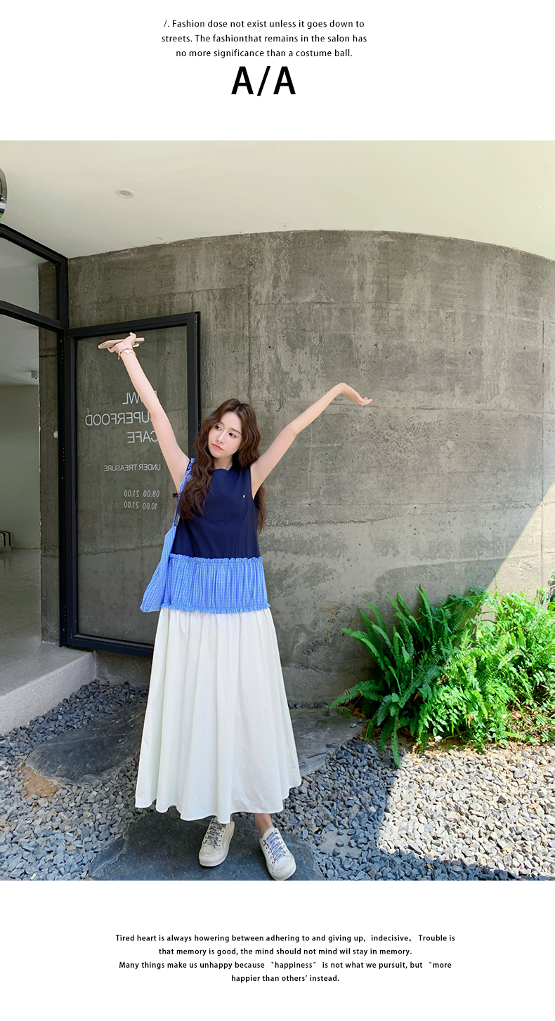 【商品名】【ワンピース】夏 フレンチ風 お洒落な配色切り替え ノースリーブワンピース 文芸スタイル【SHシリーズ】