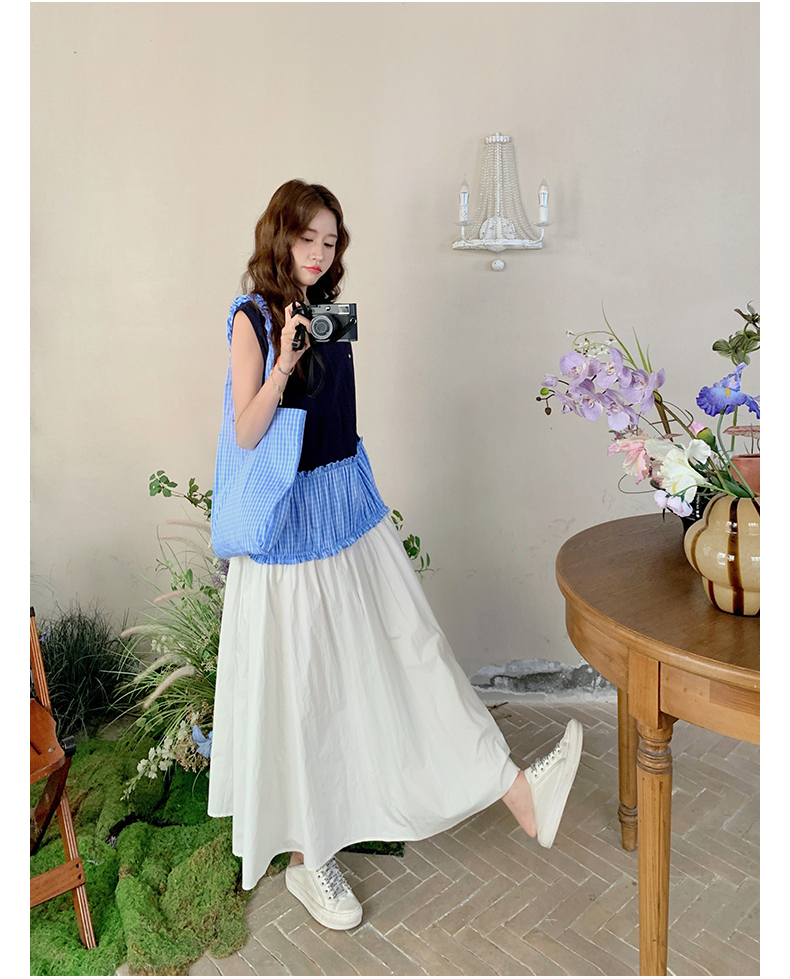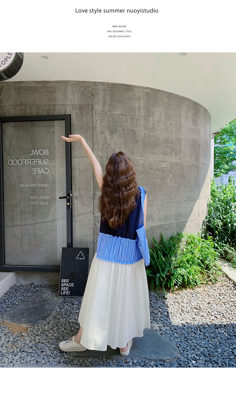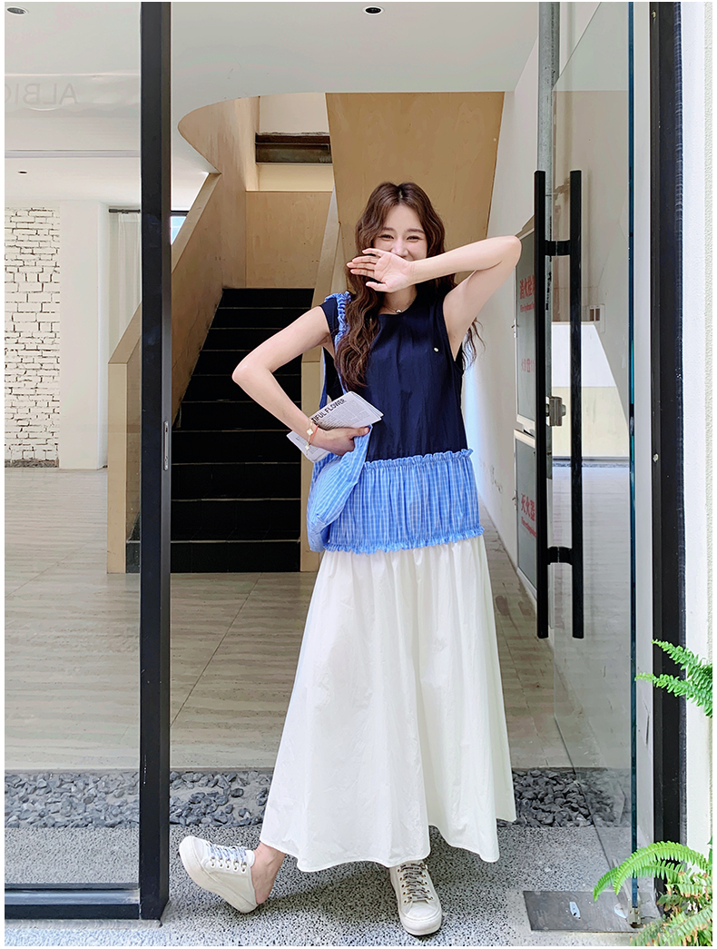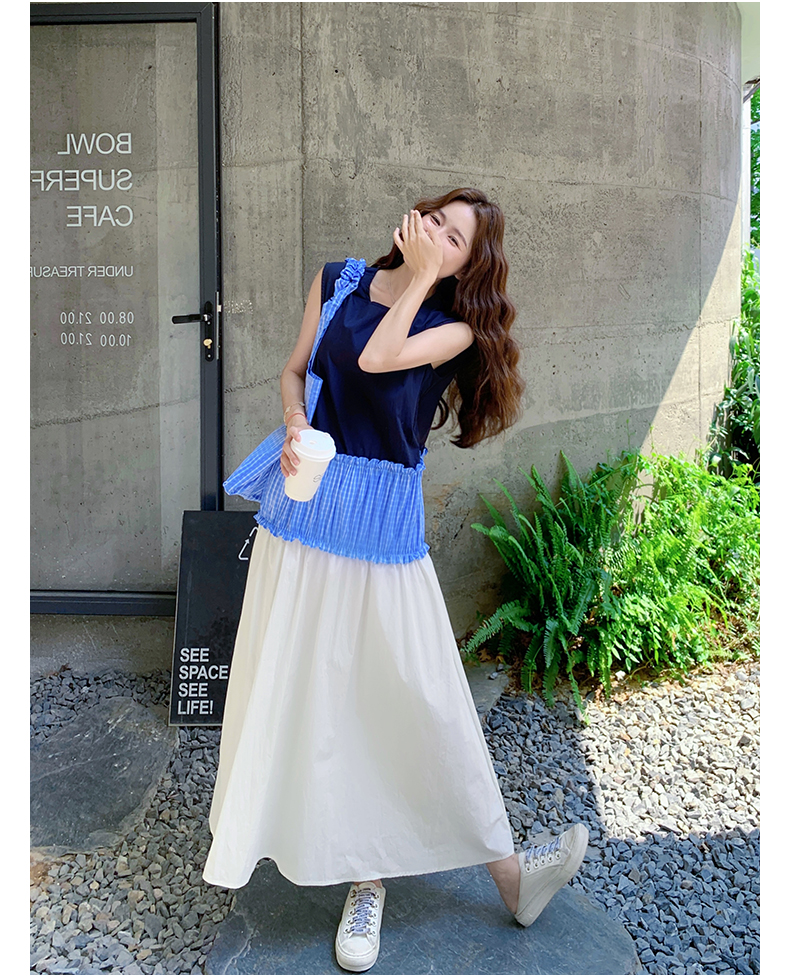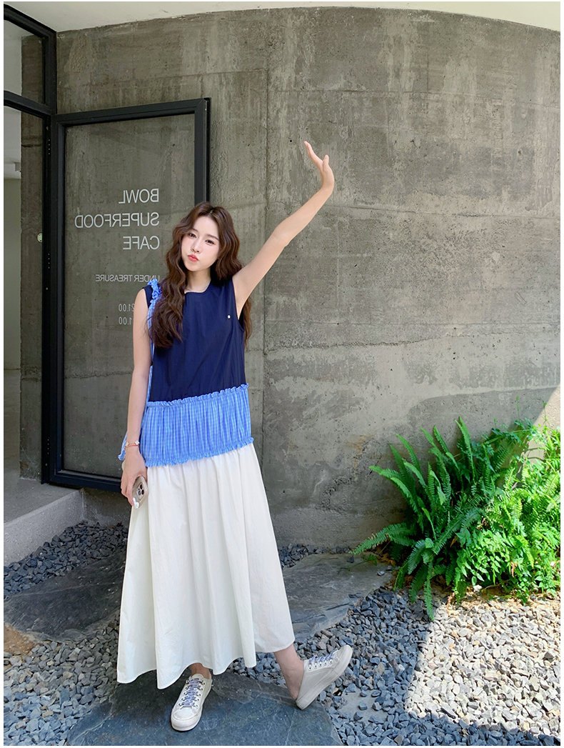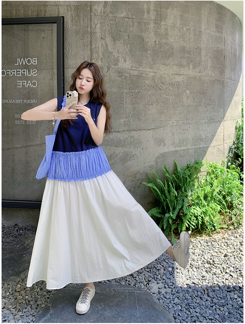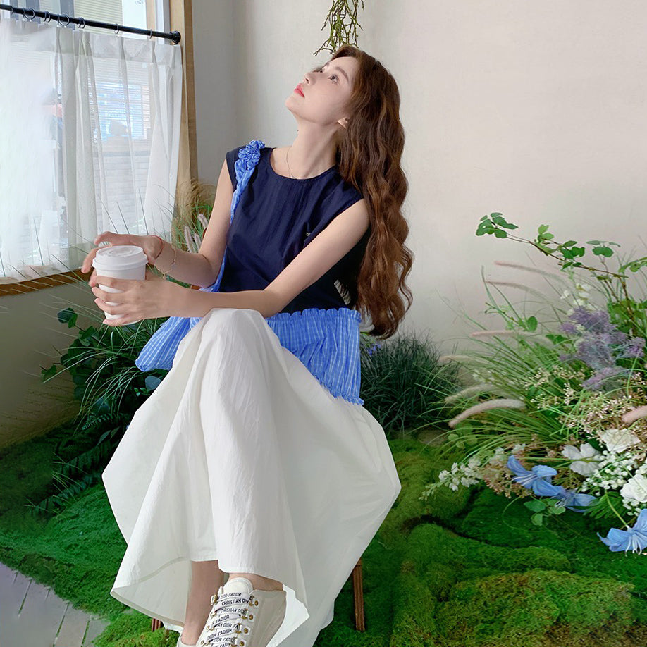 【商品名】【ワンピース】夏 フレンチ風 お洒落な配色切り替え ノースリーブワンピース 文芸スタイル【SHシリーズ】