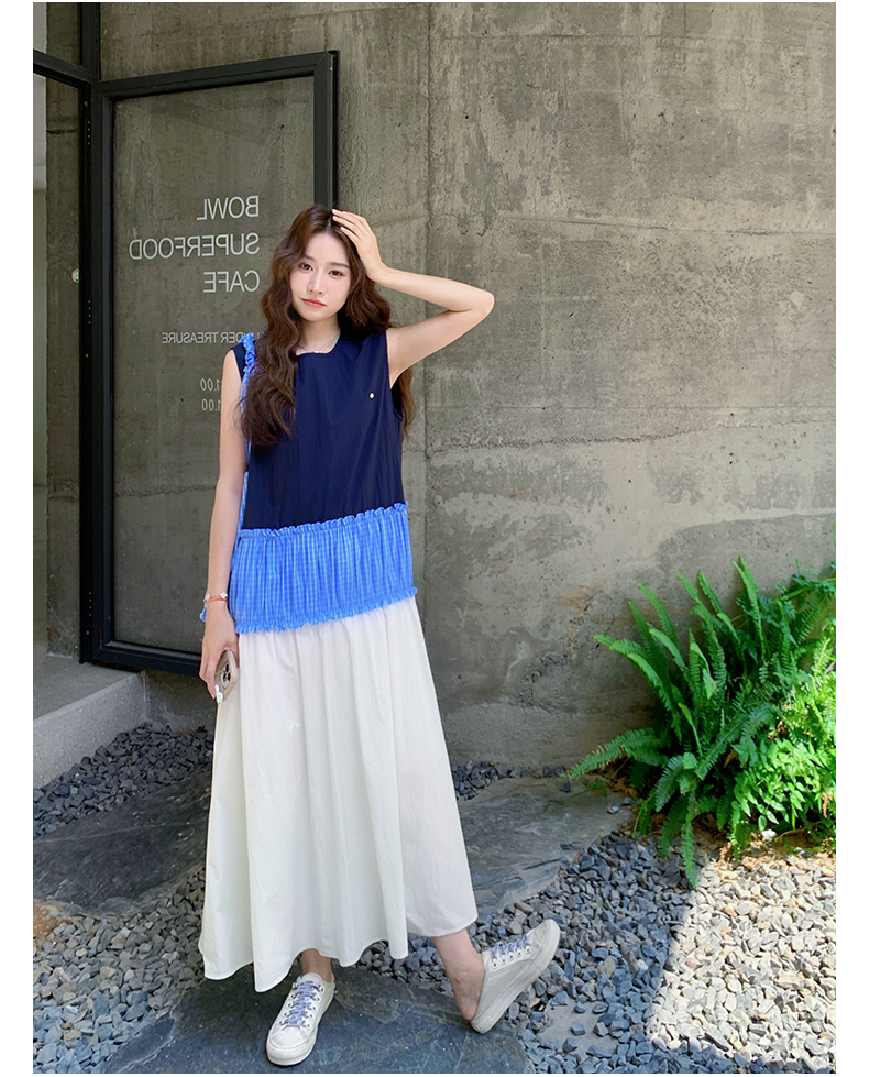 【ワンピース】夏 フレンチ風 お洒落な配色切り替え ノースリーブワンピース 文芸スタイル【SHシリーズ】