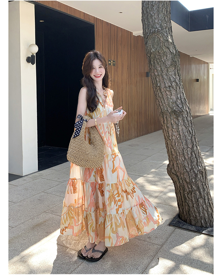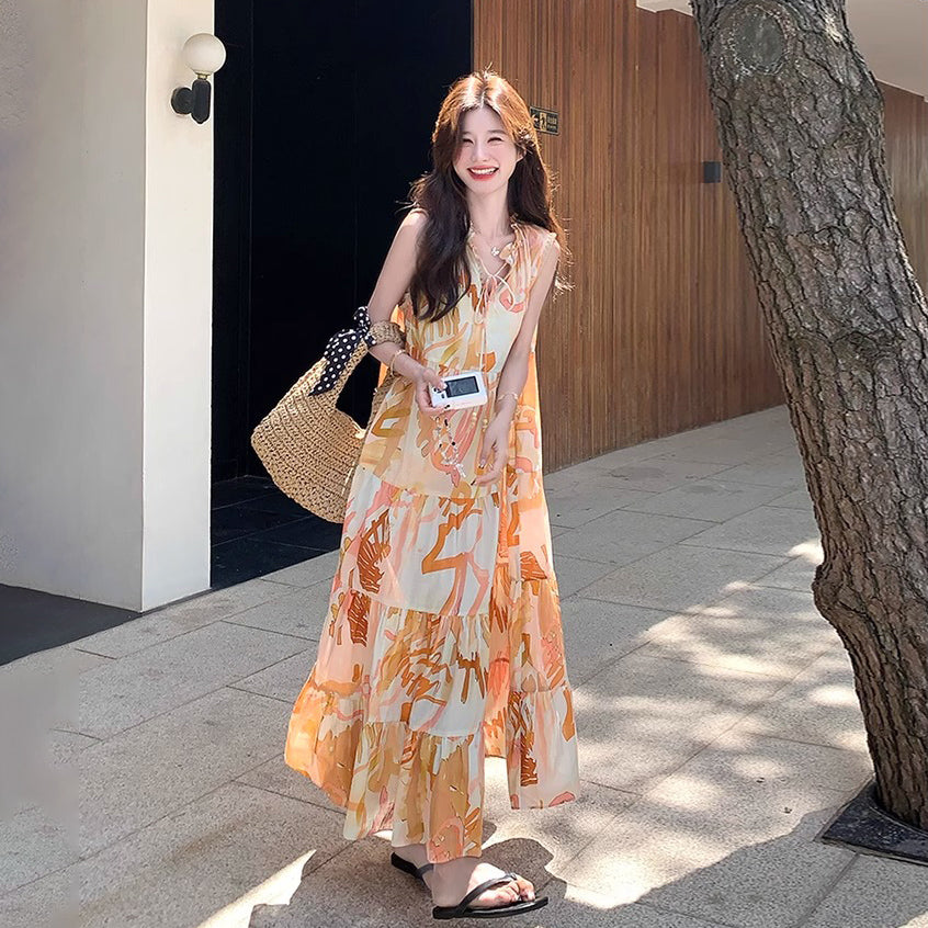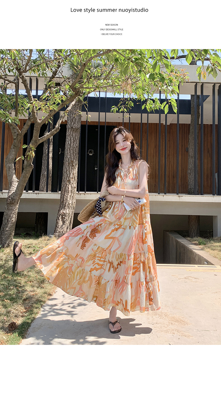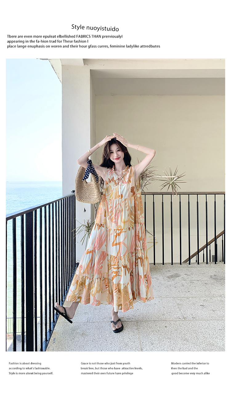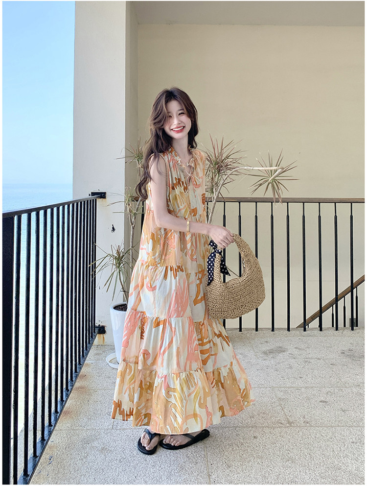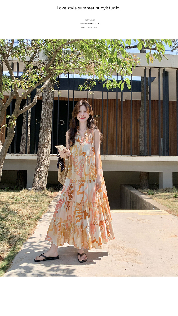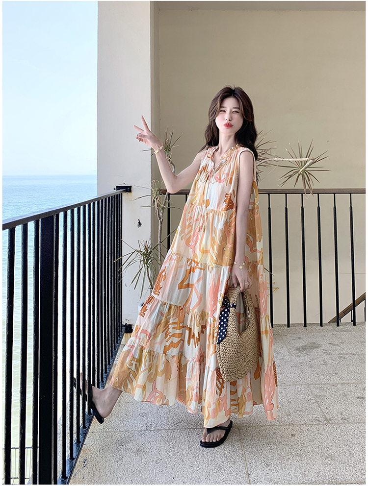 【ワンピース】高級感あふれるロマンティックリゾート風 シフォン花柄ノースリーブワンピース【SHシリーズ】