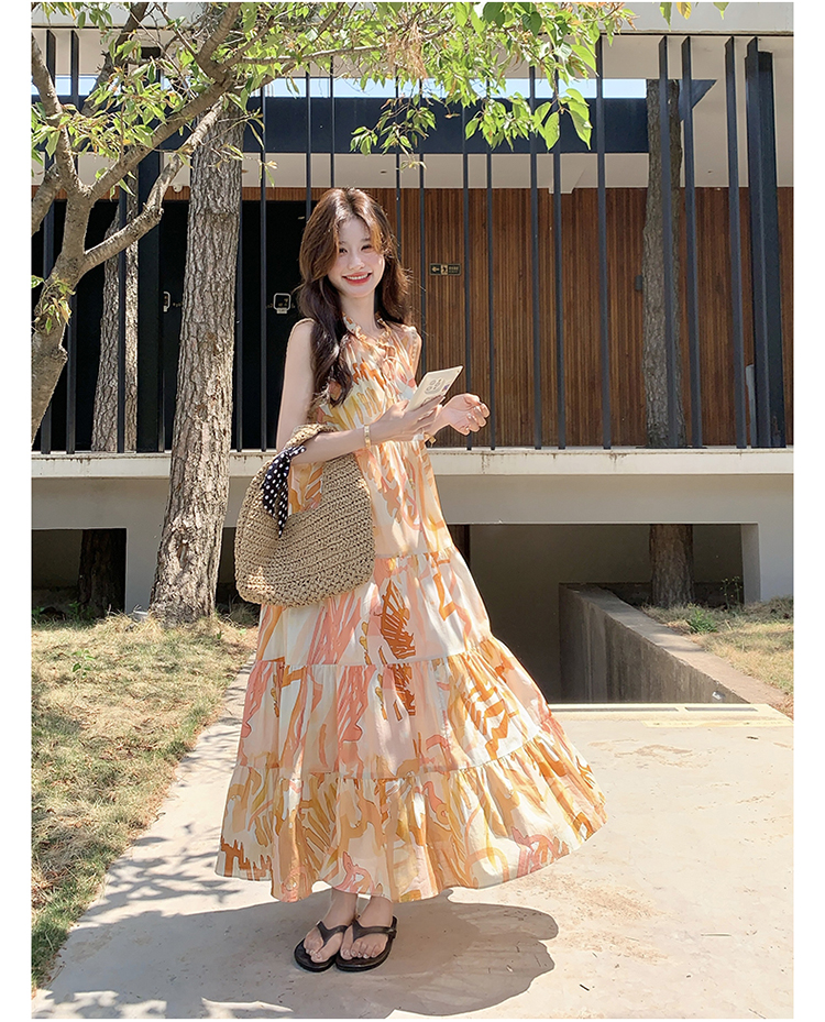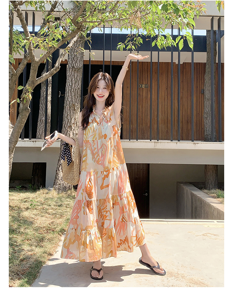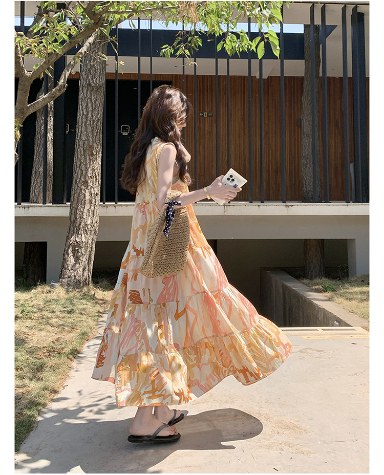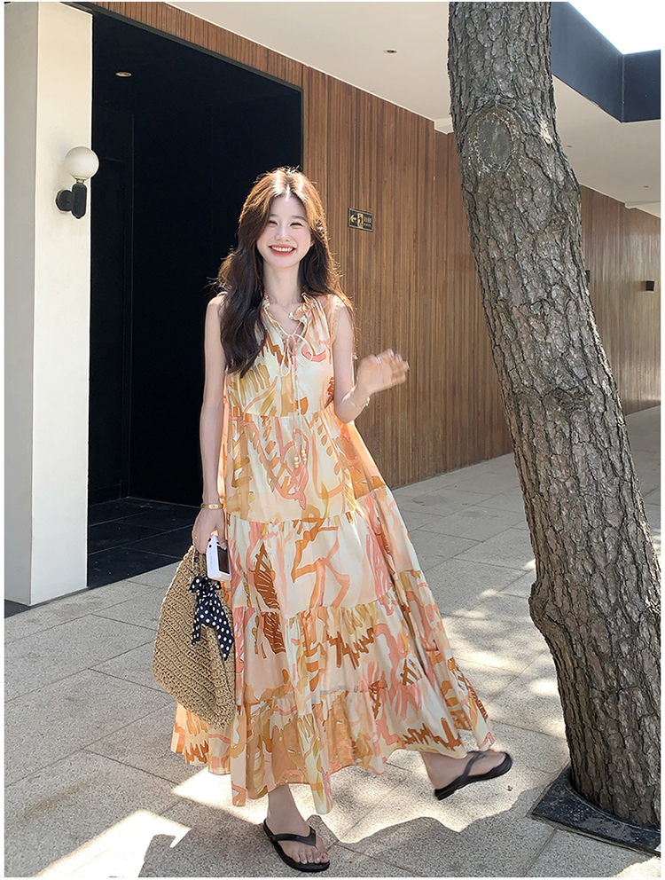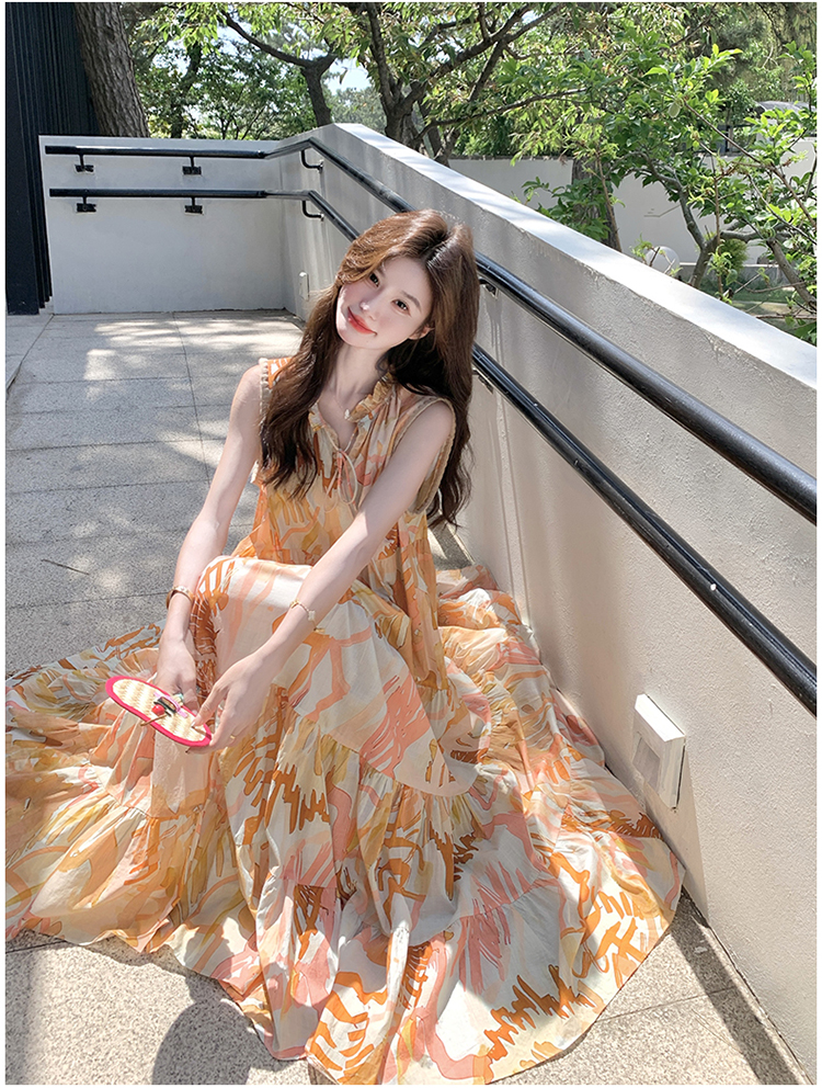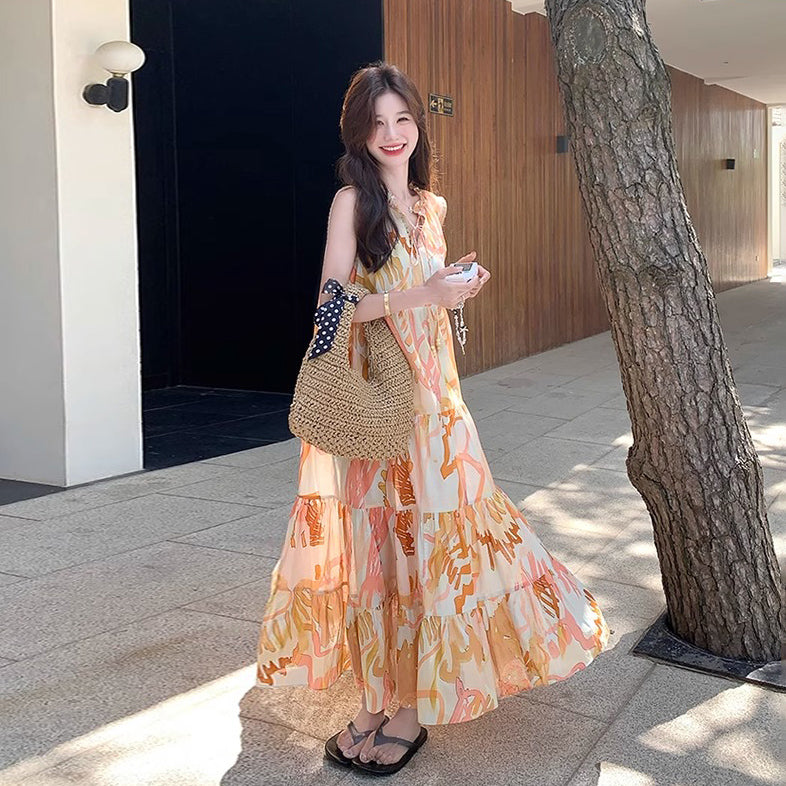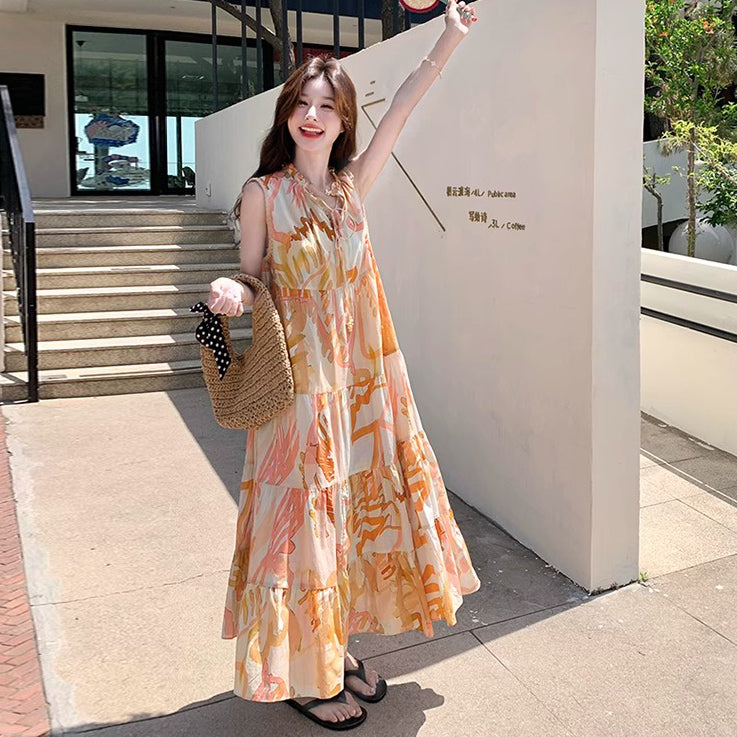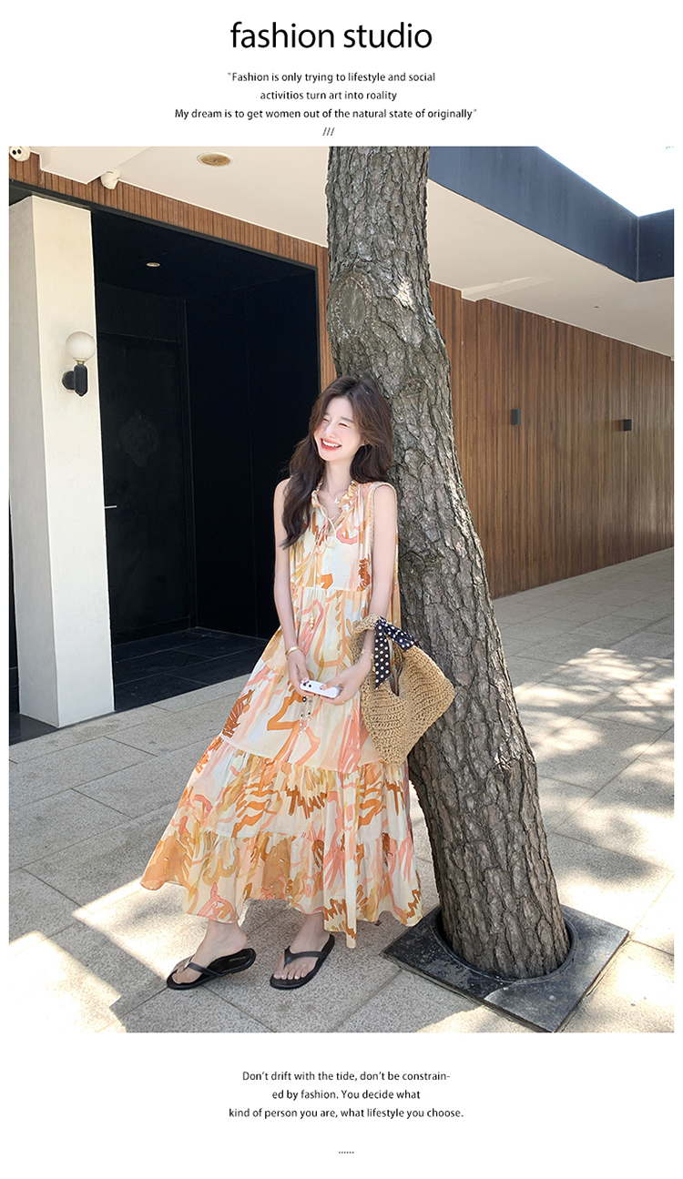 【ワンピース】高級感あふれるロマンティックリゾート風 シフォン花柄ノースリーブワンピース【SHシリーズ】