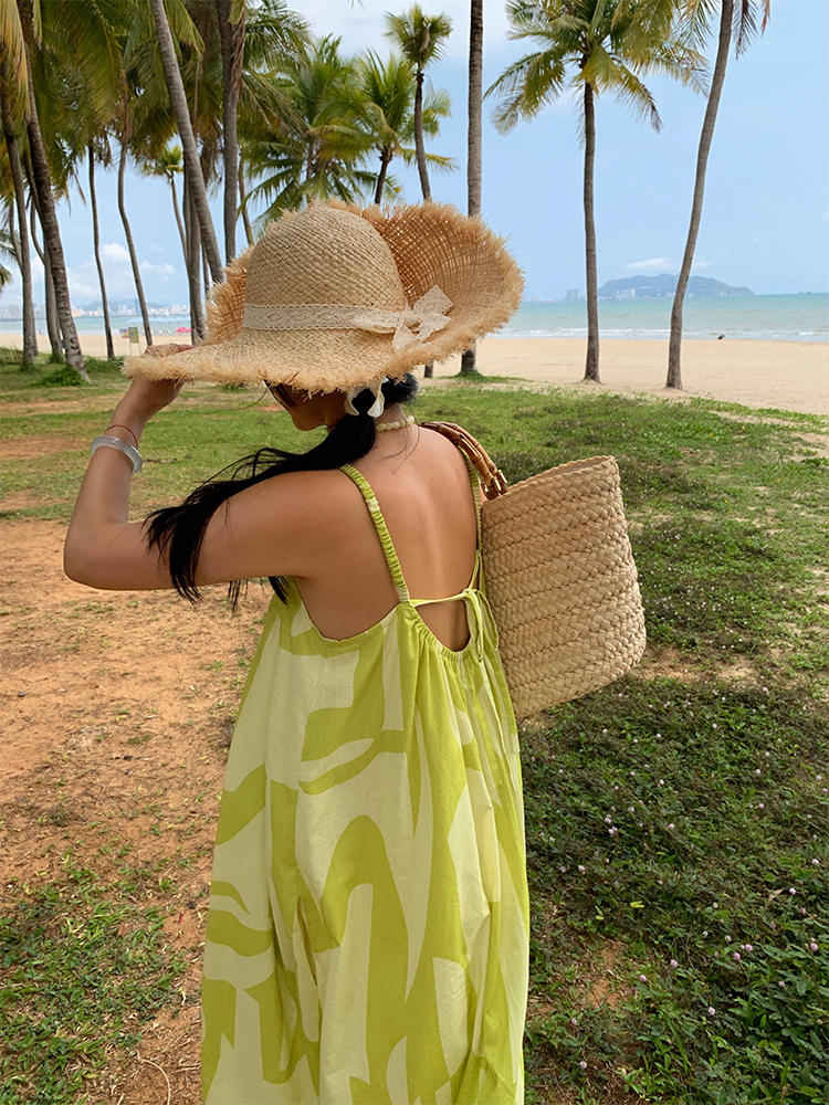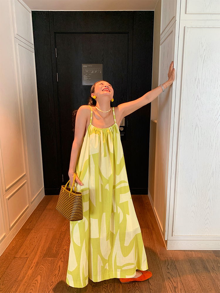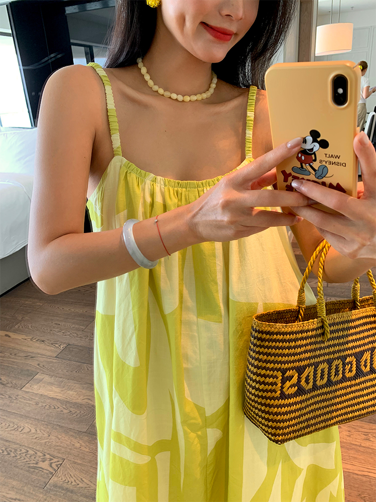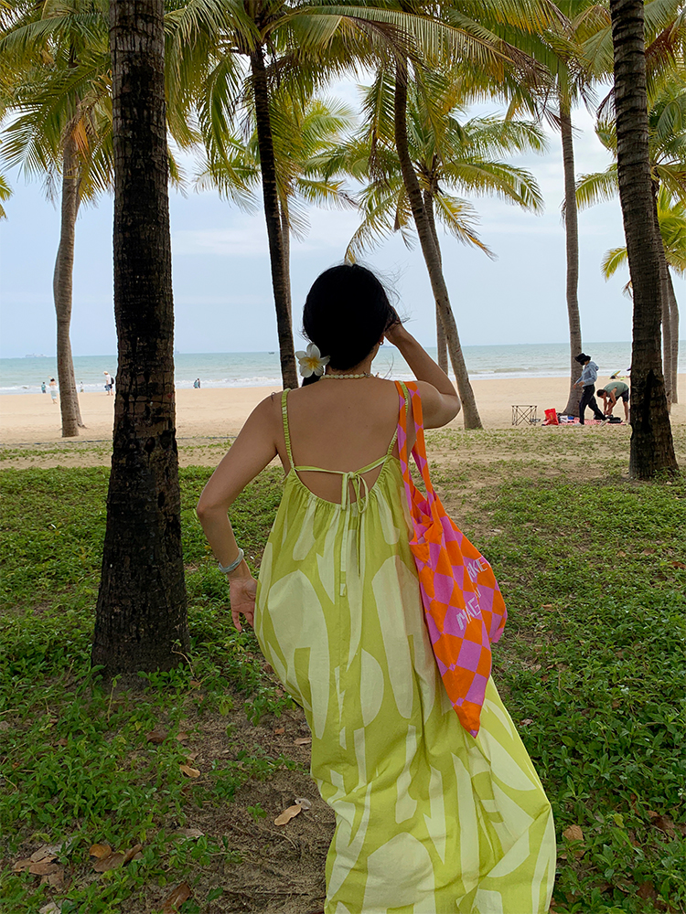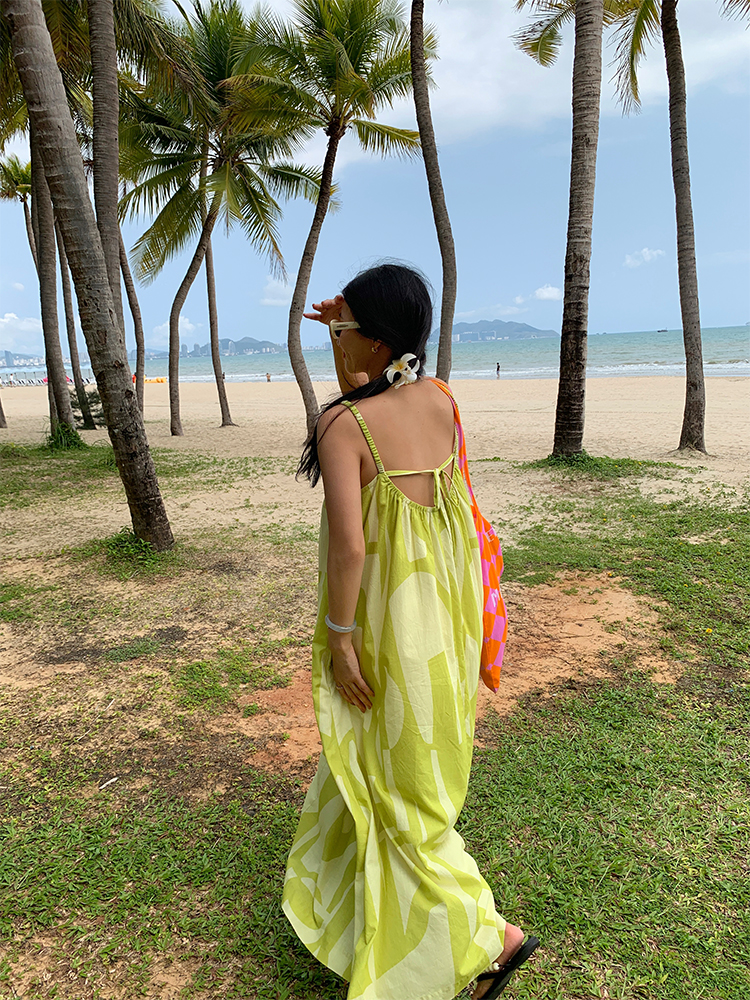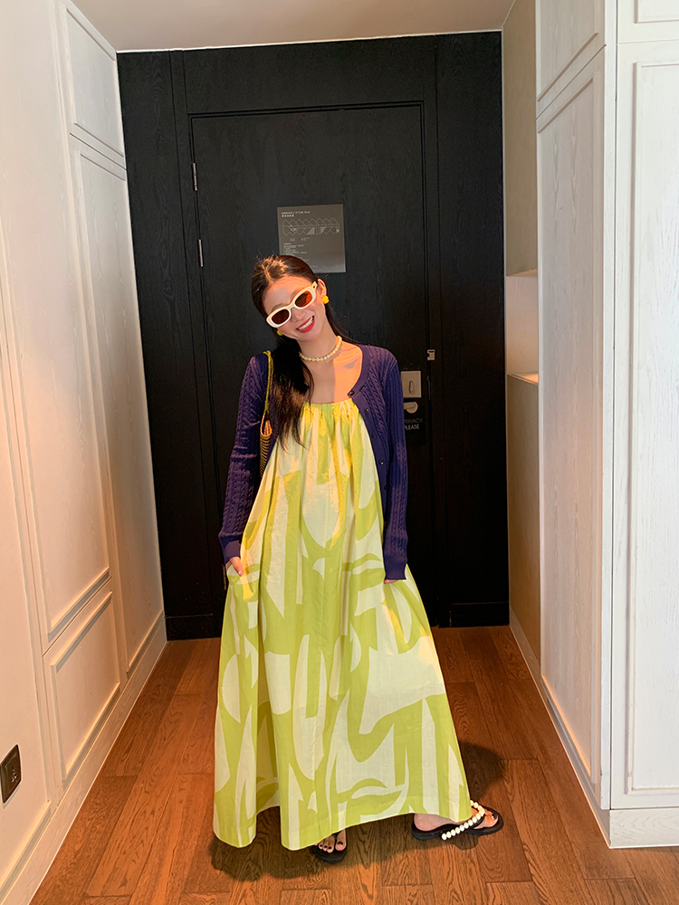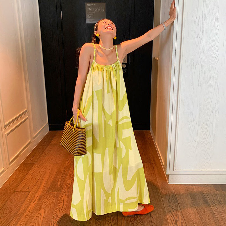 【ワンピース】夏 コットン100% ゆったりシルエット 花柄 ノースリーブキャミワンピース【SHシリーズ】