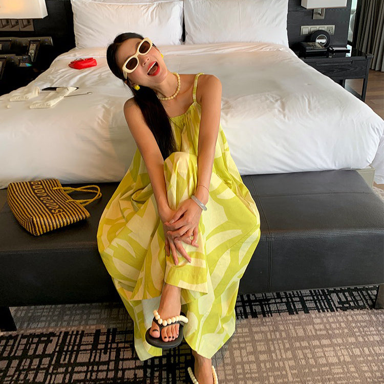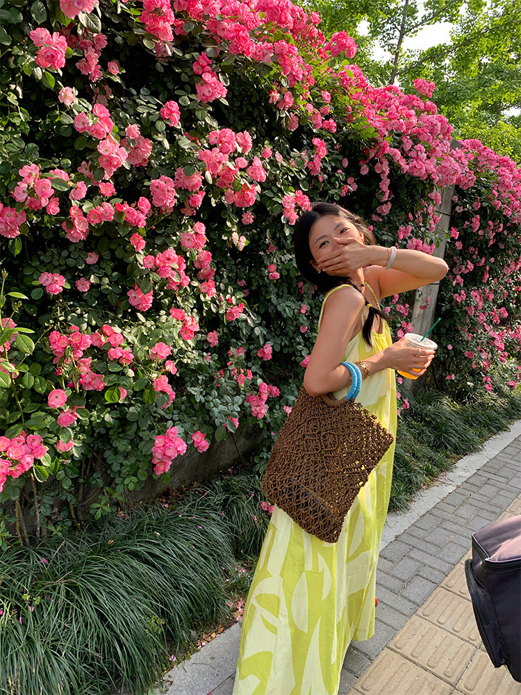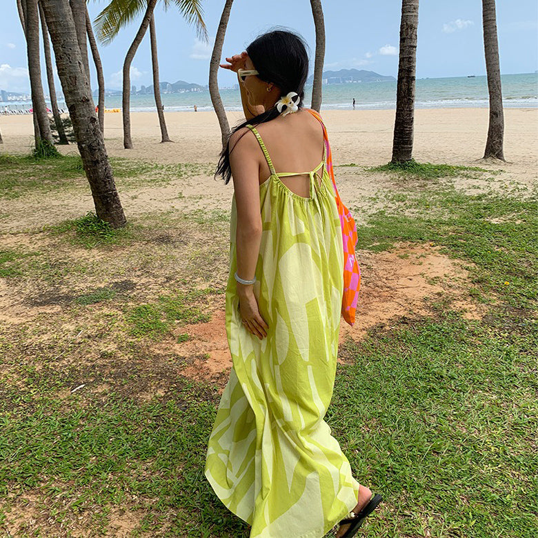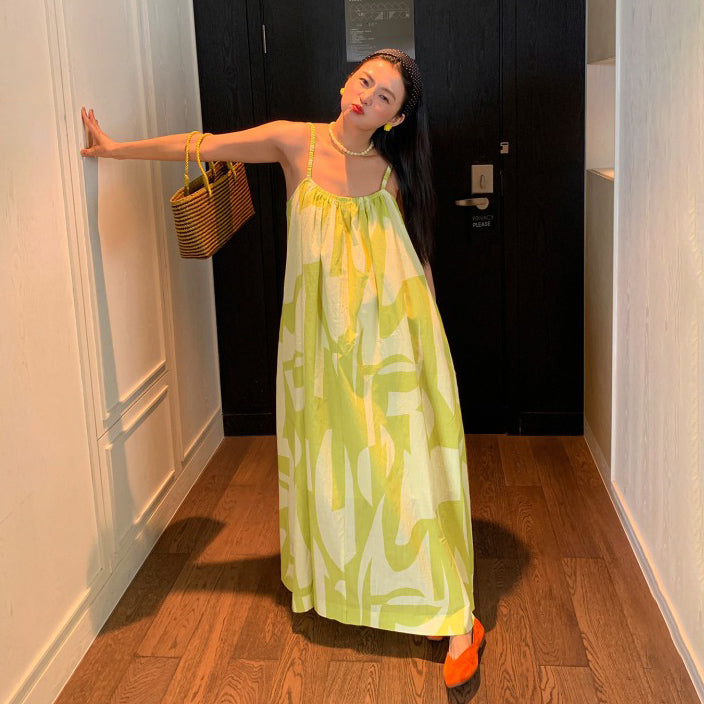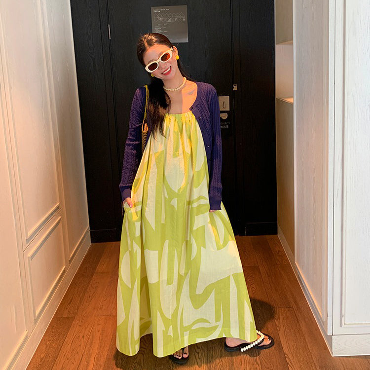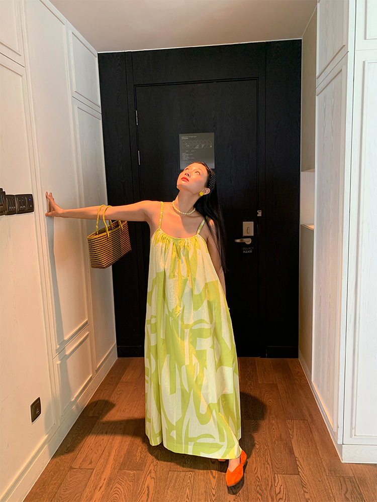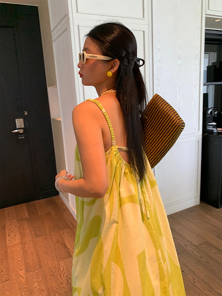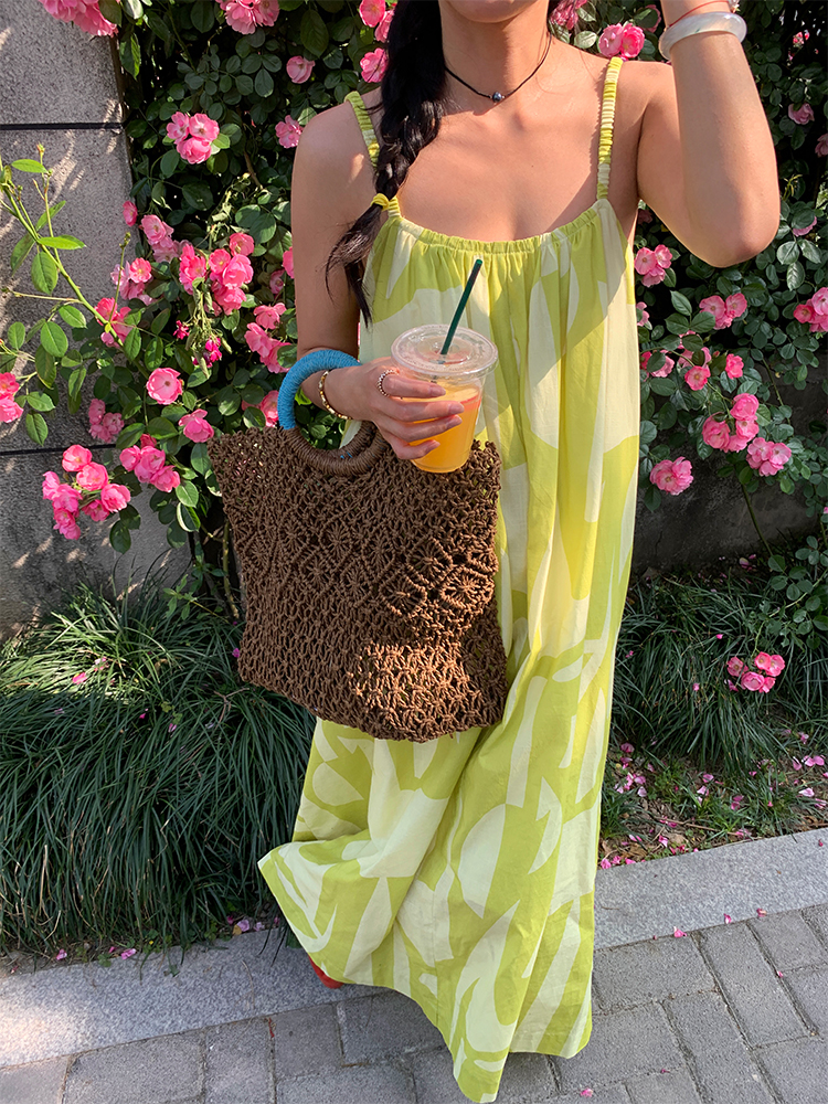 【ワンピース】夏 コットン100% ゆったりシルエット 花柄 ノースリーブキャミワンピース【SHシリーズ】