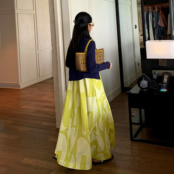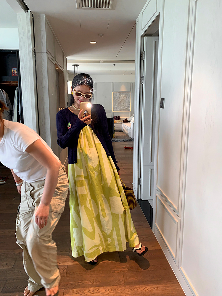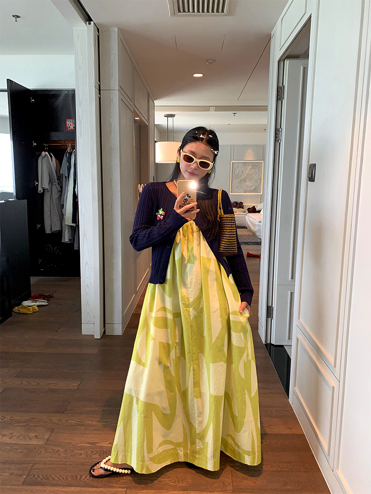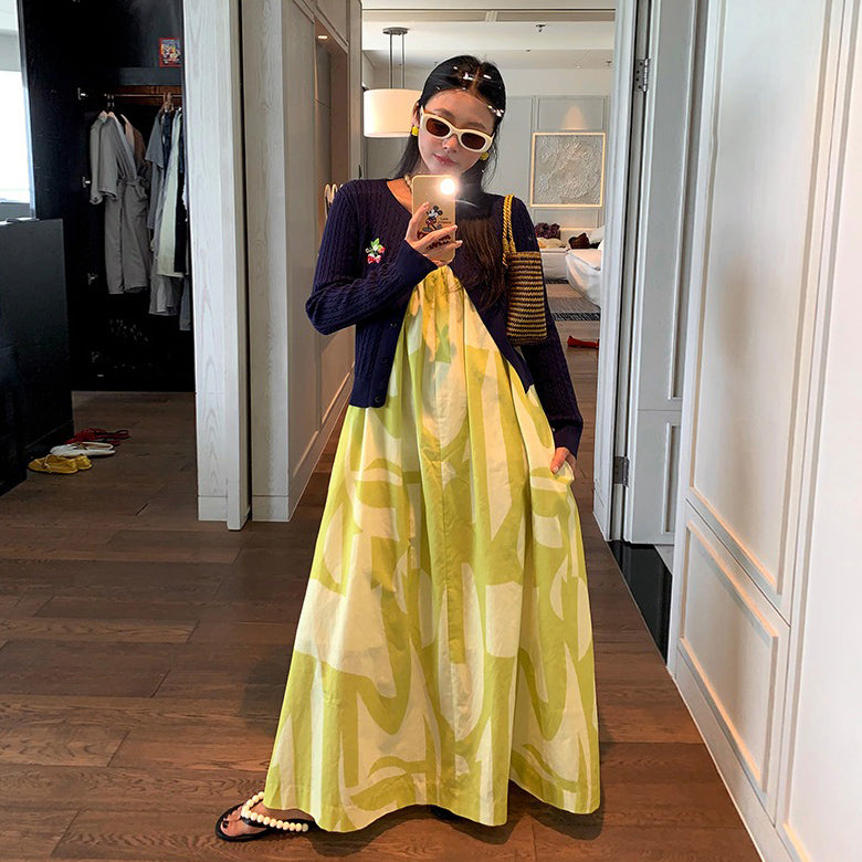 【ワンピース】韓国風 春秋新作 ゆったり大きめサイズ 体型カバー 花柄長袖ミディアムワンピース【SHシリーズ】
