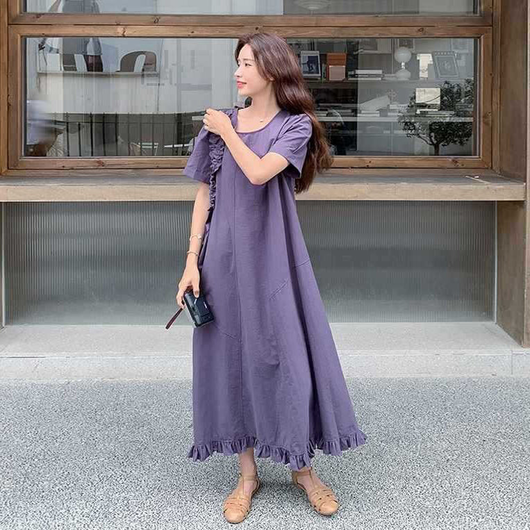 バッグ付き!【ワンピース】 夏新作 レトロ 韓国風 ゆったり 半袖ワンピース