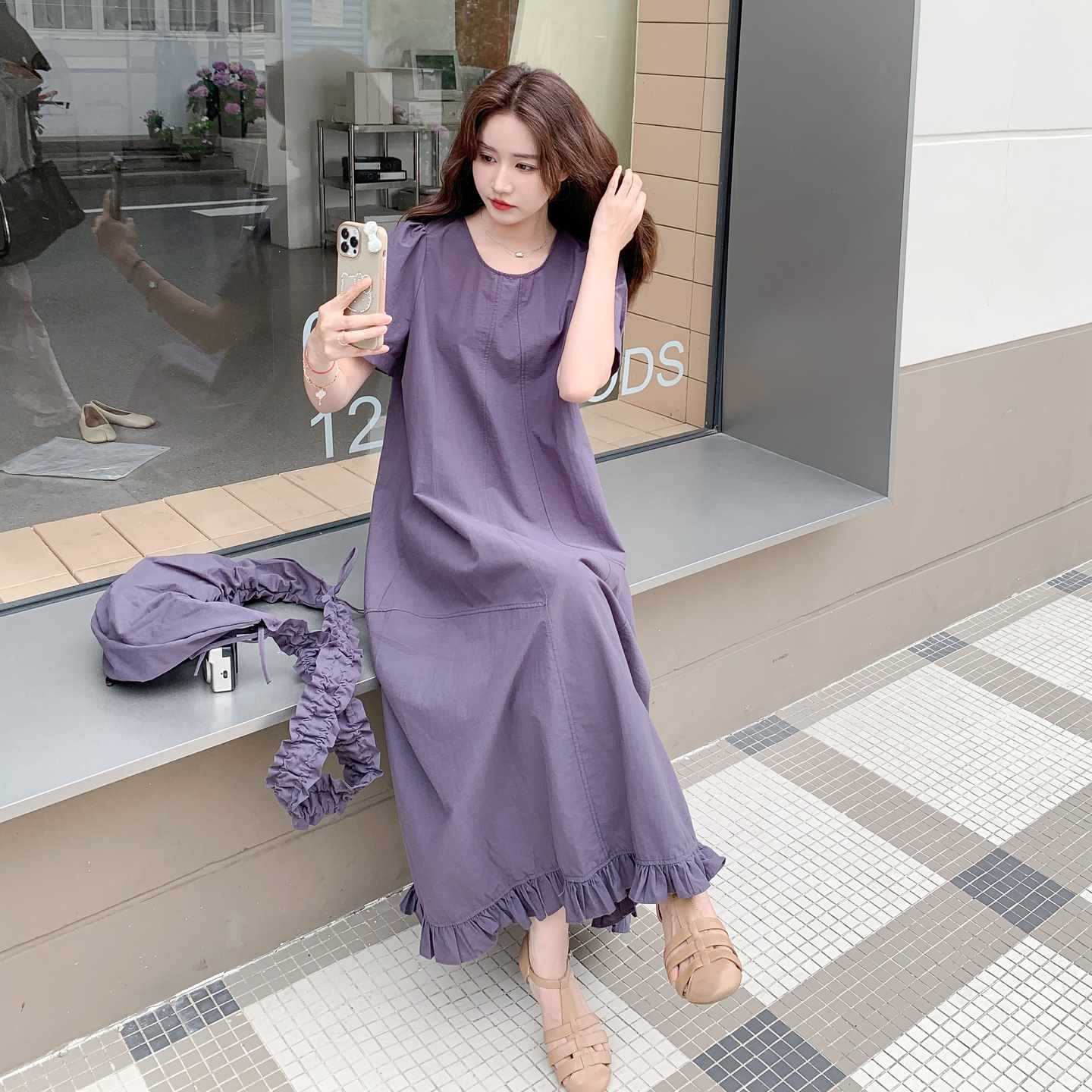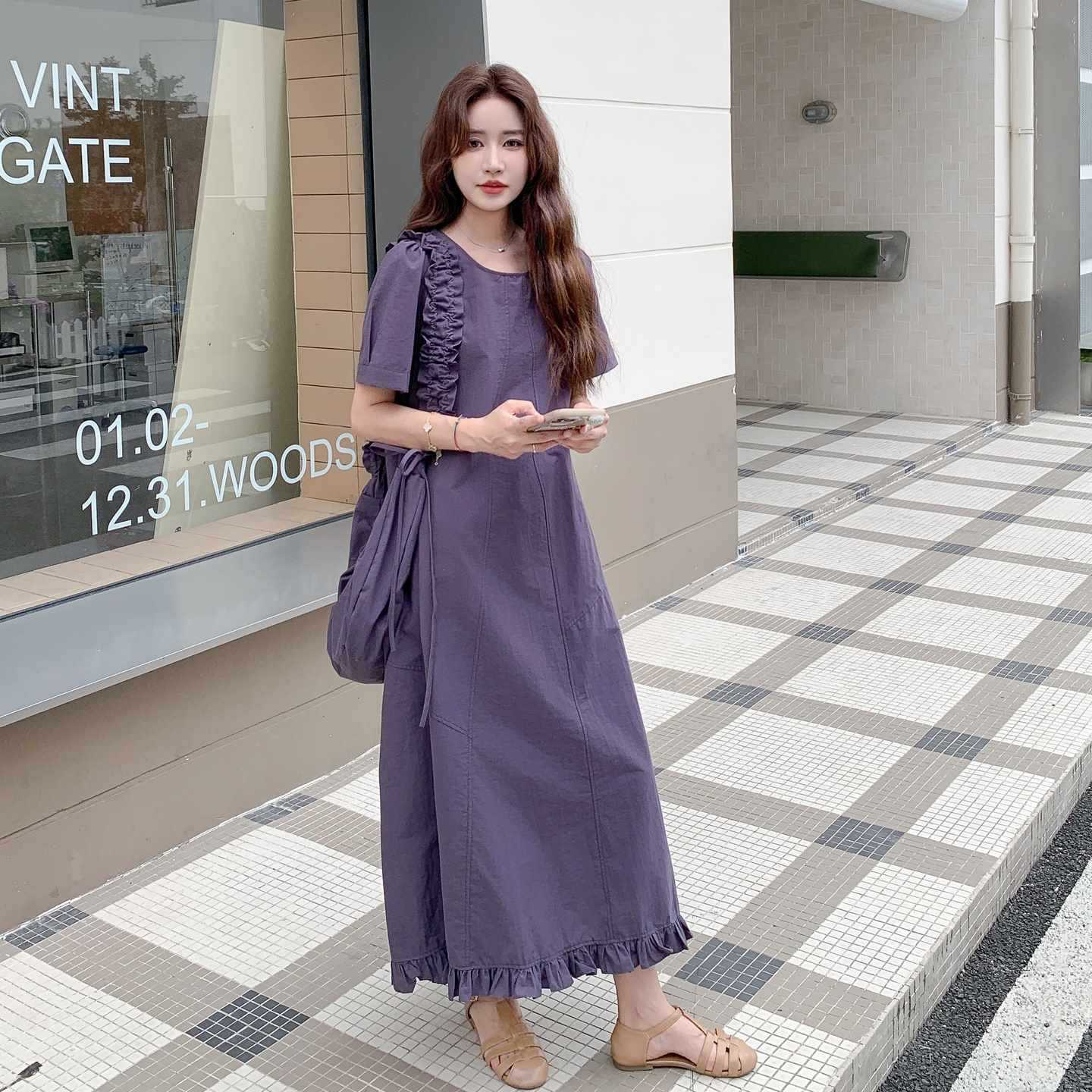 【商品名】バッグ付き!【ワンピース】 夏新作 レトロ 韓国風 ゆったり 半袖ワンピース