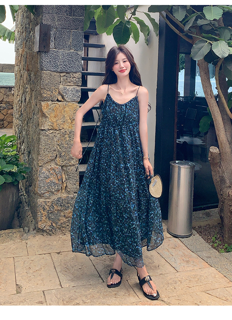 【ワンピース】清涼感あふれる絶美な夏新作 ファッショナブルなリゾート風 花柄ノースリーブワンピース【SHシリーズ】