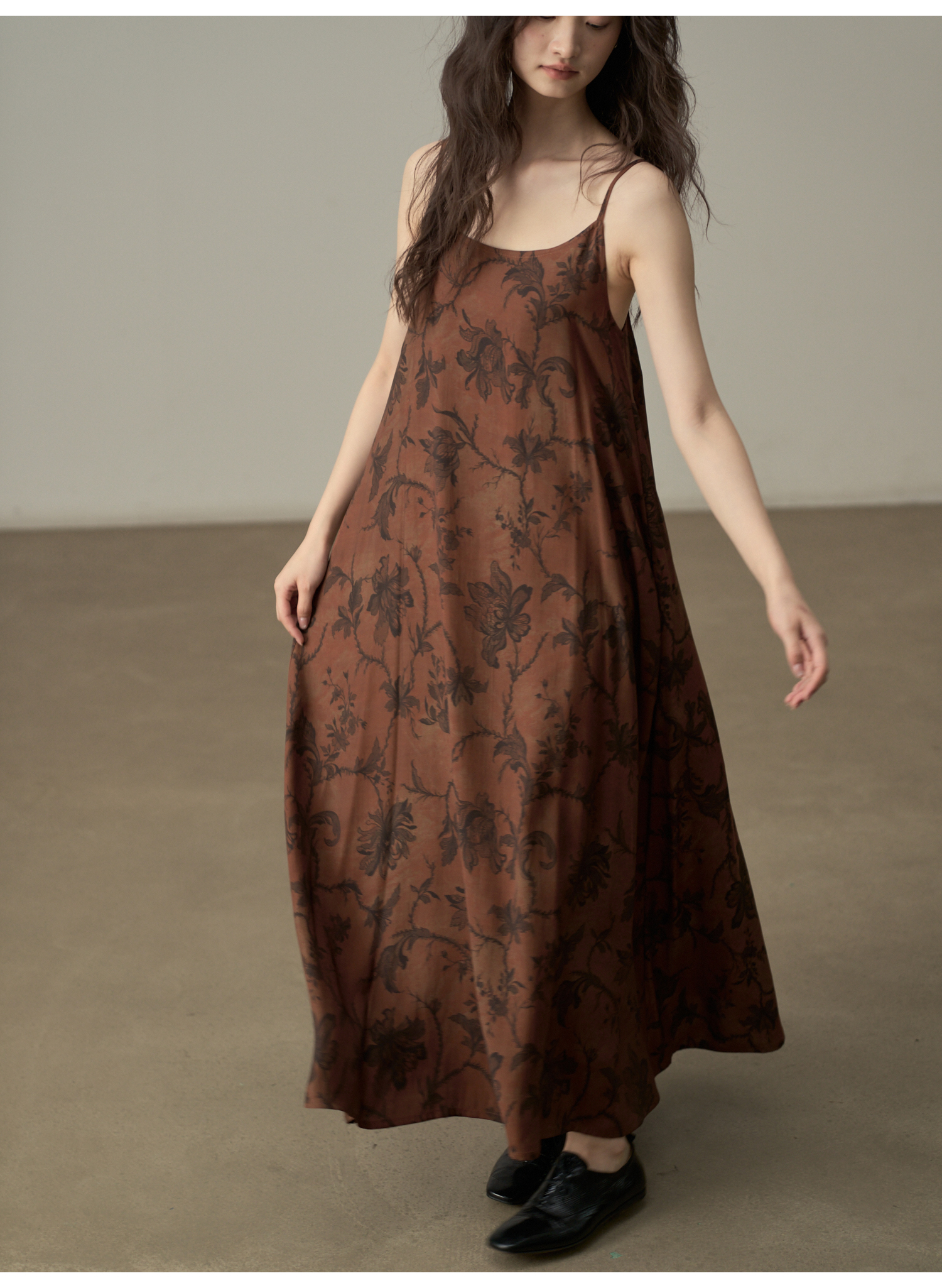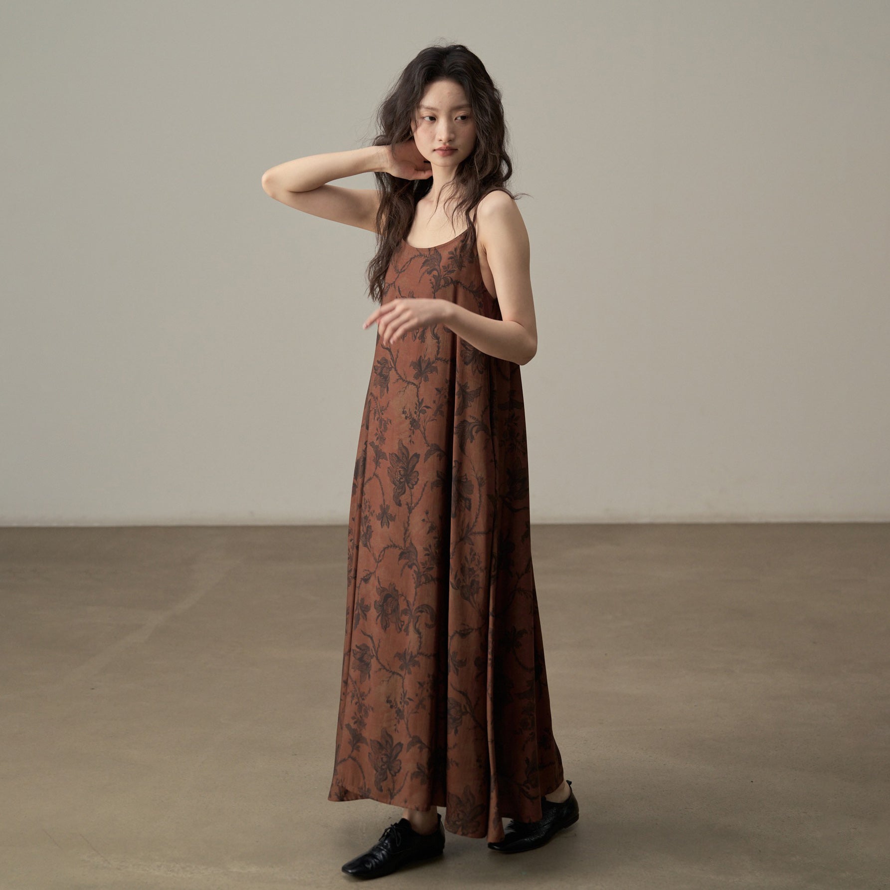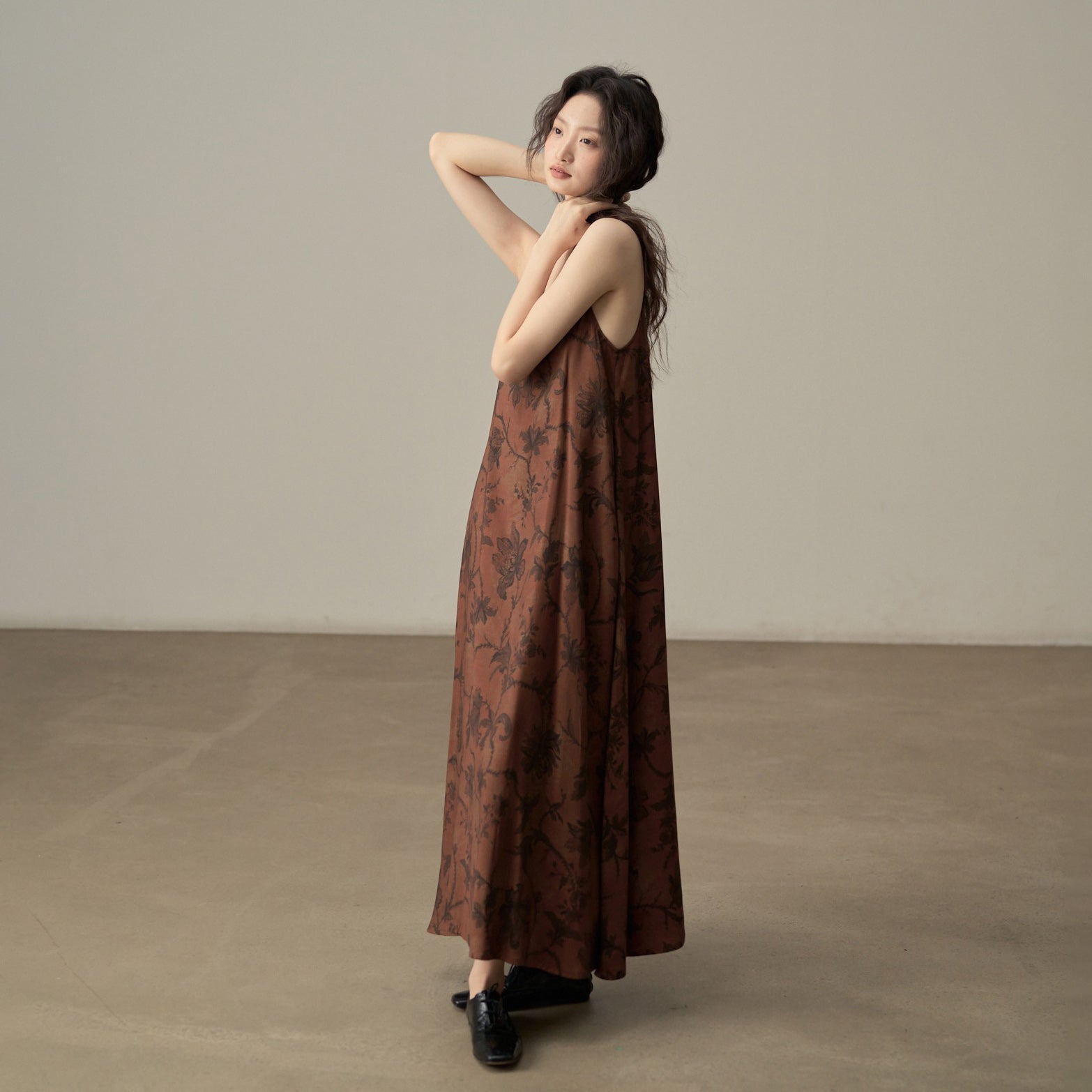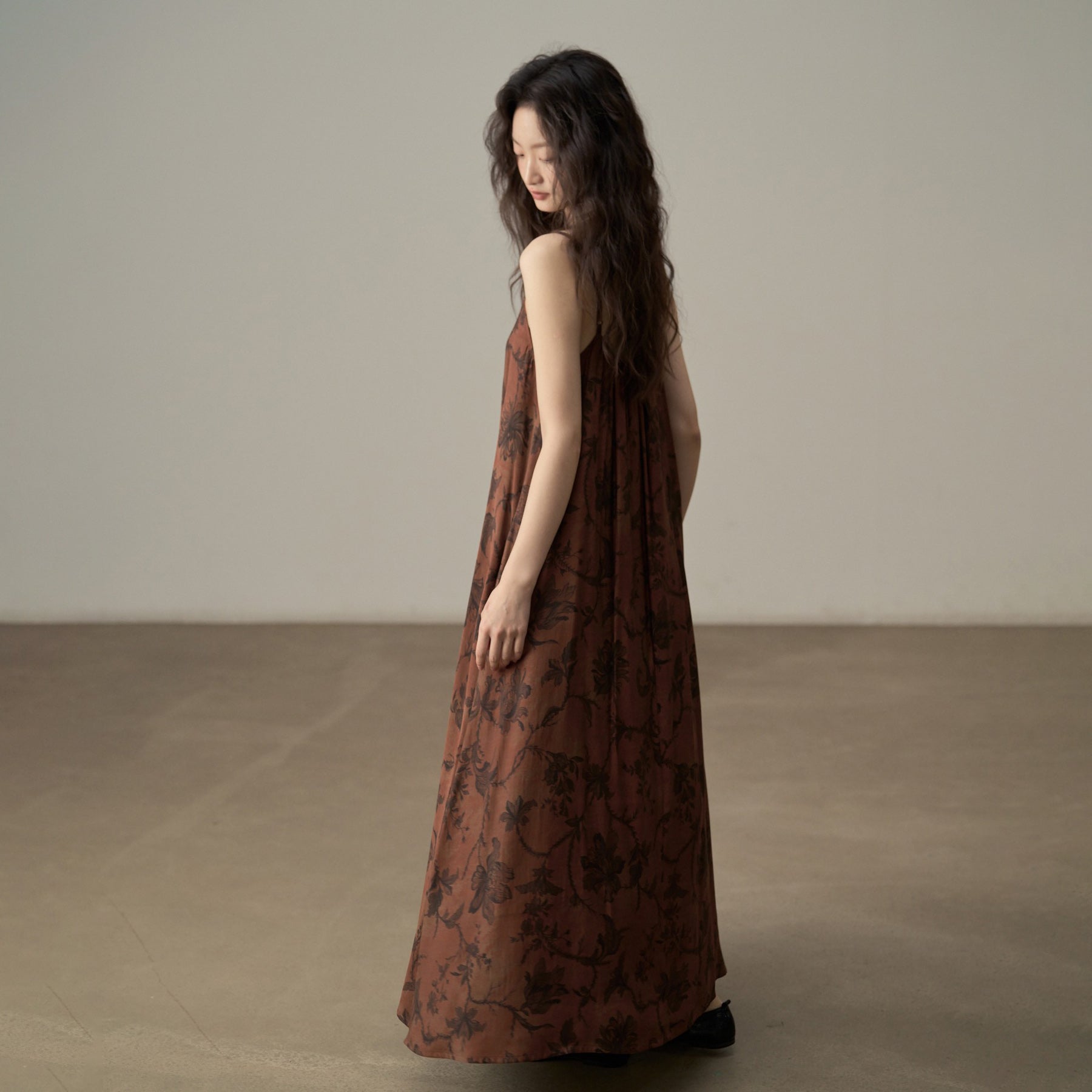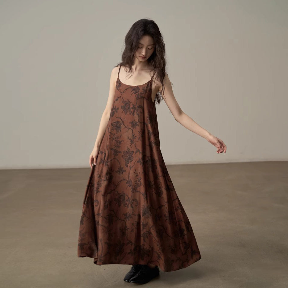 【商品名】【ワンピース】新中式 ヴィンテージ高級感 プリント 柔らかい素材 リゾート風 ノースリーブワンピース【SHシリーズ】