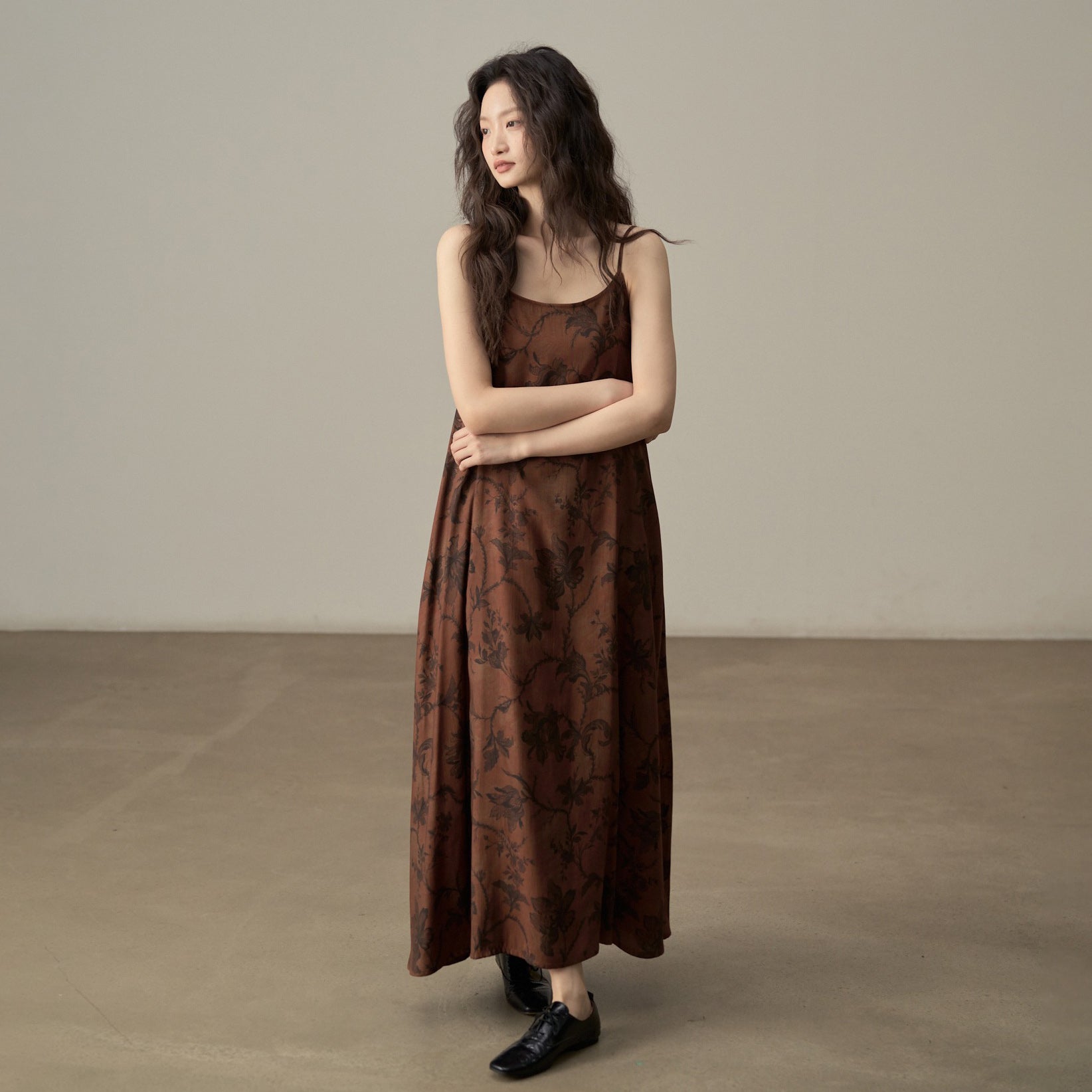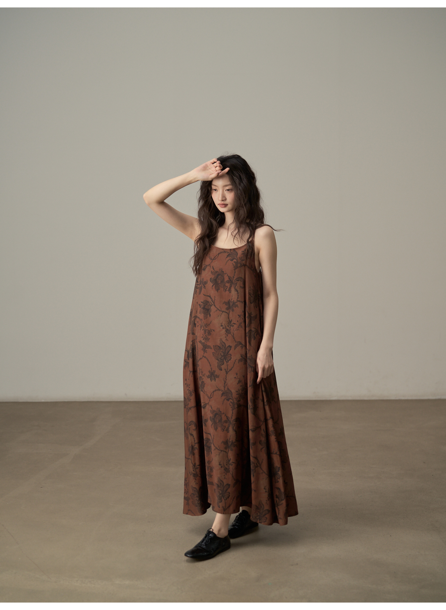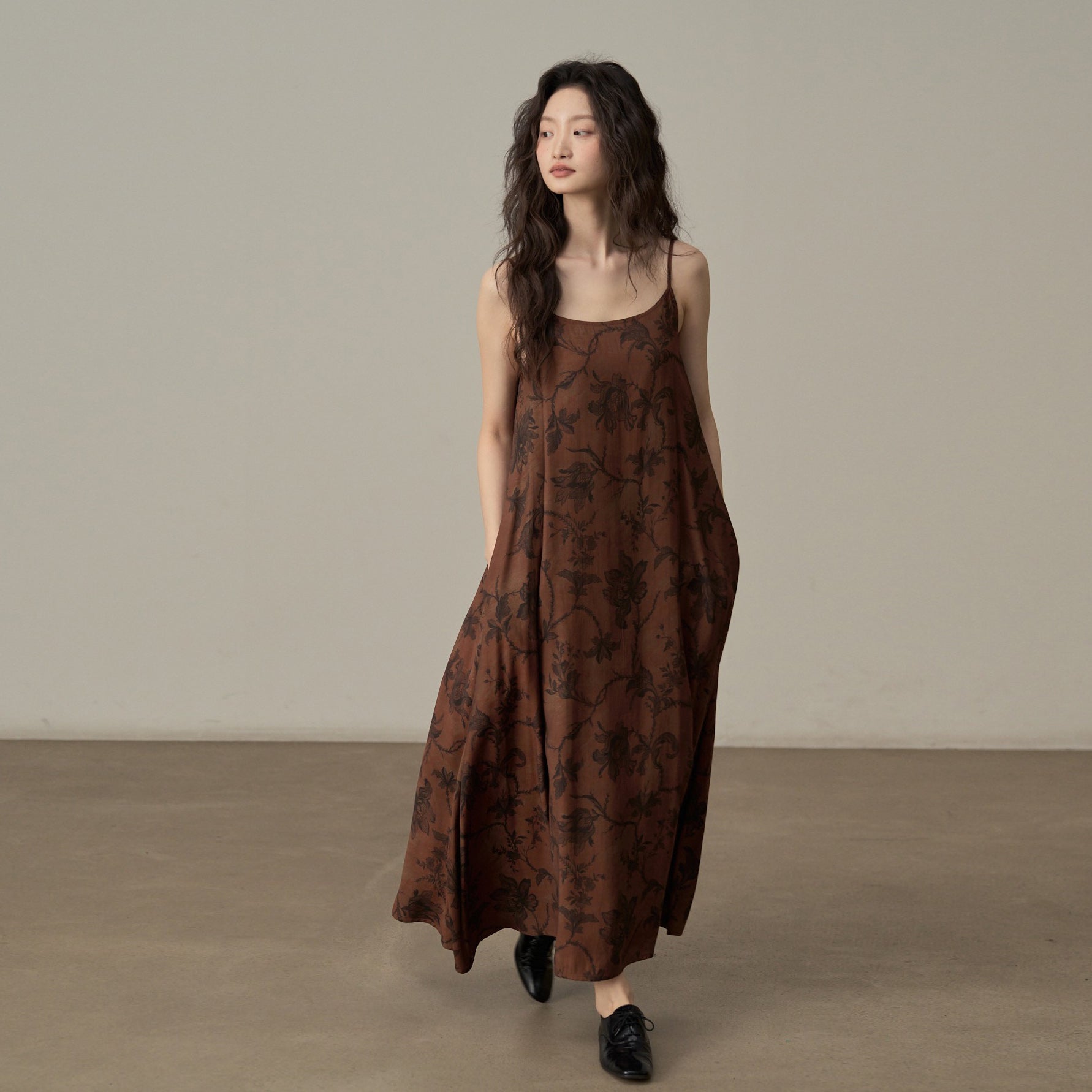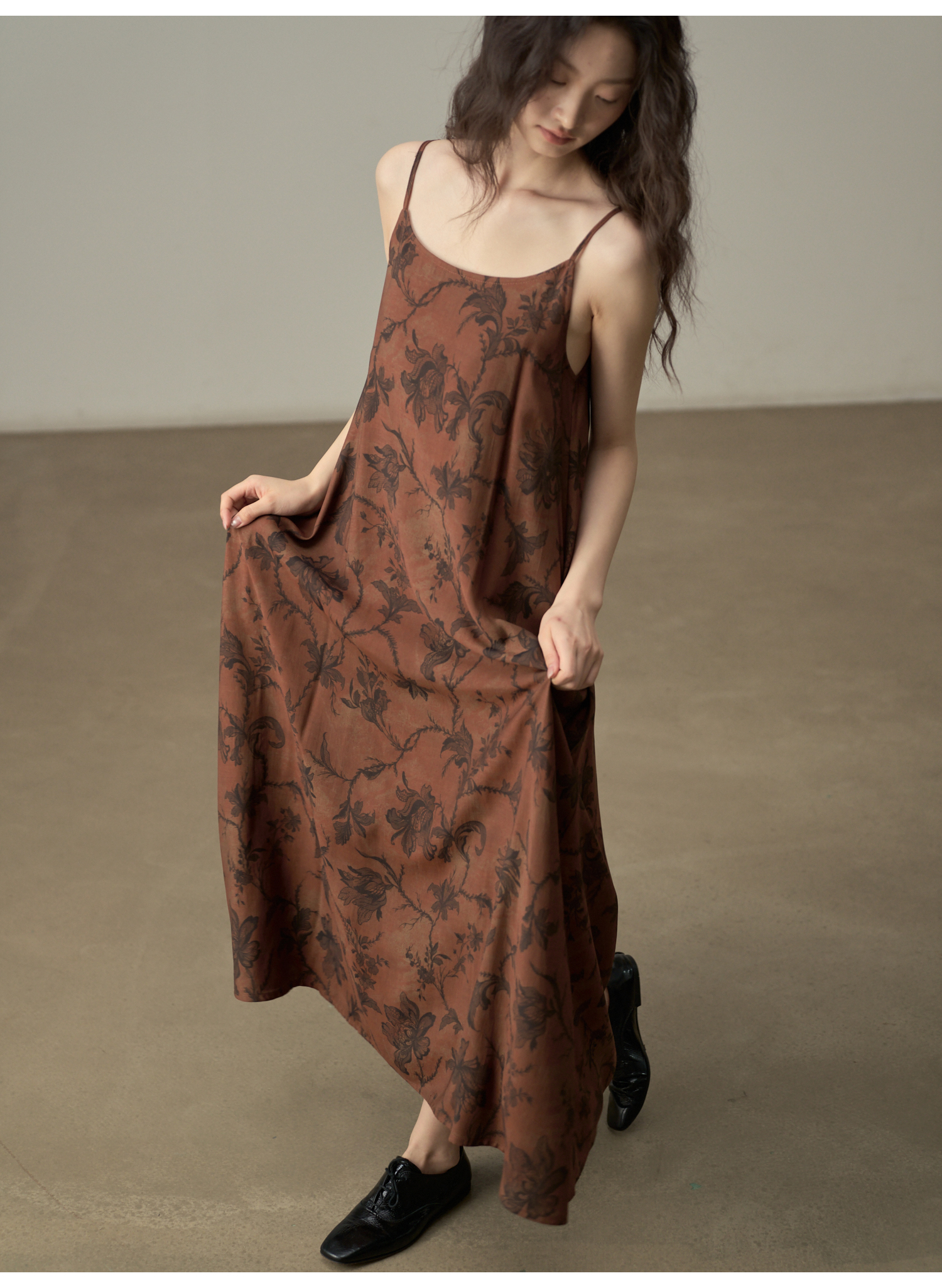 【商品名】【ワンピース】新中式 ヴィンテージ高級感 プリント 柔らかい素材 リゾート風 ノースリーブワンピース【SHシリーズ】