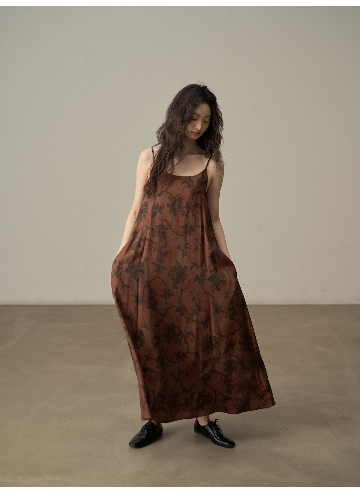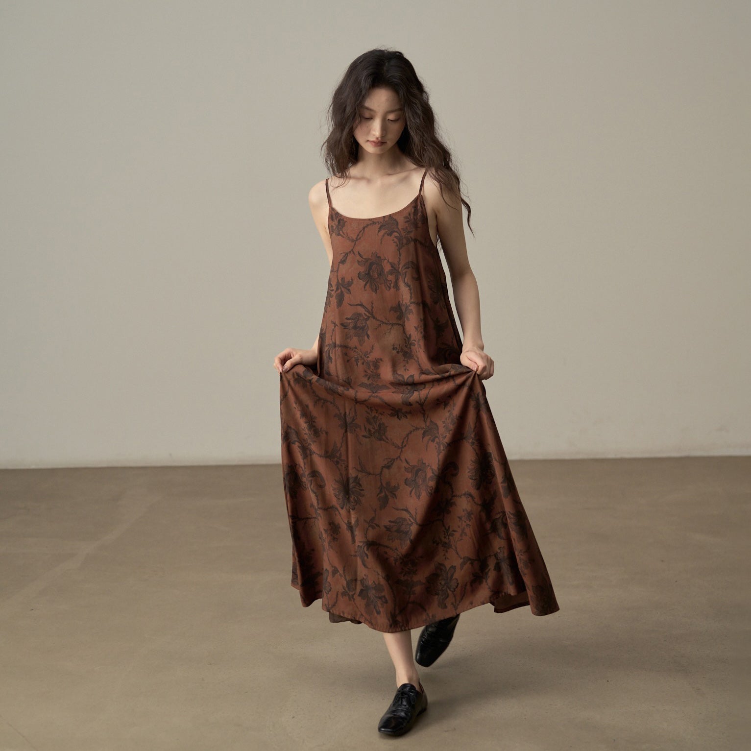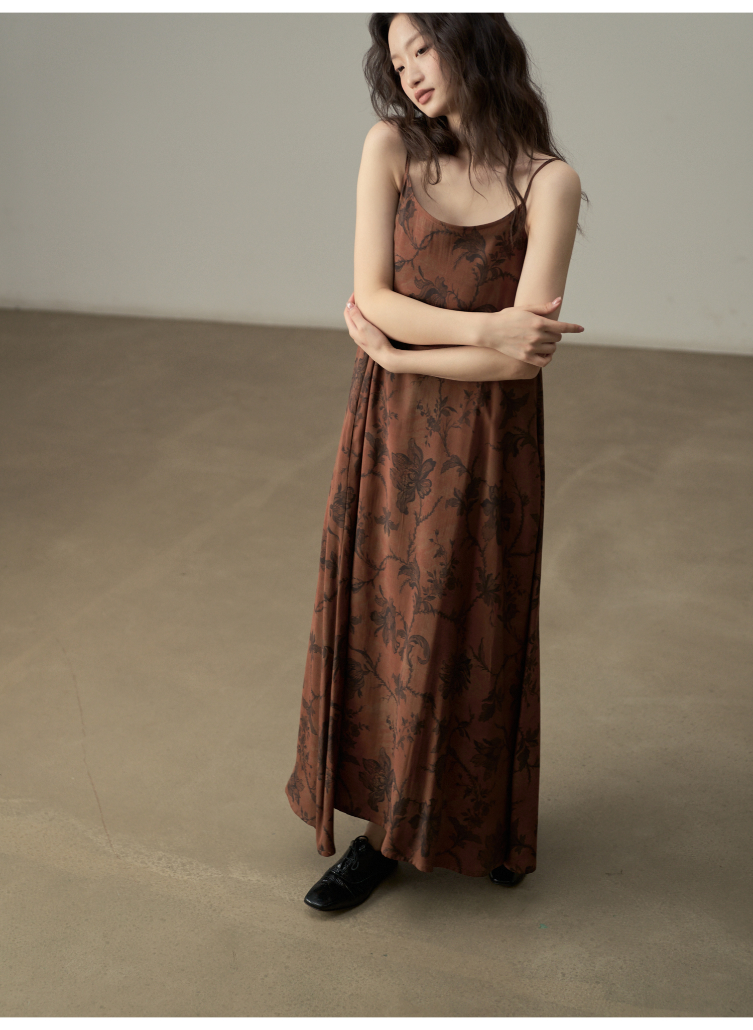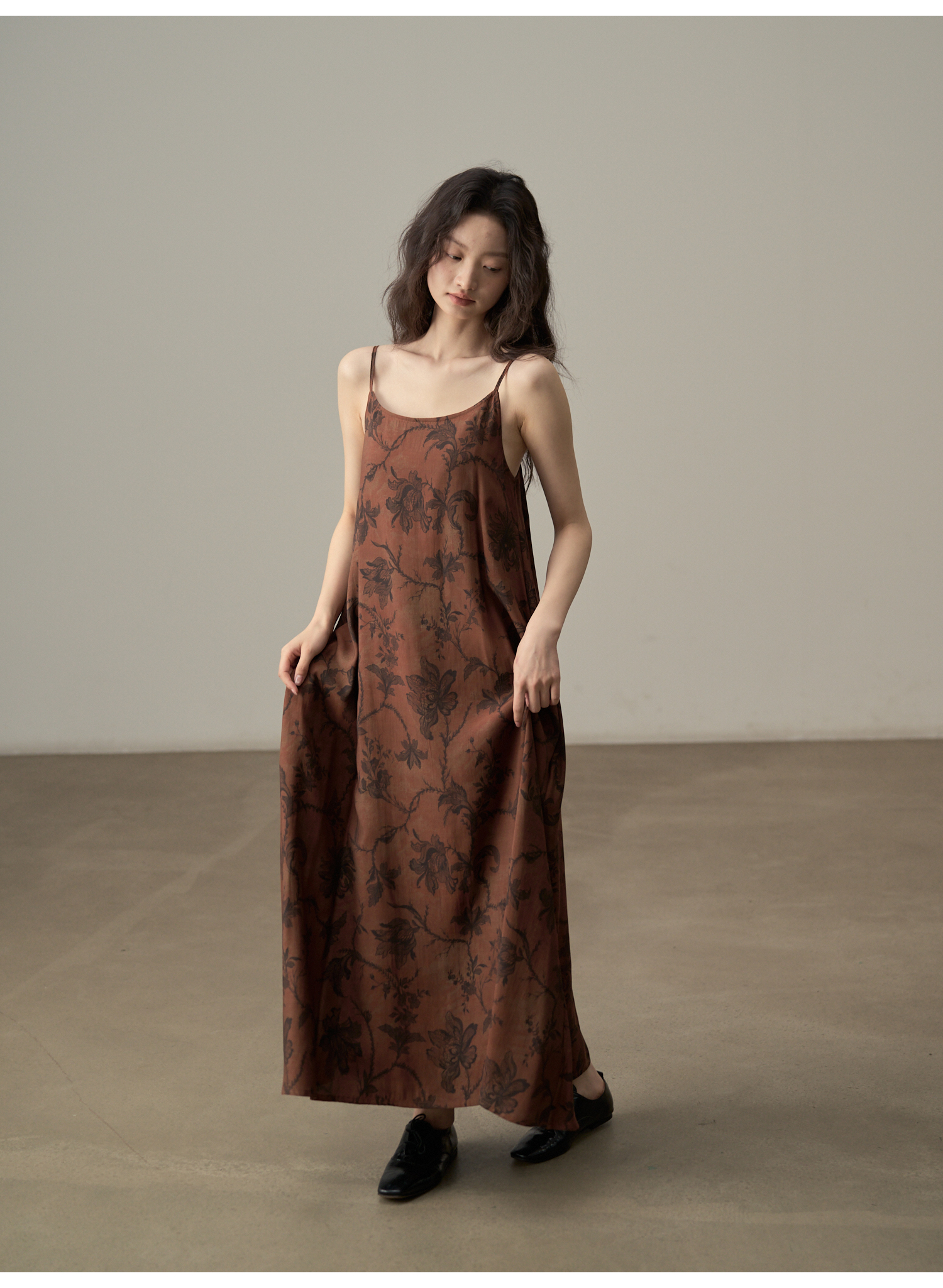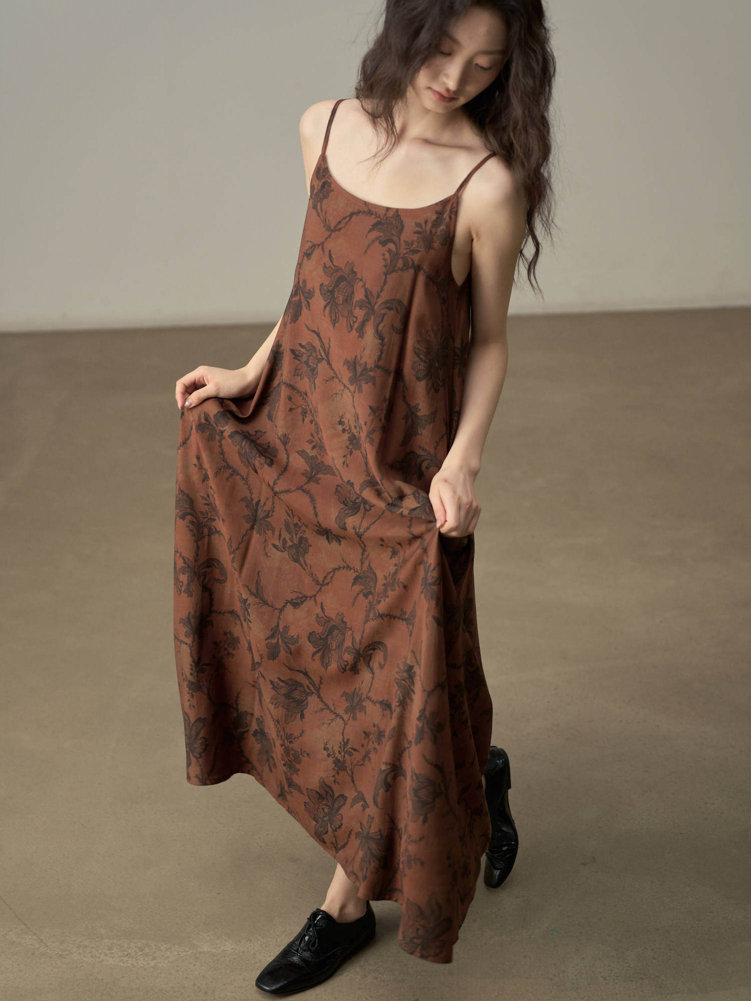 【商品名】【ワンピース】新中式 ヴィンテージ高級感 プリント 柔らかい素材 リゾート風 ノースリーブワンピース【SHシリーズ】