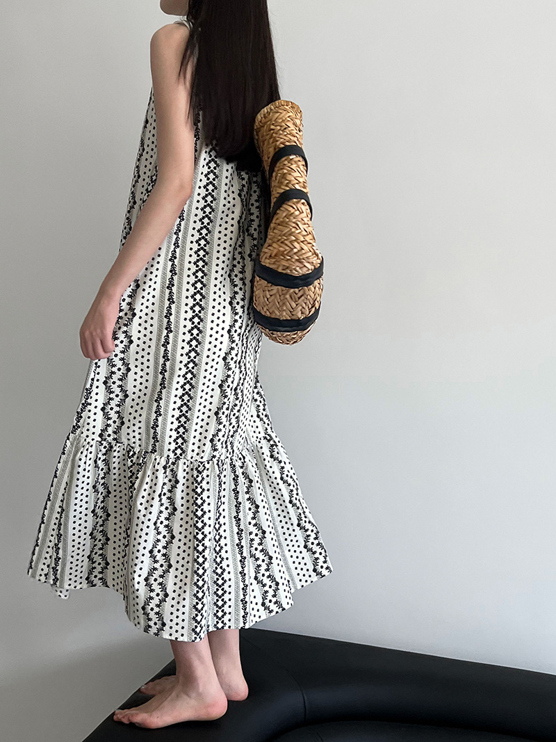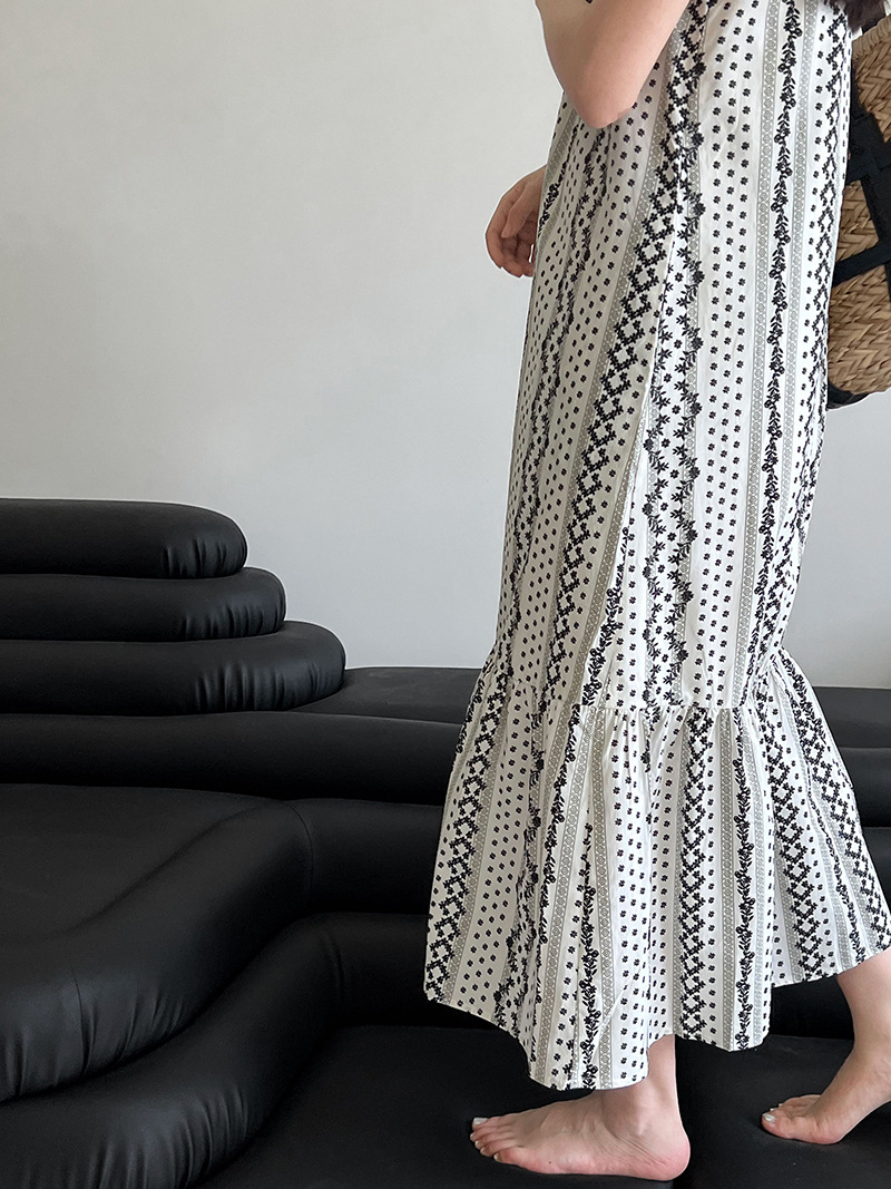 【ワンピース】ブラック&ホワイト ブラック&ホワイト プリント 長袖 ワンピース 【SHシリーズ】