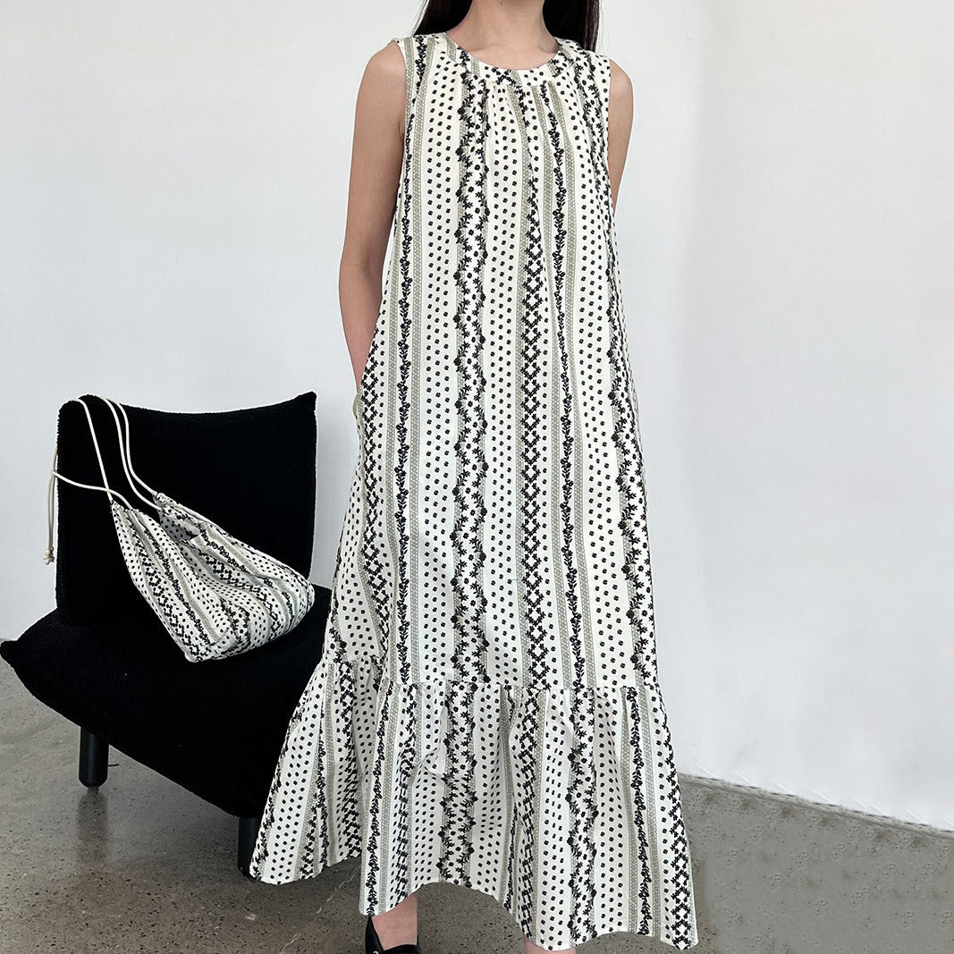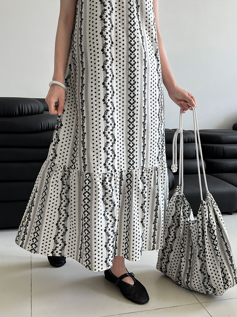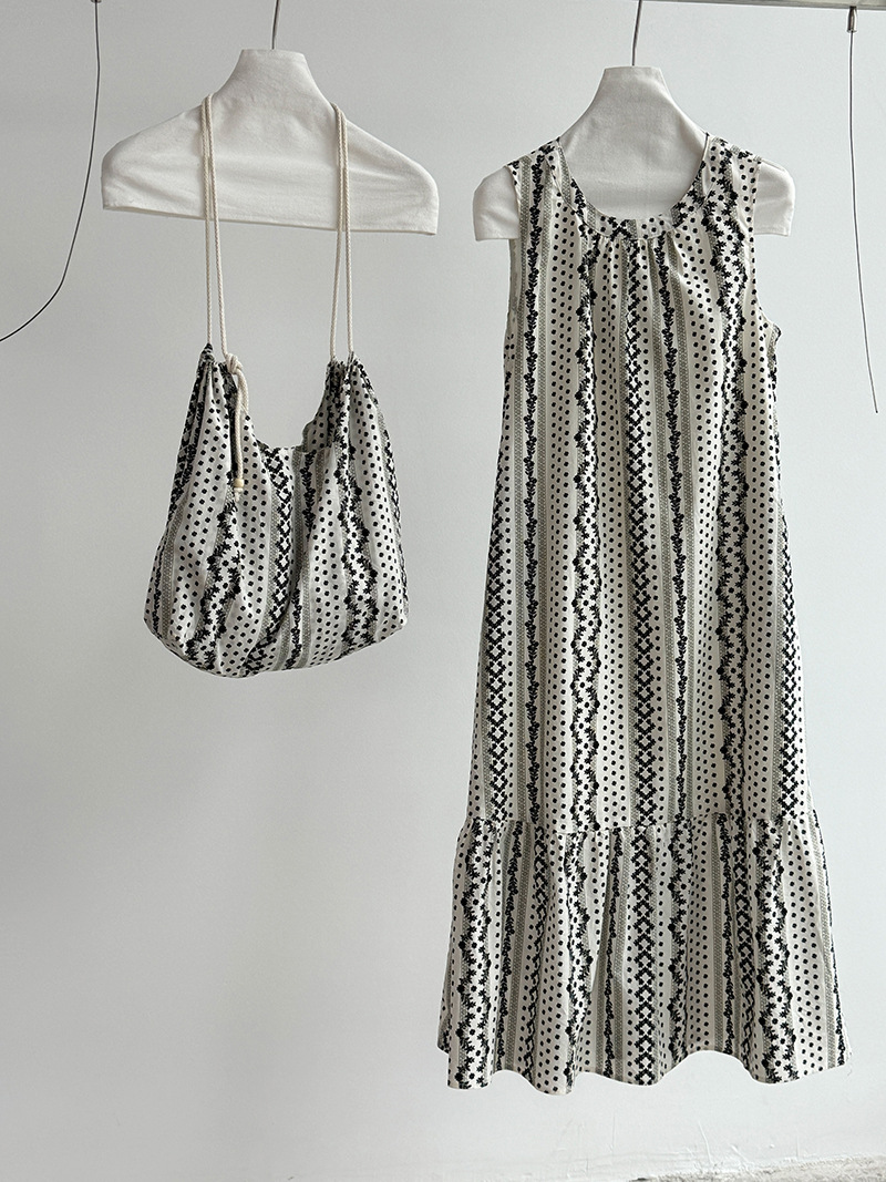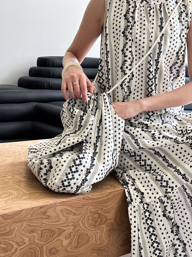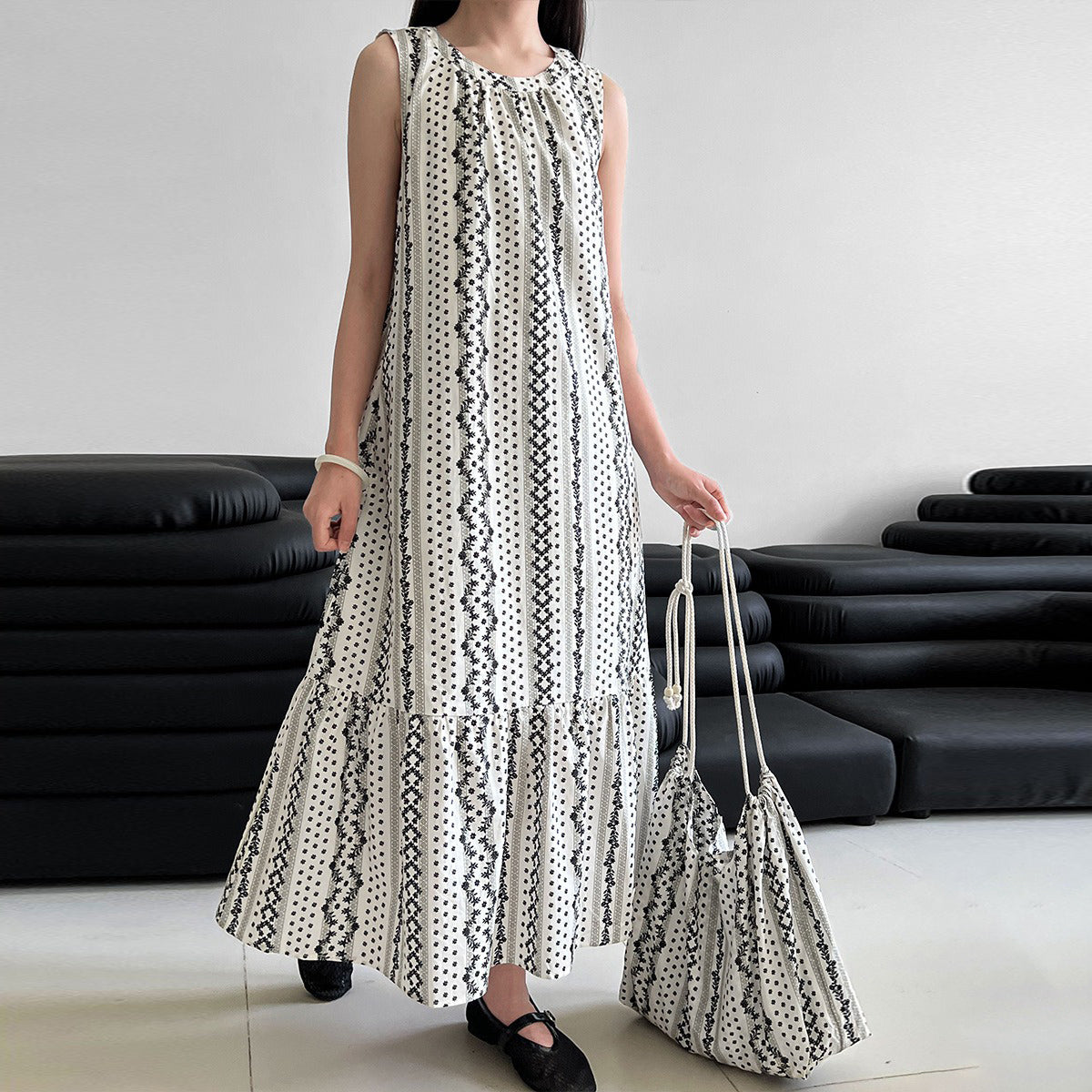 【商品名】【ワンピース】バッグ付き 韓国風 気質 民族風 フラワープリント 夏新作 ノースリーブワンピース【SHシリーズ】