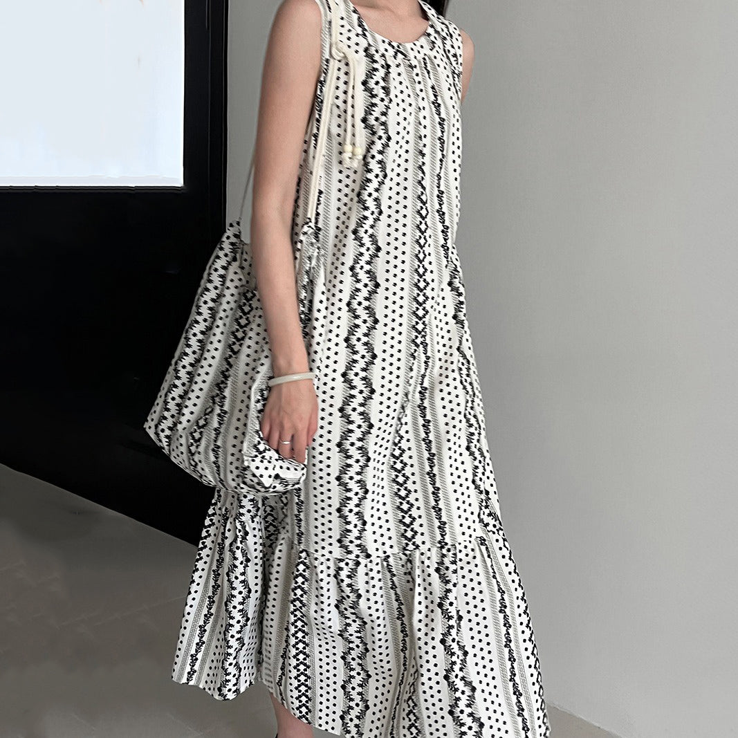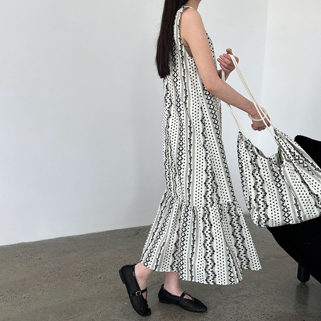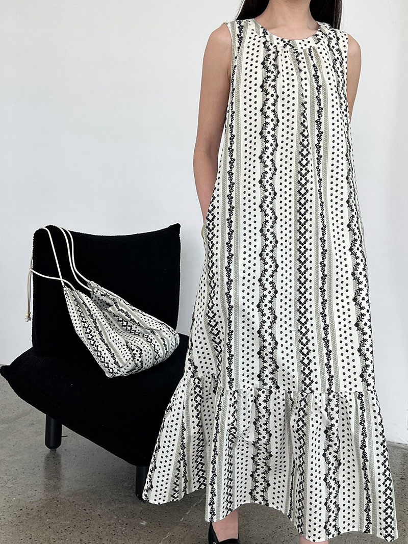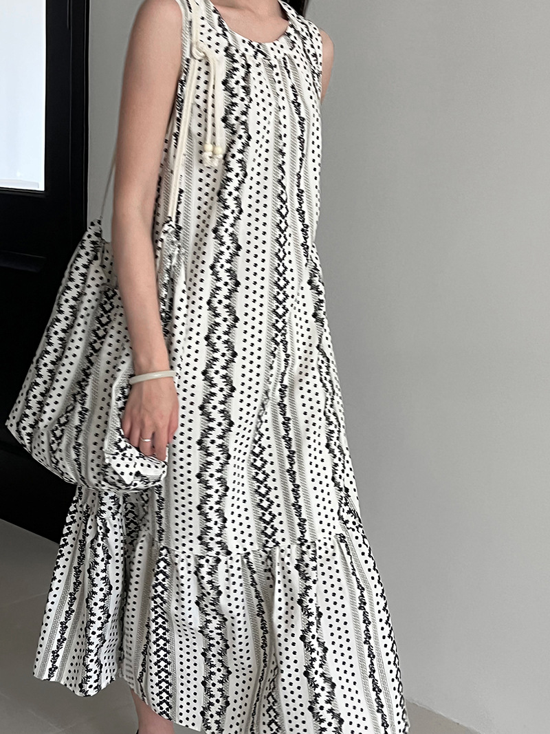 【商品名】【ワンピース】バッグ付き 韓国風 気質 民族風 フラワープリント 夏新作 ノースリーブワンピース【SHシリーズ】