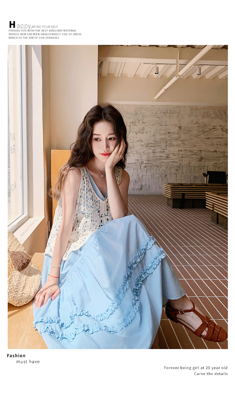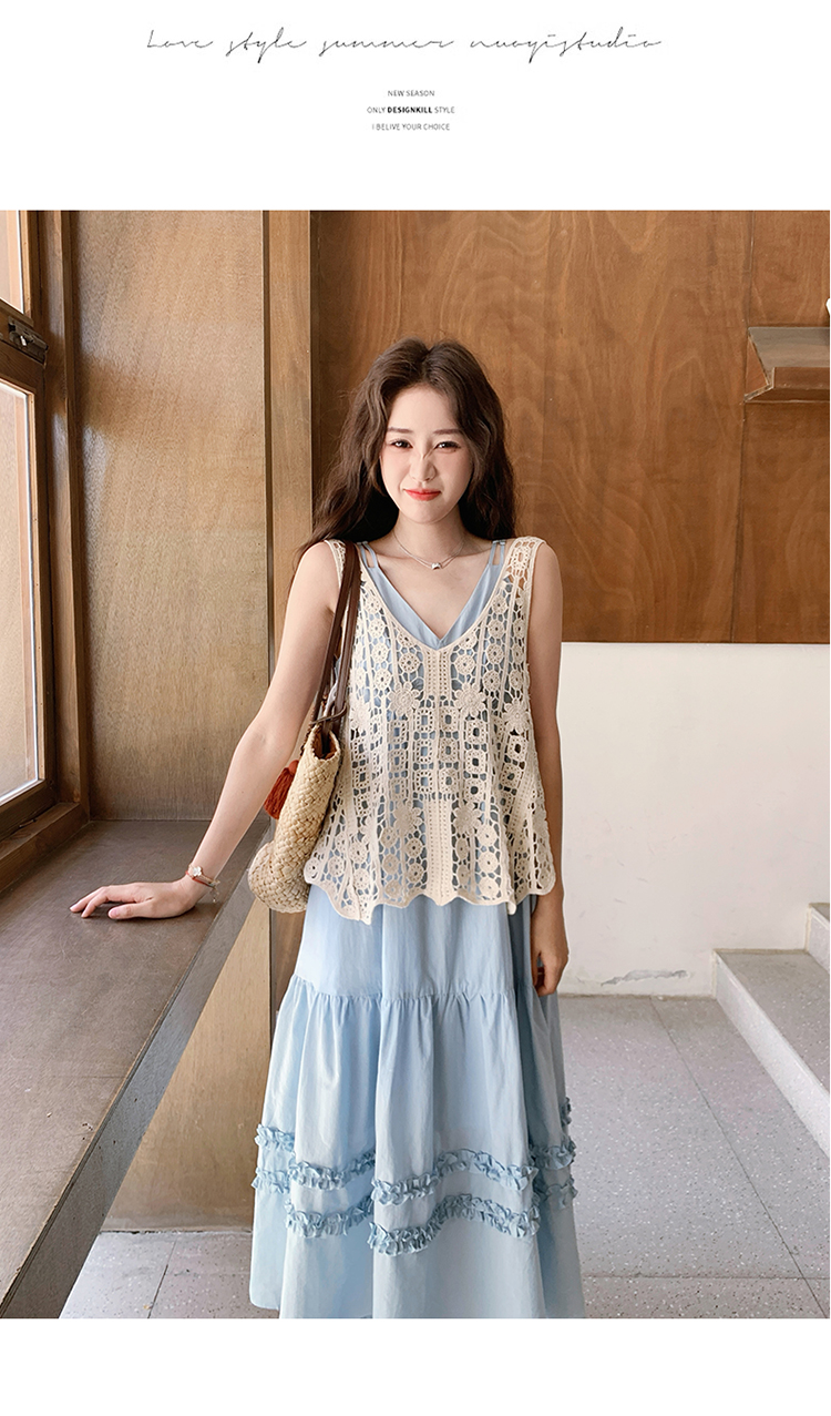 【商品名】2点セット!【ワンピース】夏新作 フレンチエレガンス レース編み ノースリーブ ベスト+ワンピース 上下セット【SHシリーズ】