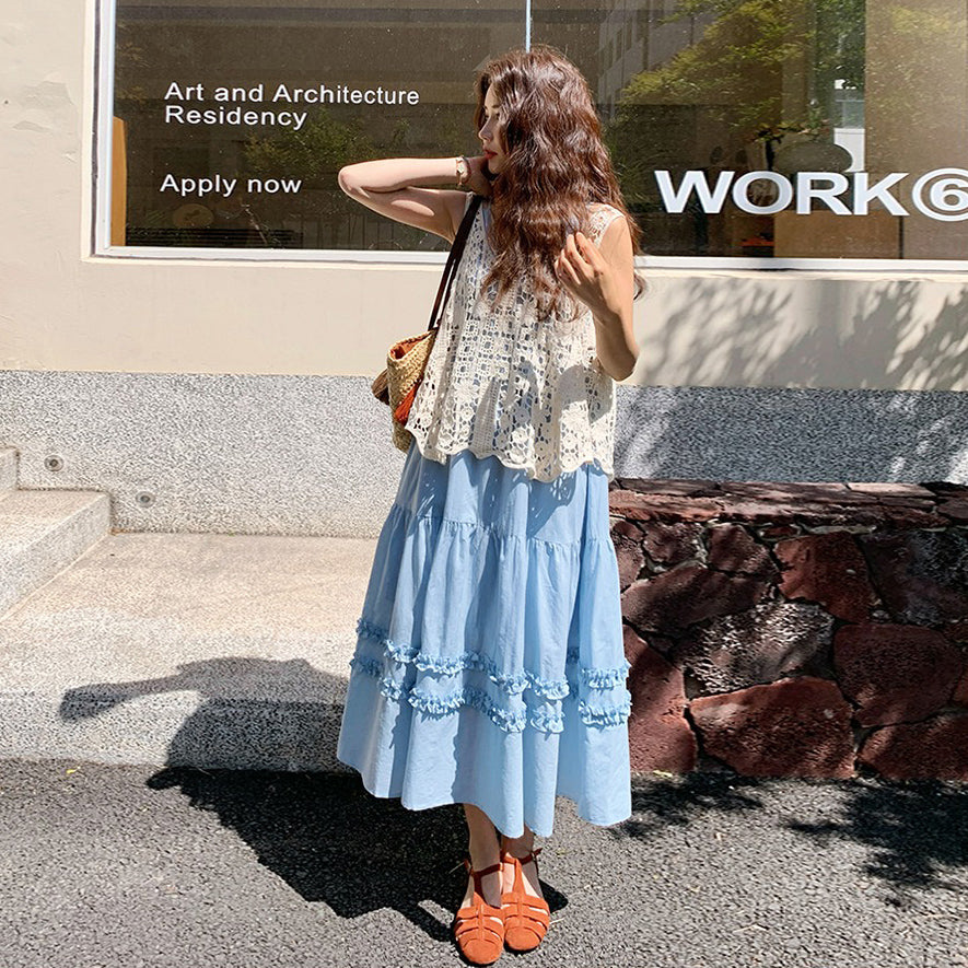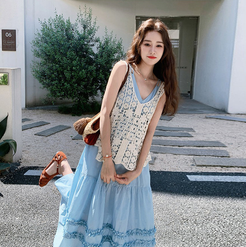 2点セット!【セットアップ】夏新作 フレンチエレガンス レース編み ノースリーブ ベスト+ワンピースセット【SHシリーズ】