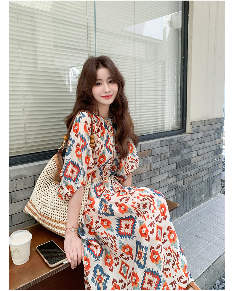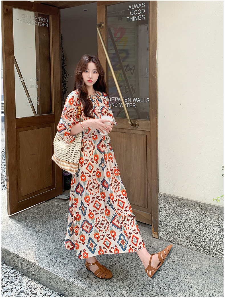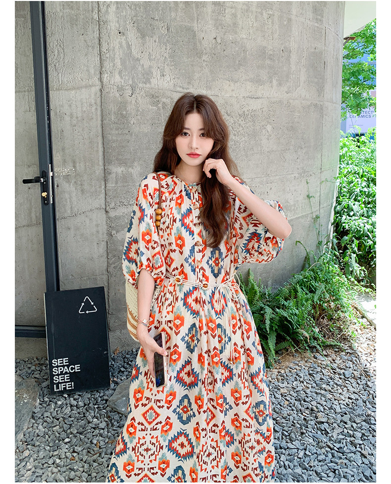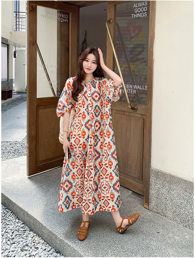 【商品名】【ワンピース】夏 フレンチ風 旅行リゾート風 プリント パフスリーブ 半袖ワンピース【SHシリーズ】