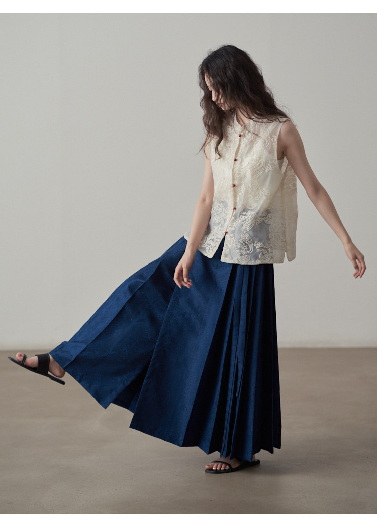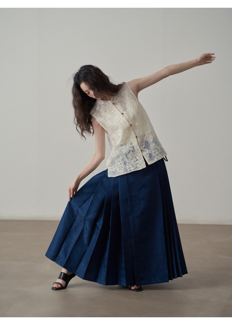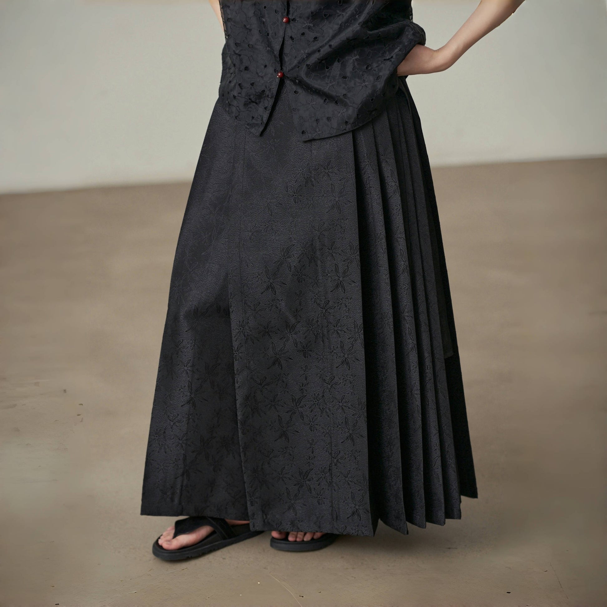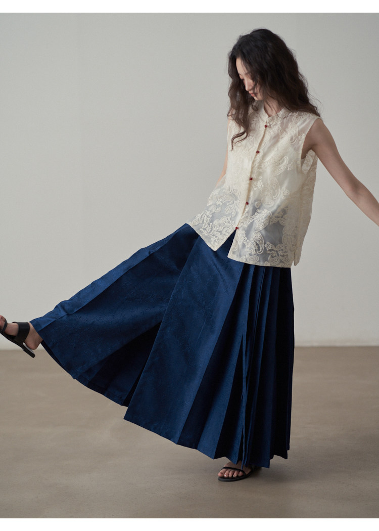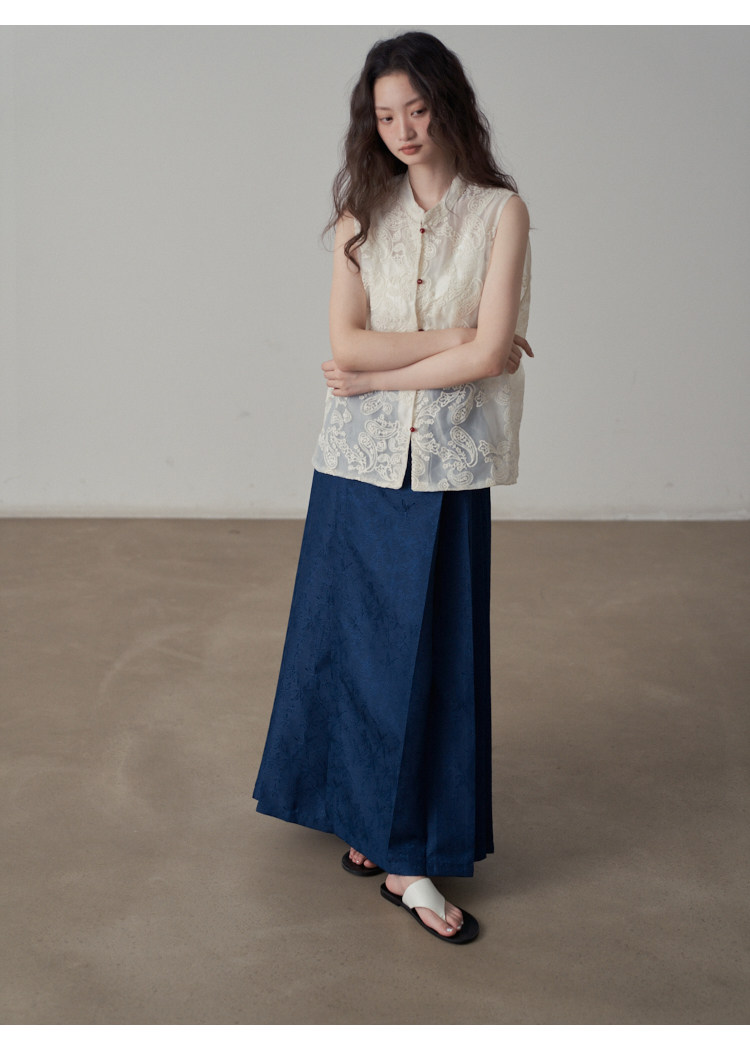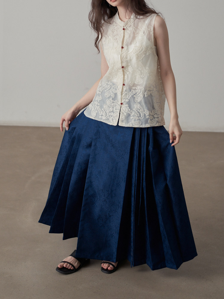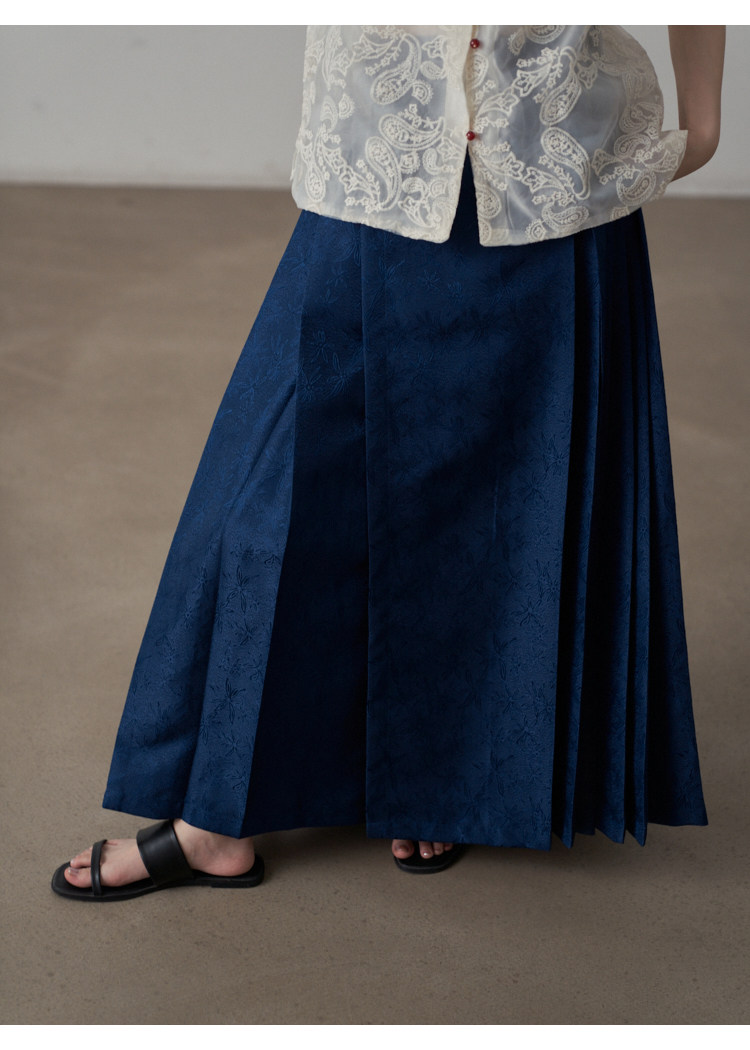 【ボトムス】夏 新中華風 ジャカード刺繍フラワー柄 馬面スカート 【SHシリーズ】