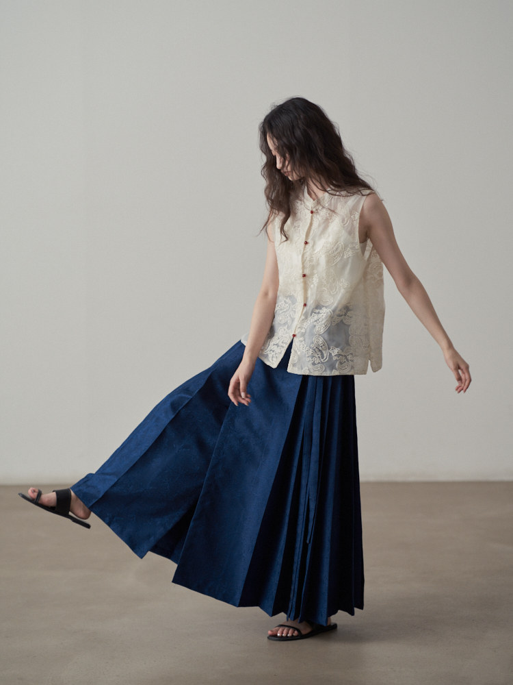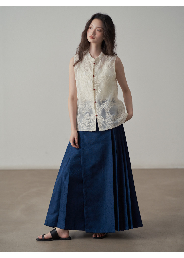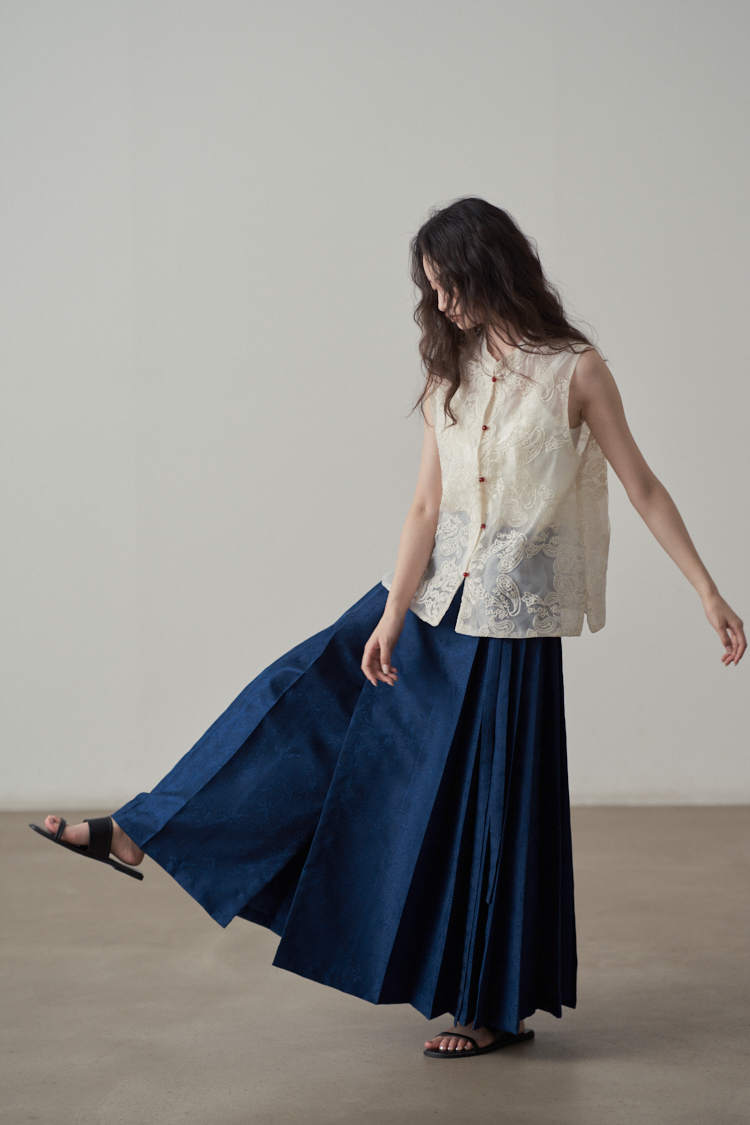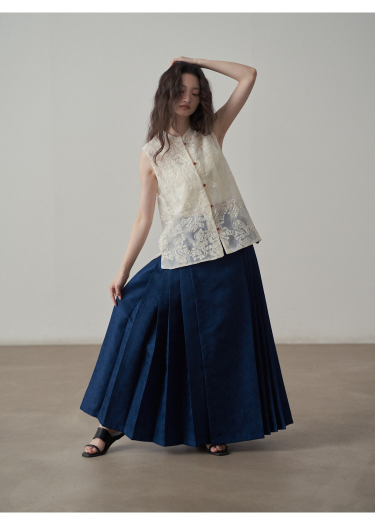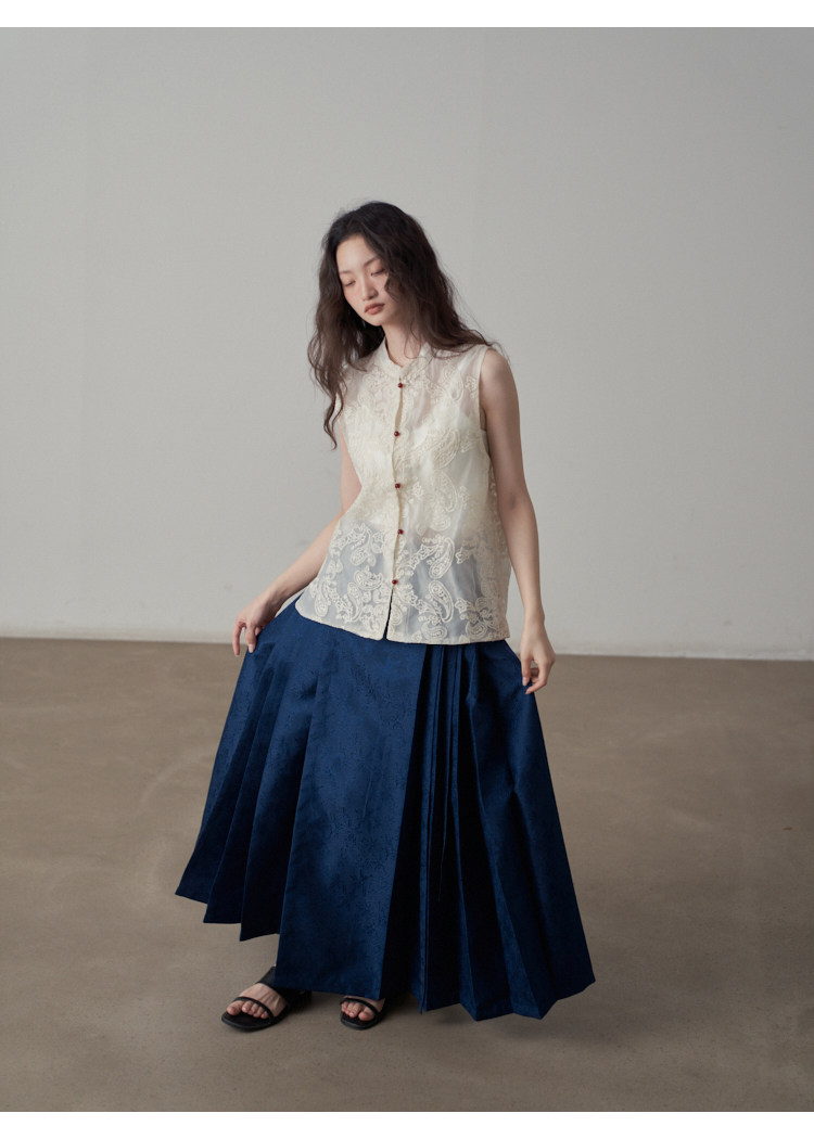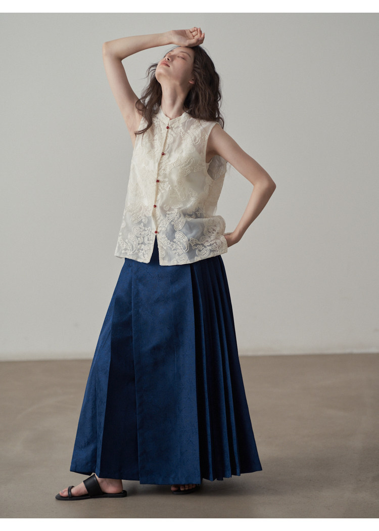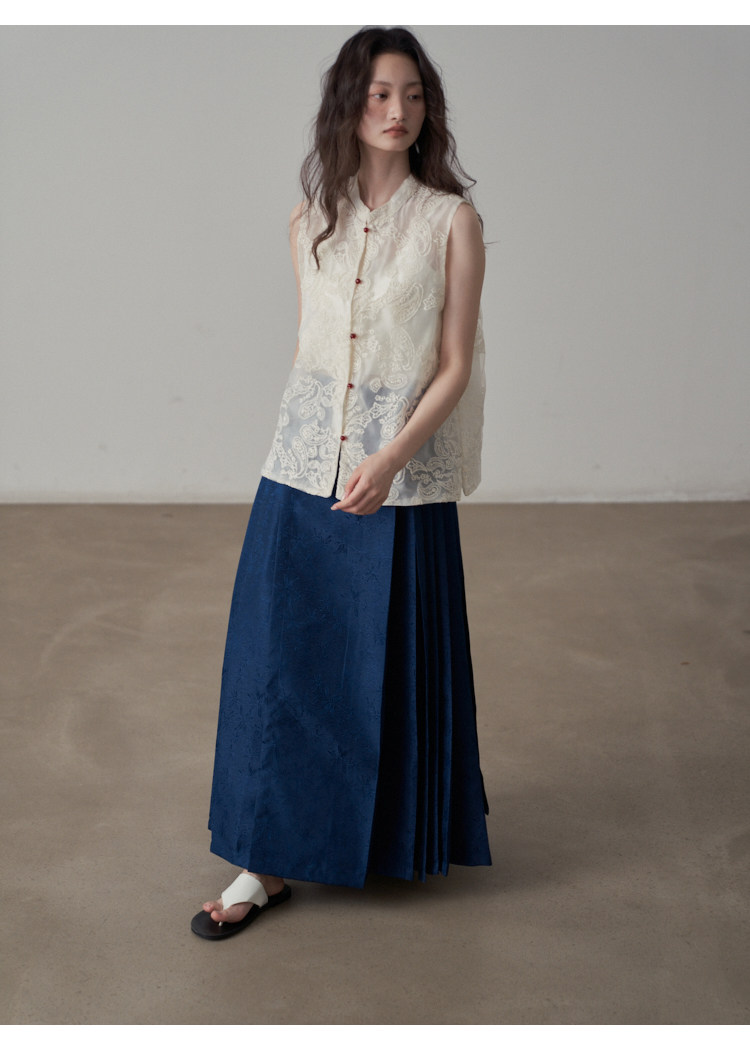 【ボトムス】夏 新中華風 ジャカード刺繍フラワー柄 馬面スカート 【SHシリーズ】