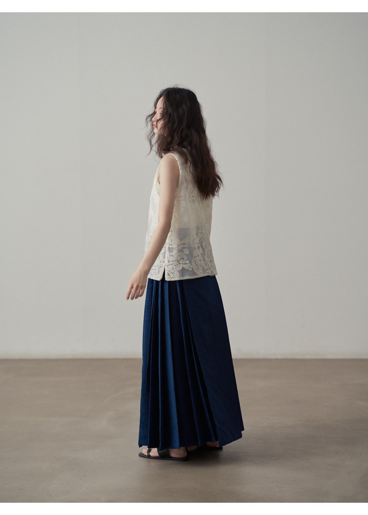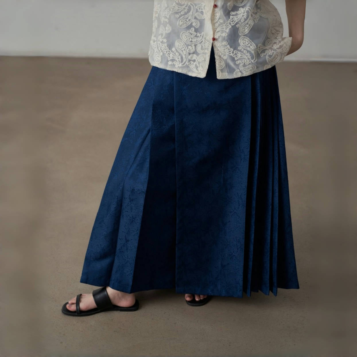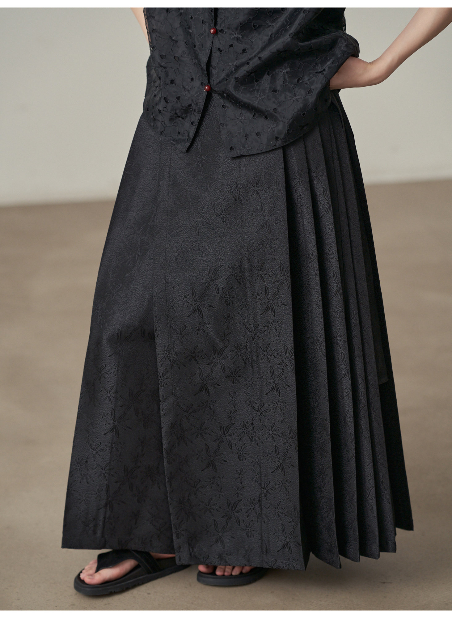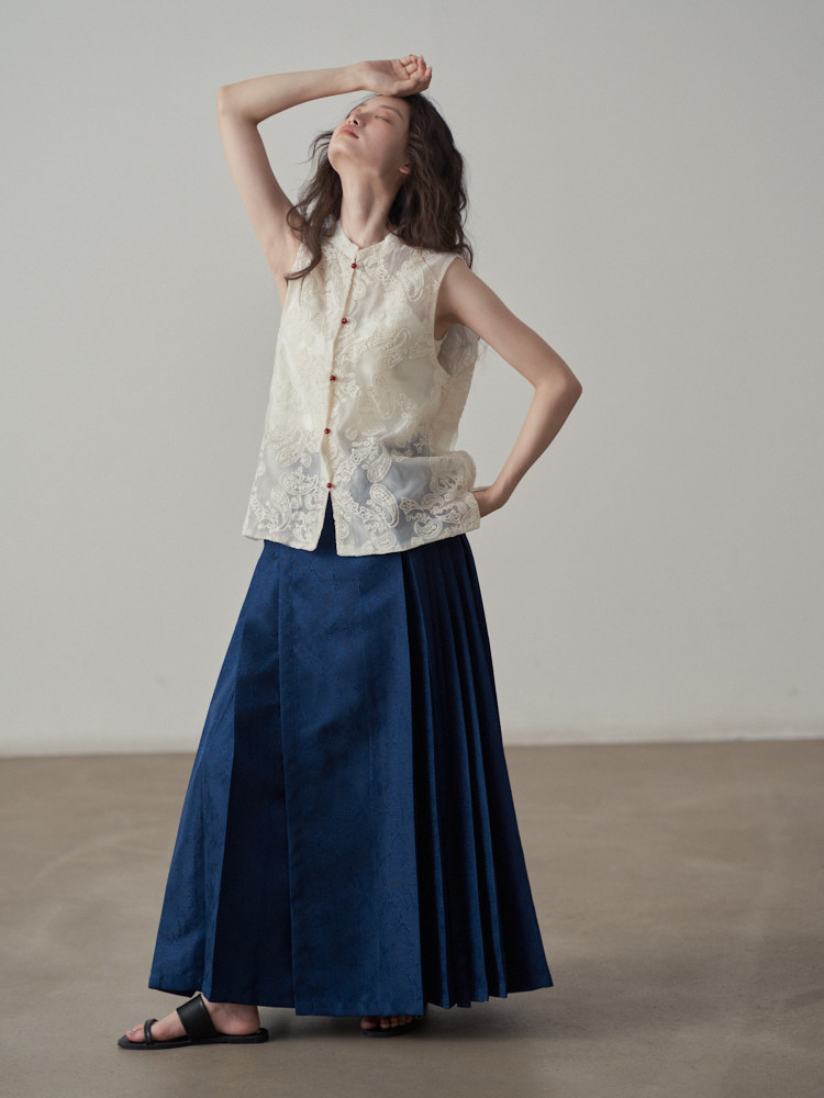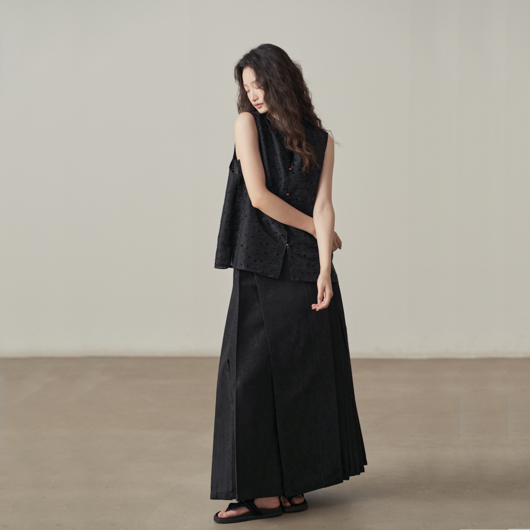 【ボトムス】夏 新中華風 ジャカード刺繍フラワー柄 馬面スカート 【SHシリーズ】