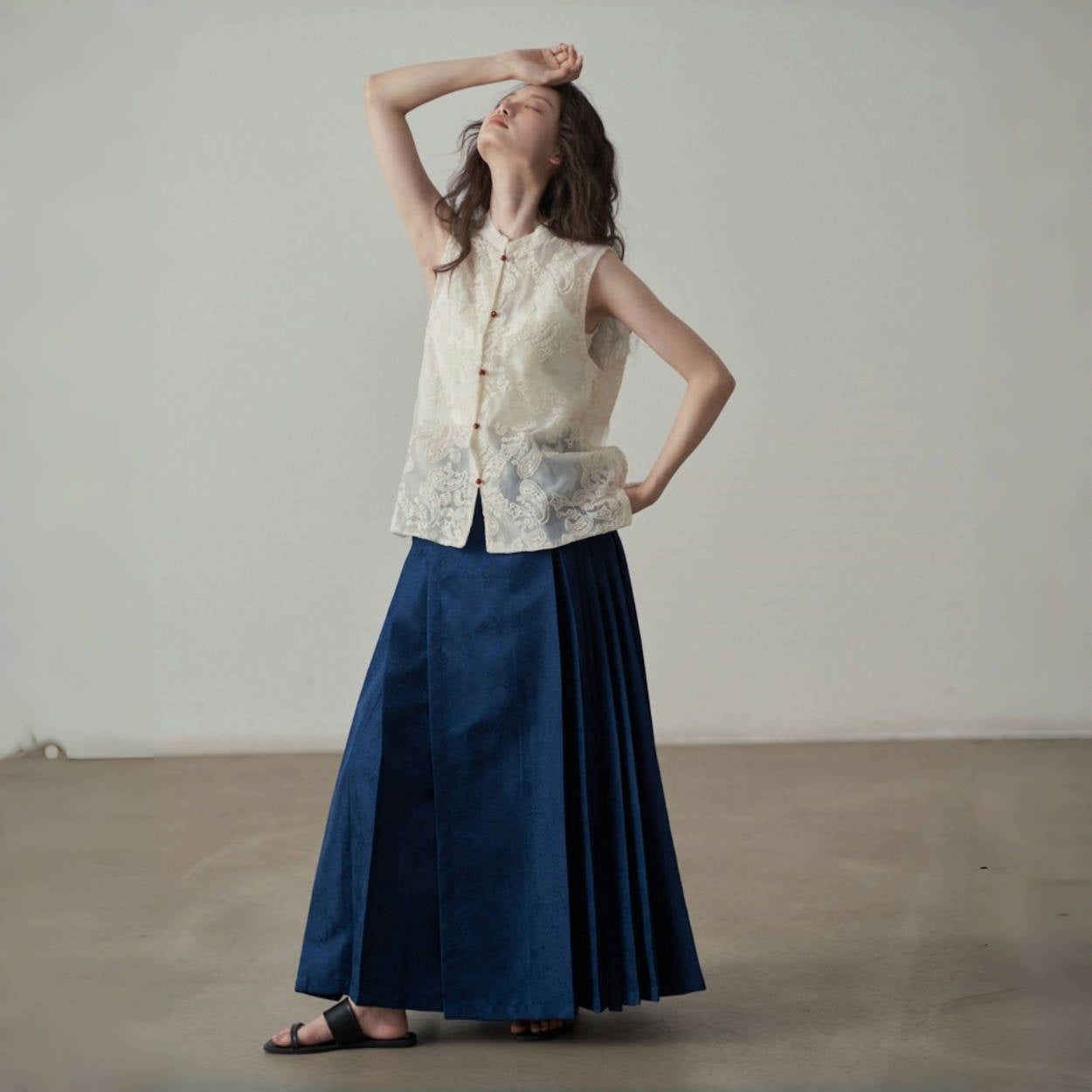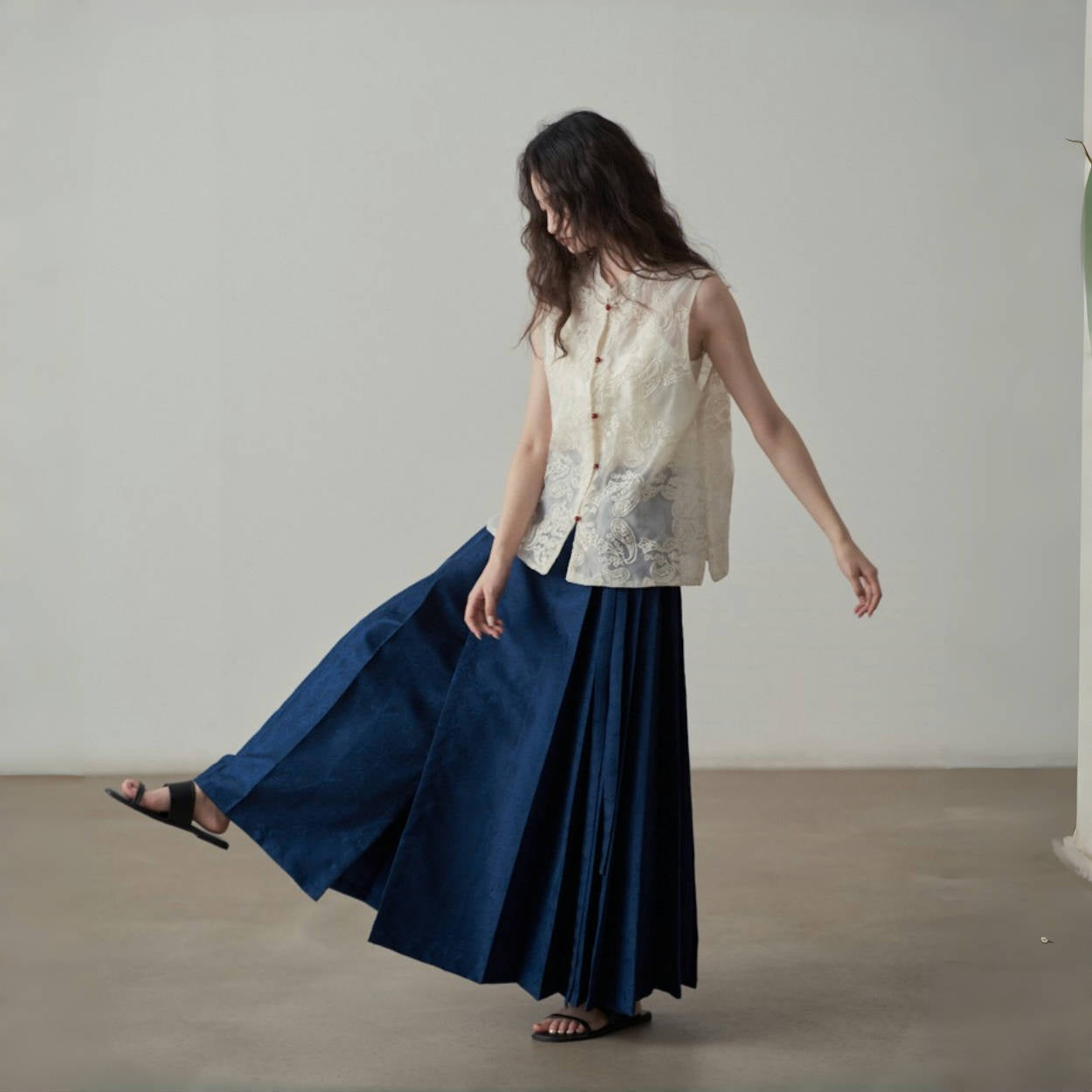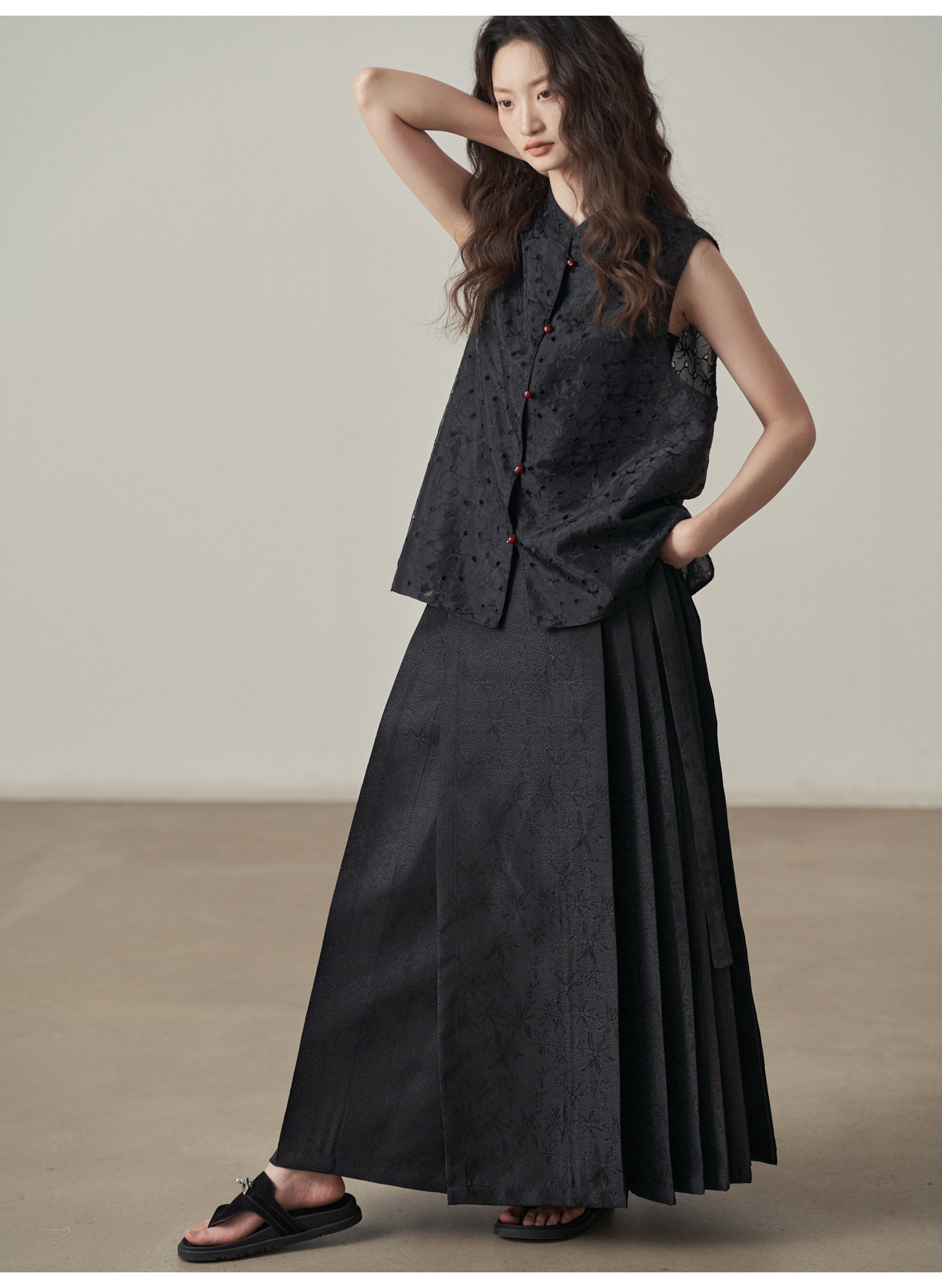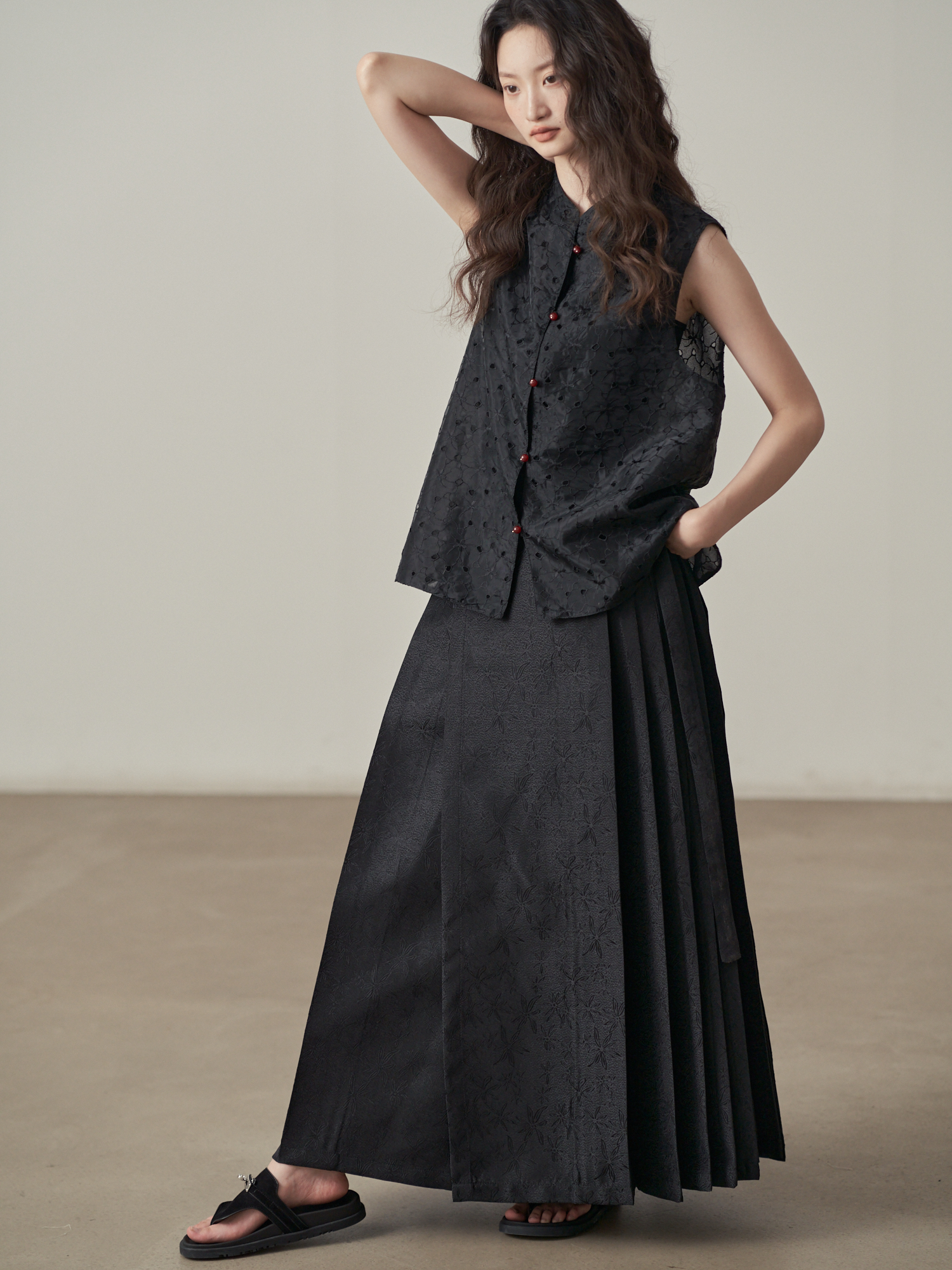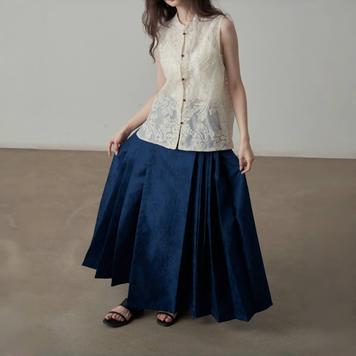 【ボトムス】夏 新中華風 ジャカード刺繍フラワー柄 馬面スカート 【SHシリーズ】