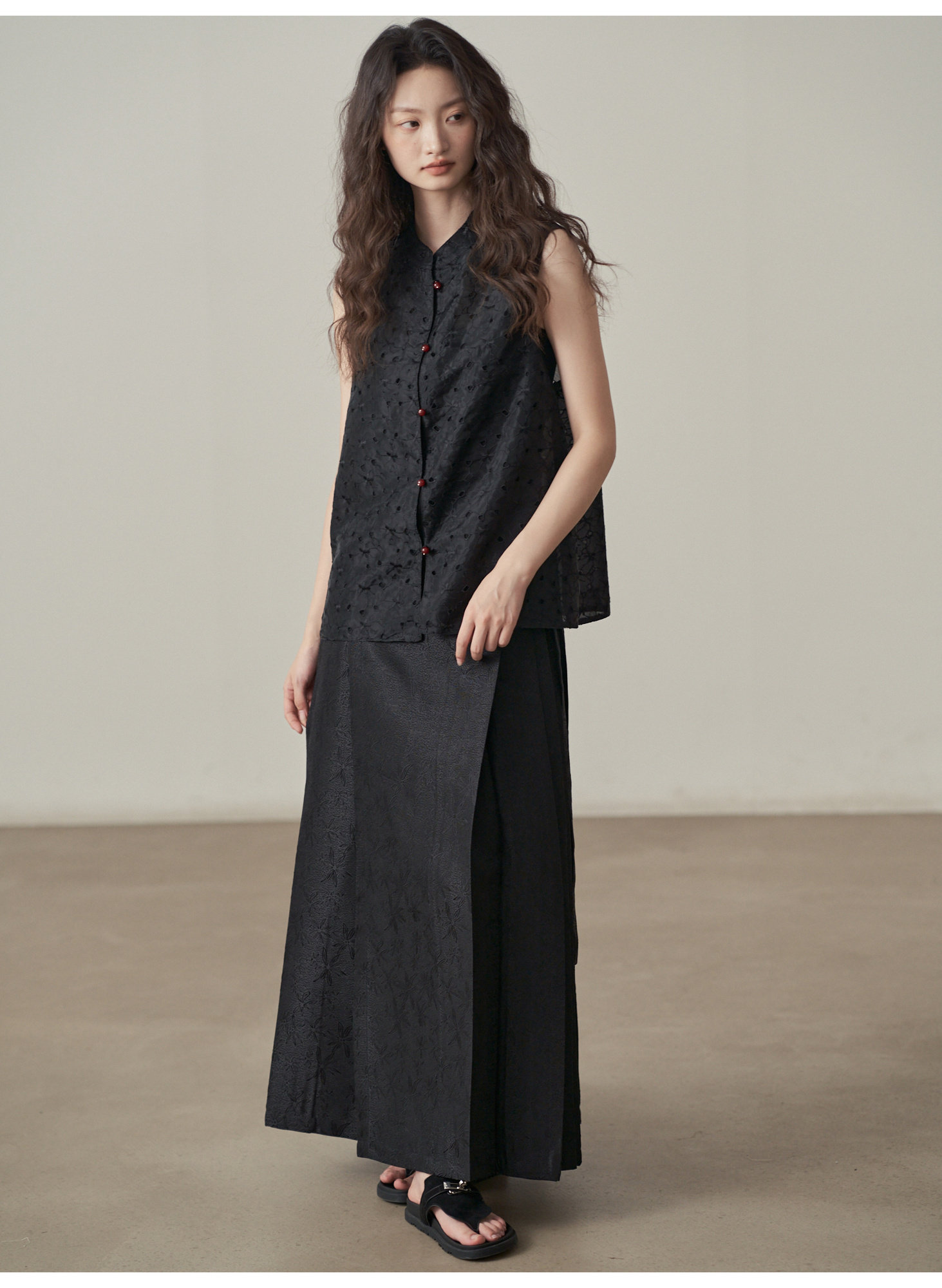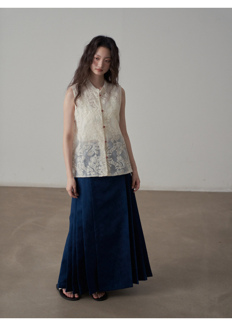 【商品名】【ボトムス】夏 新中華風 ジャカード刺繍フラワー柄 馬面スカート 【SHシリーズ】
