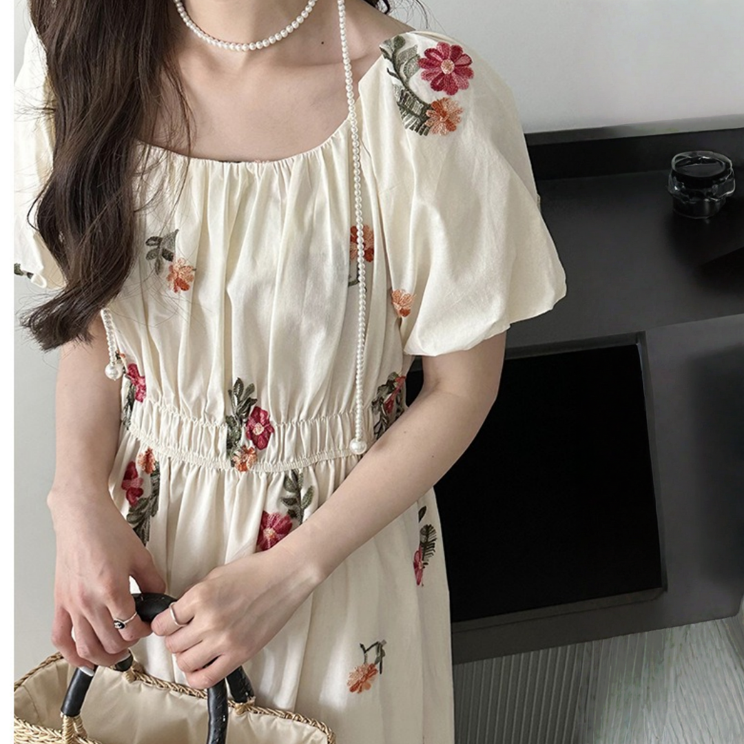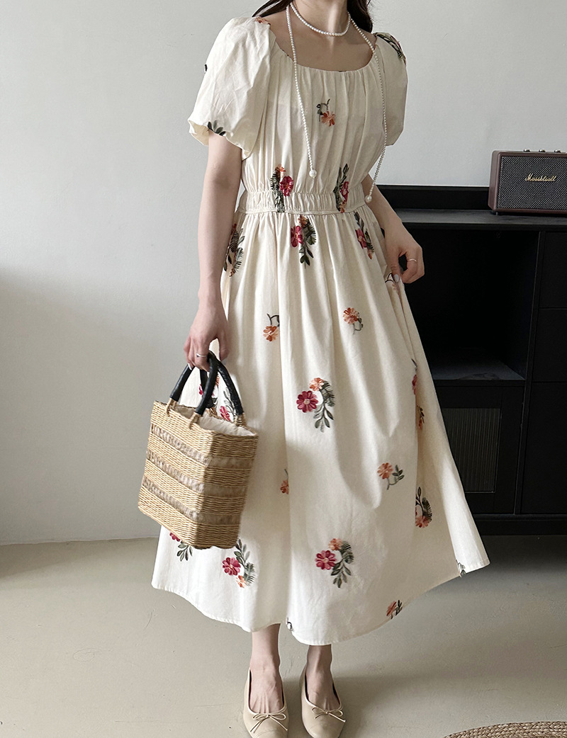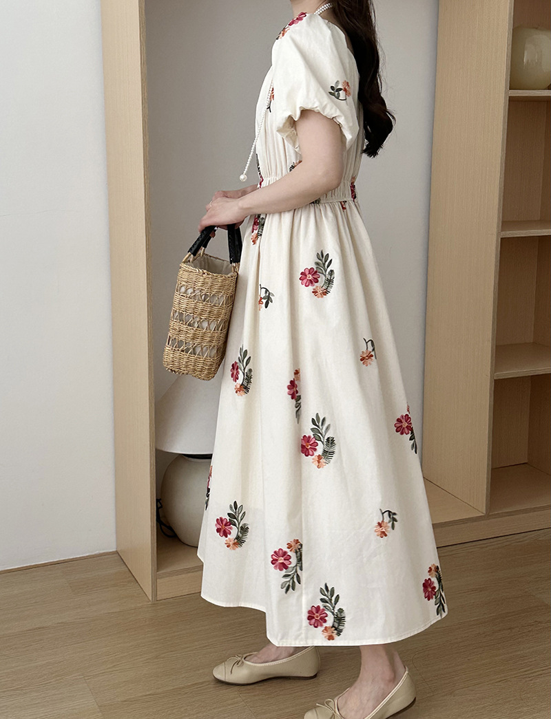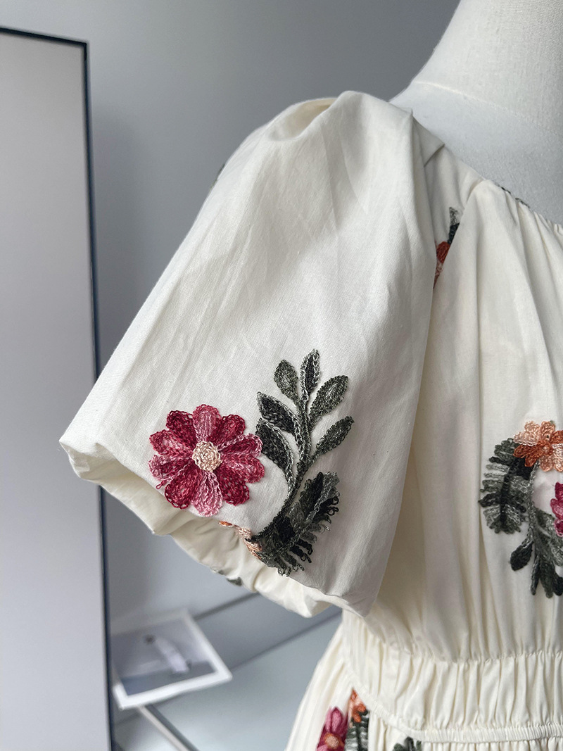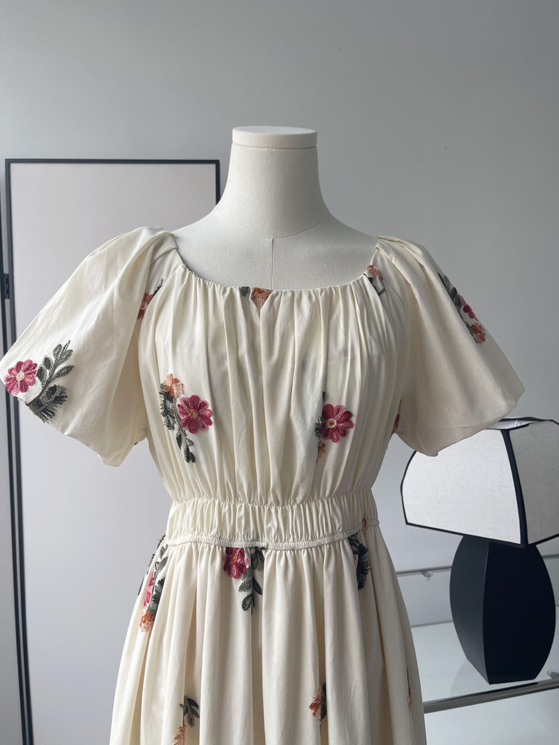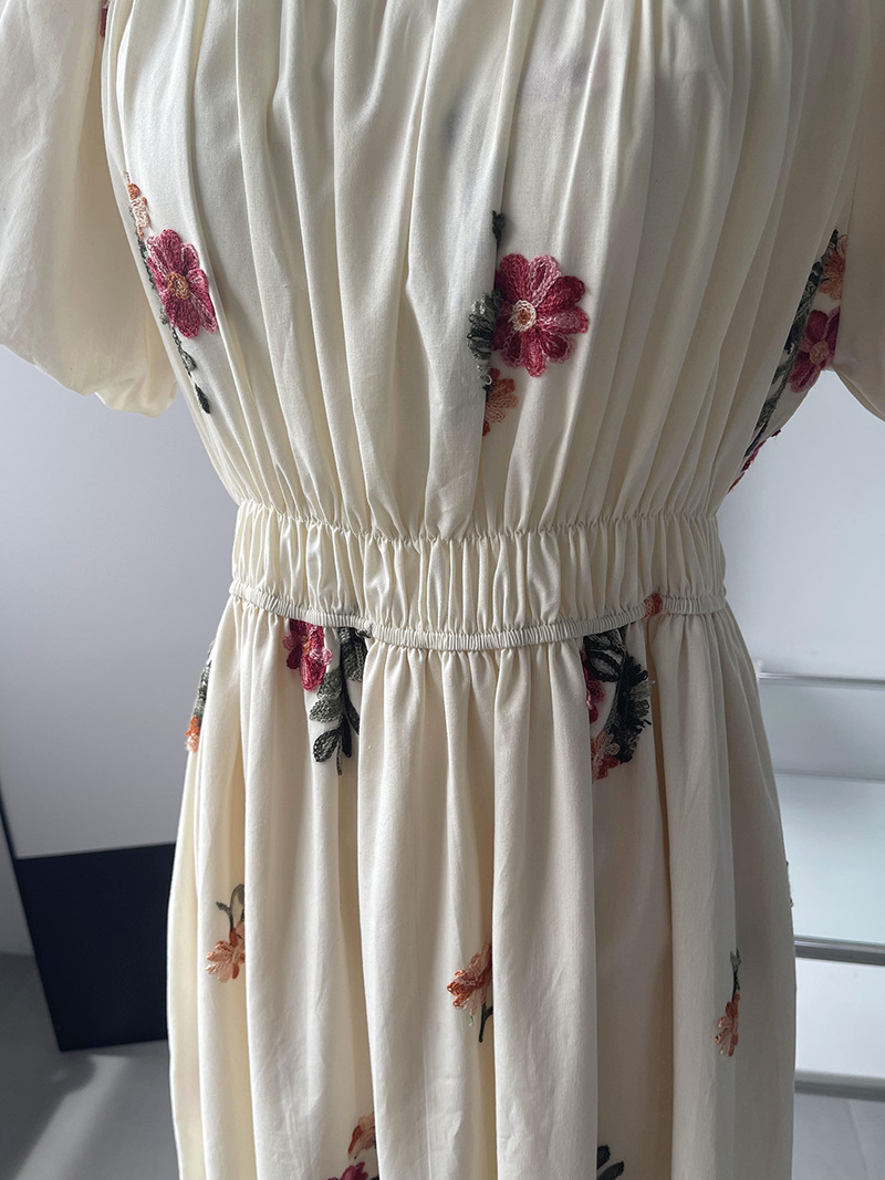 【ワンピース】夏 刺繍 エレガント 花柄 半袖 ワンピース 【SHシリーズ】