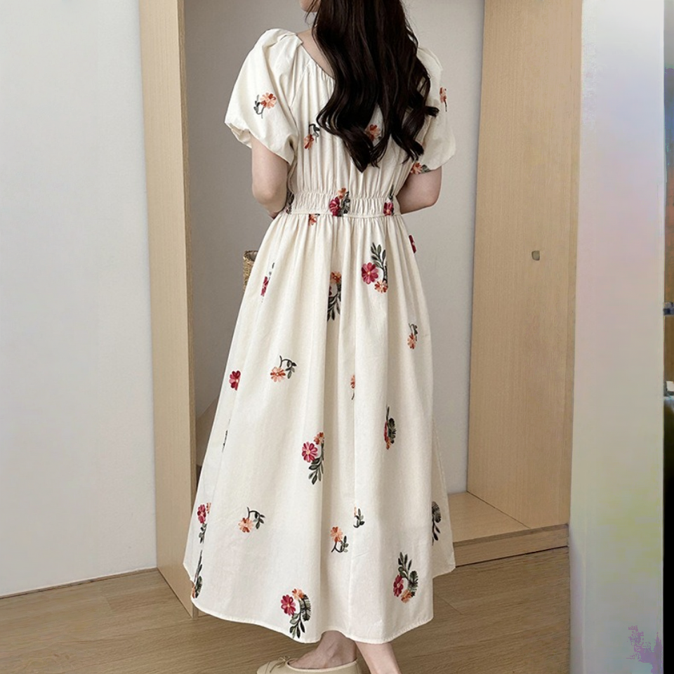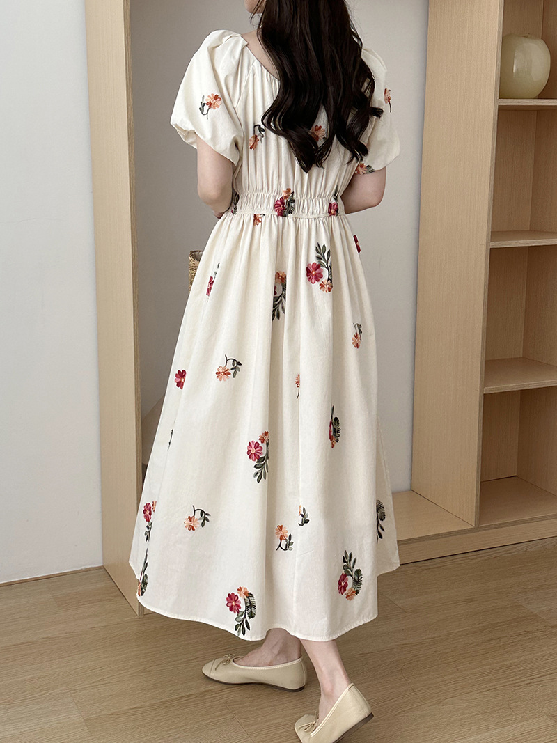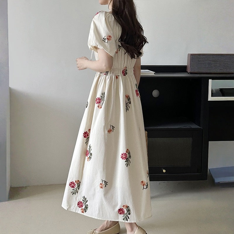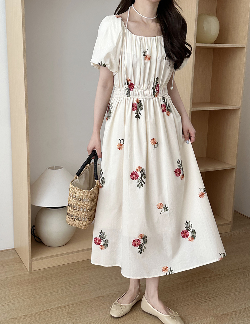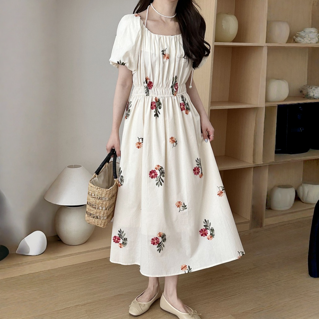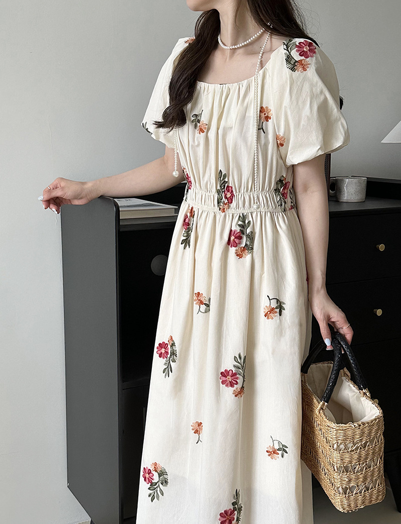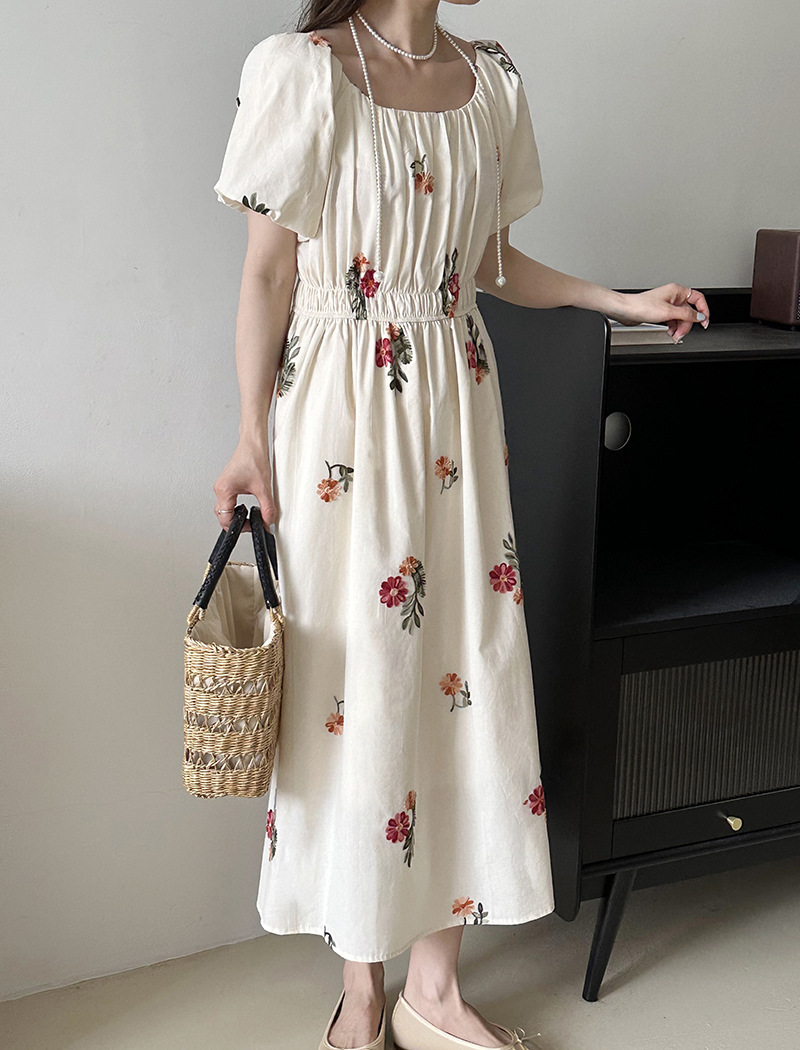 【ワンピース】夏 刺繍 エレガント 花柄 半袖 ワンピース 【SHシリーズ】
