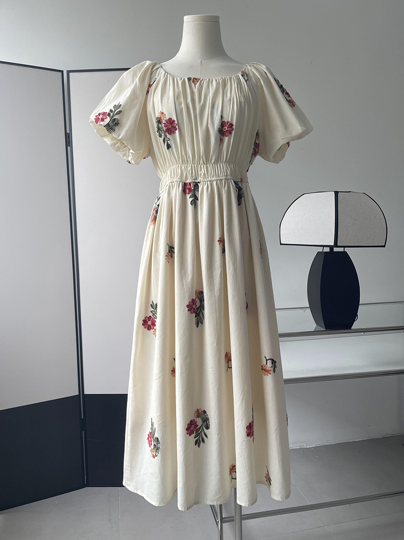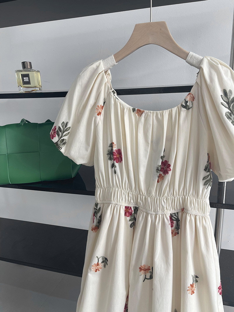 【商品名】【ワンピース】夏 刺繍 エレガント 花柄 半袖 ワンピース 【SHシリーズ】