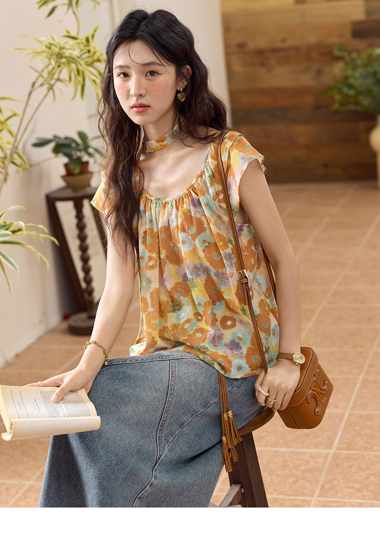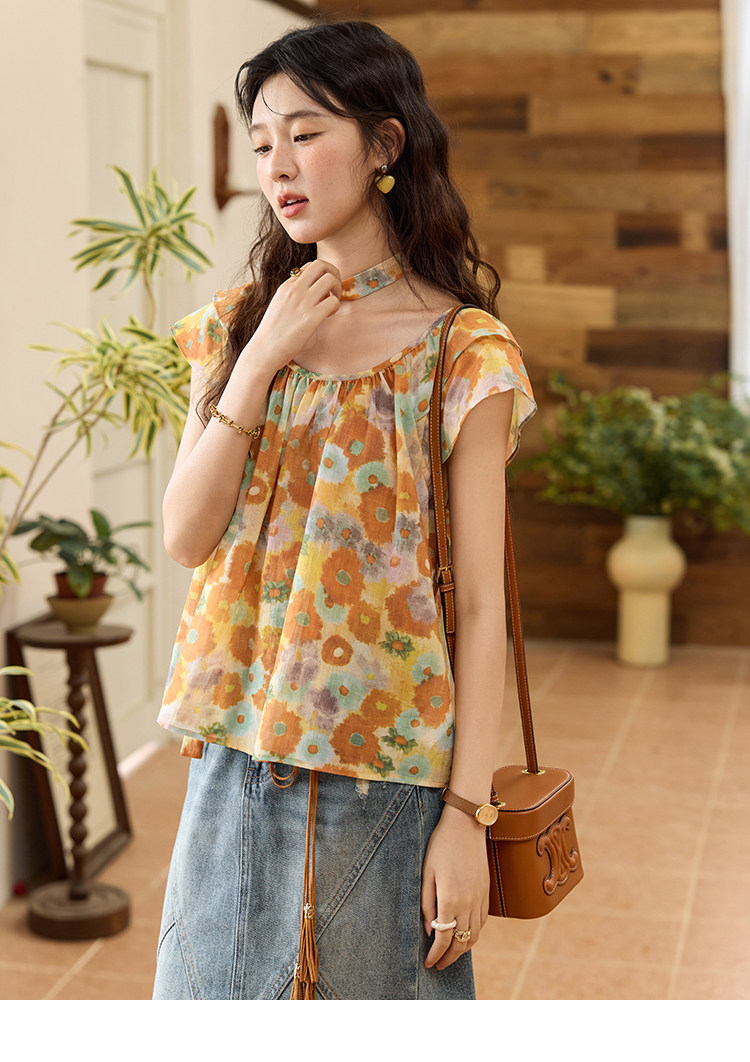 【トップス】夏 カジュアル リゾート風 綿100% 柑橘油絵プリント シャツ【JZシリーズ】【SHシリーズ】