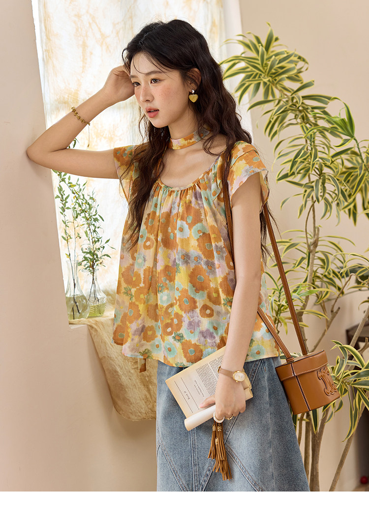 【商品名】【トップス】夏 カジュアル リゾート風 綿100% 柑橘油絵プリント シャツ【JZシリーズ】【SHシリーズ】