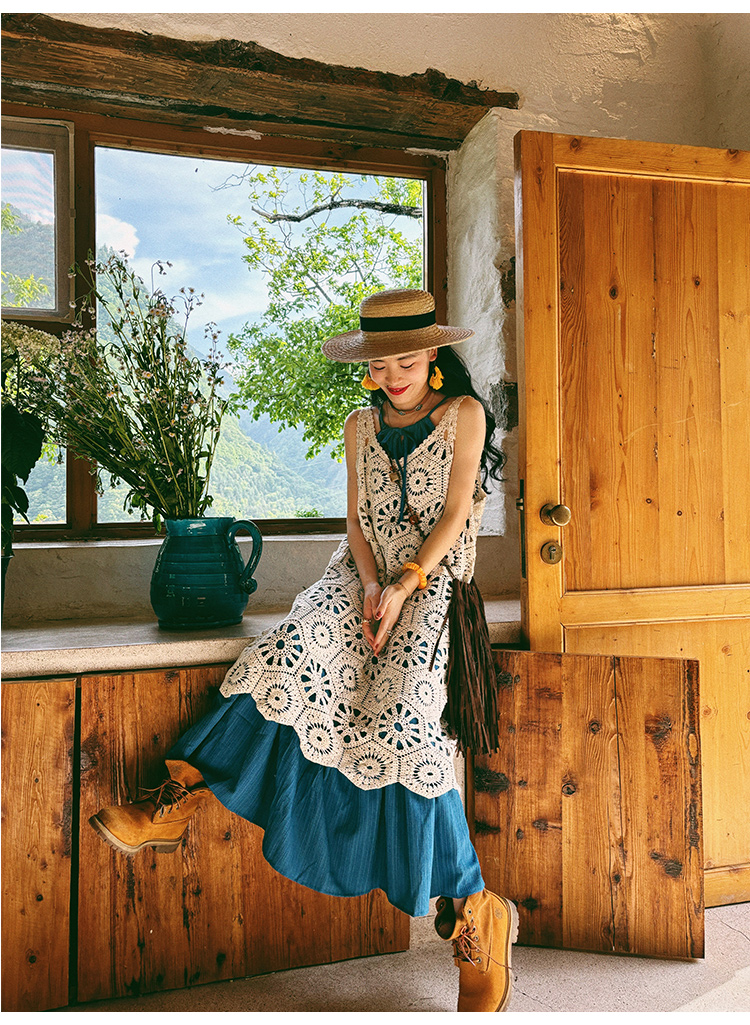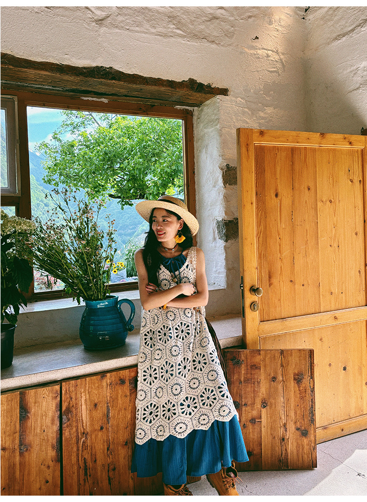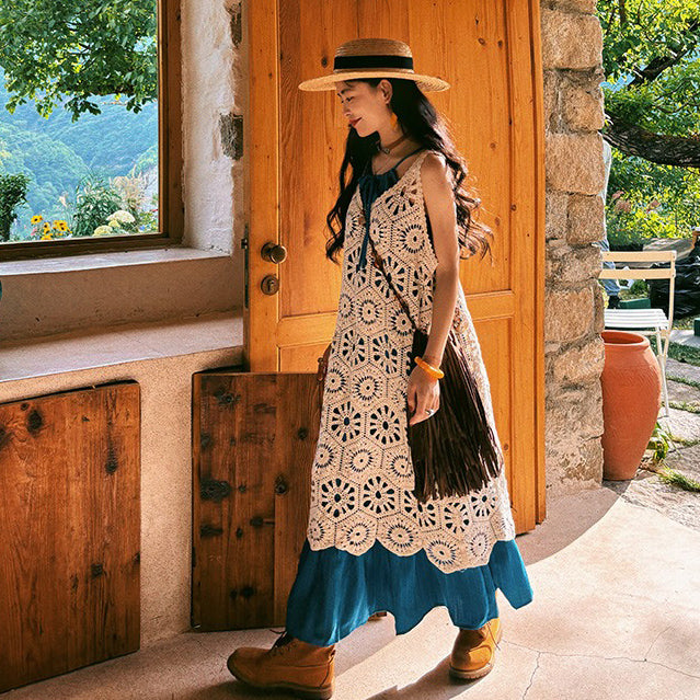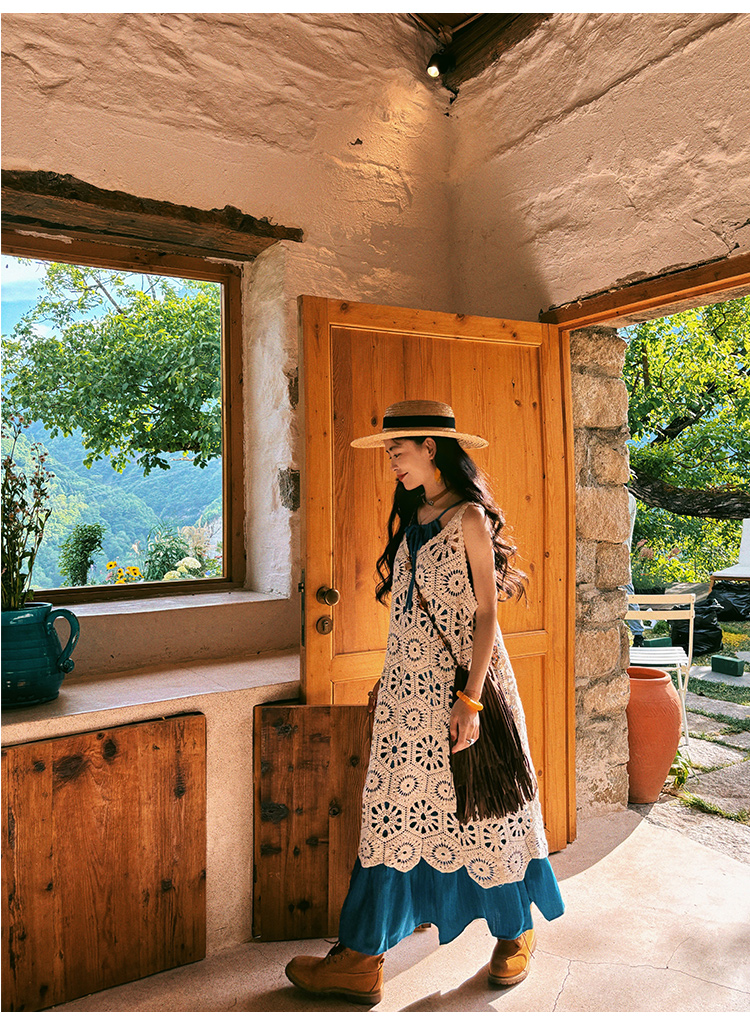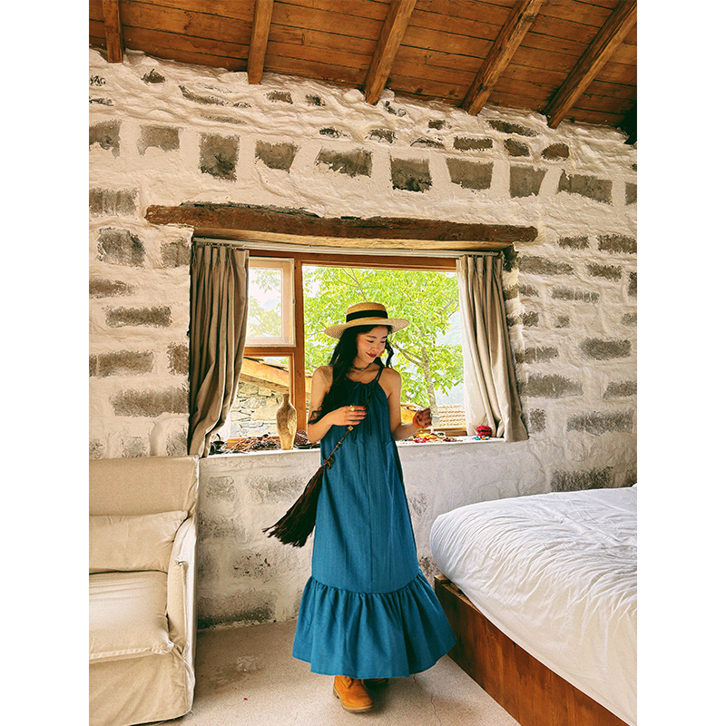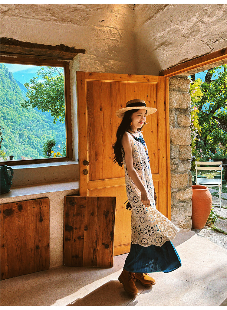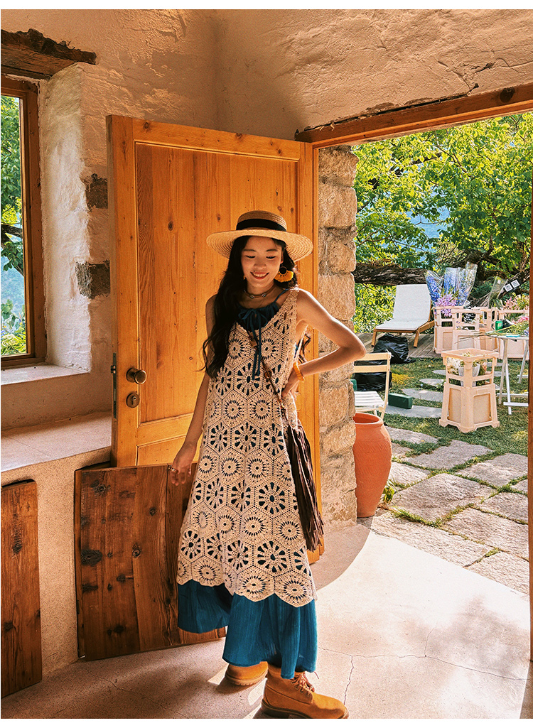【商品名】【ワンピース】ビーチリゾート 夏 ヴィンテージ風 ゆったり 無地ノースリーブワンピース【JZシリーズ】
