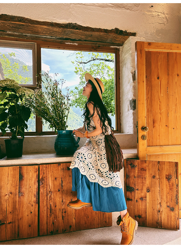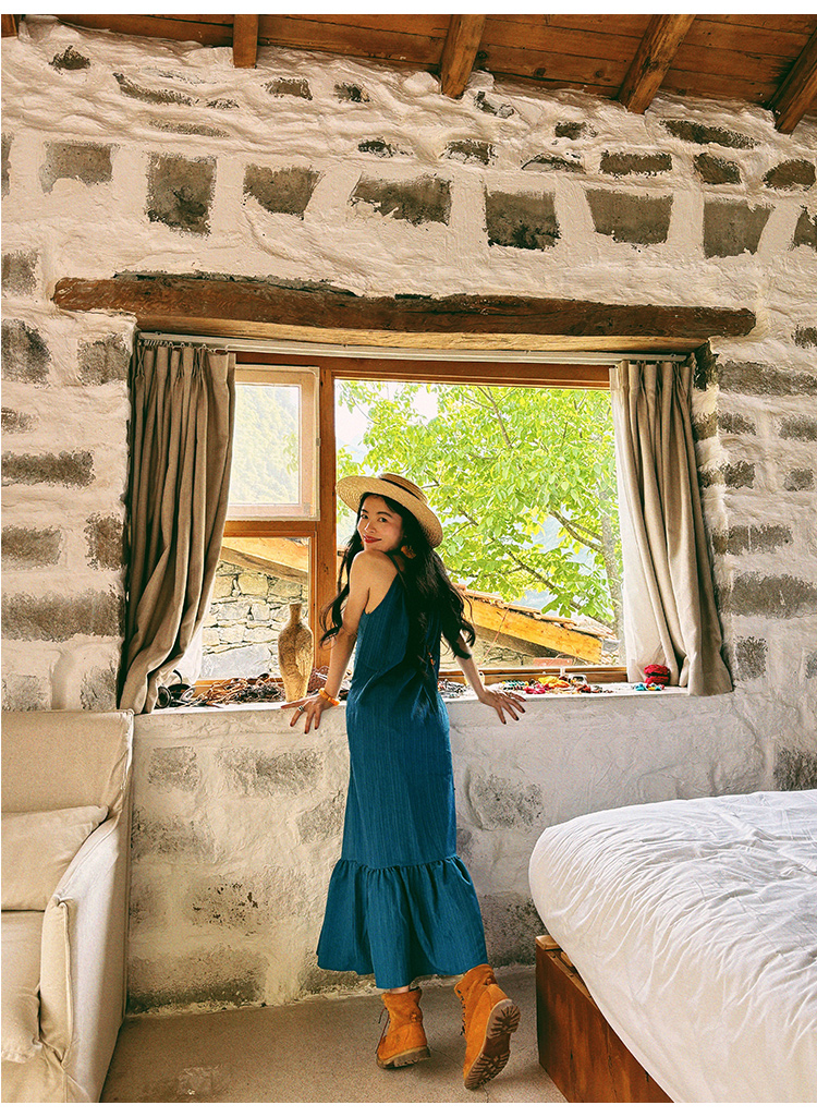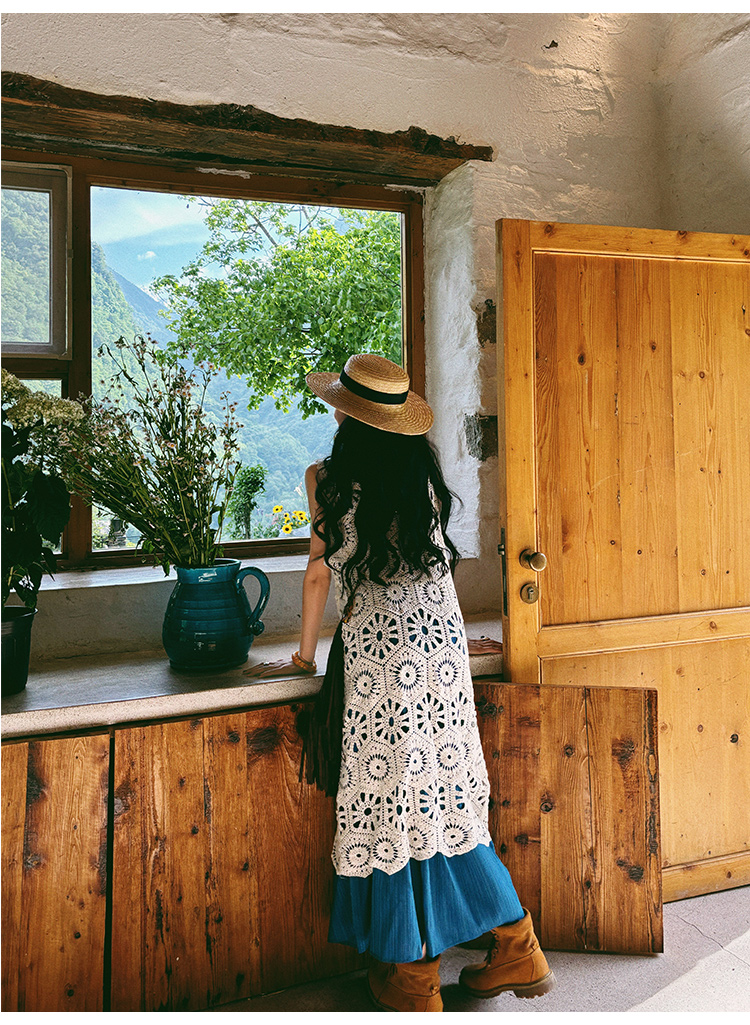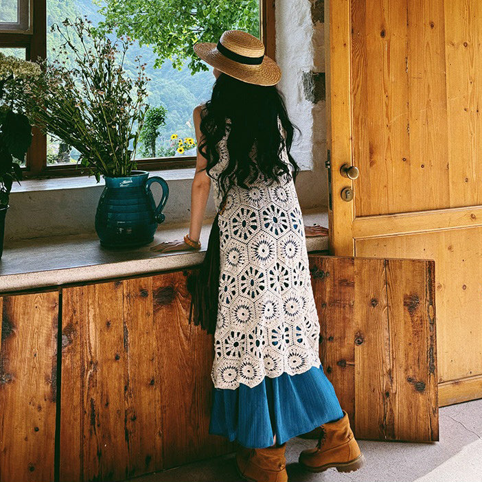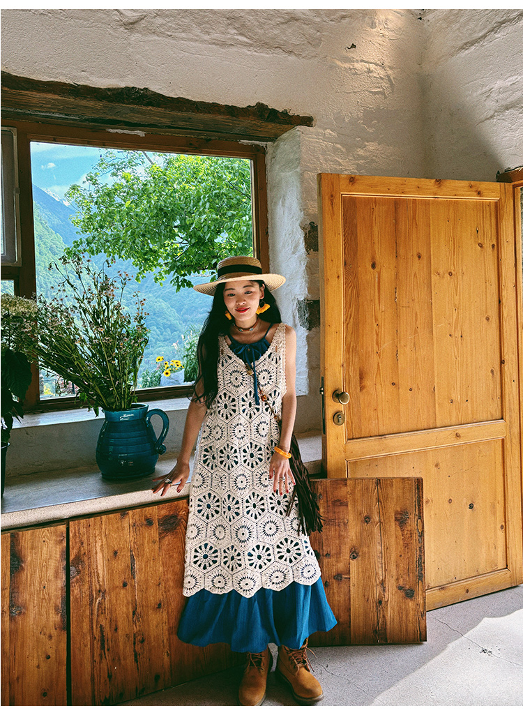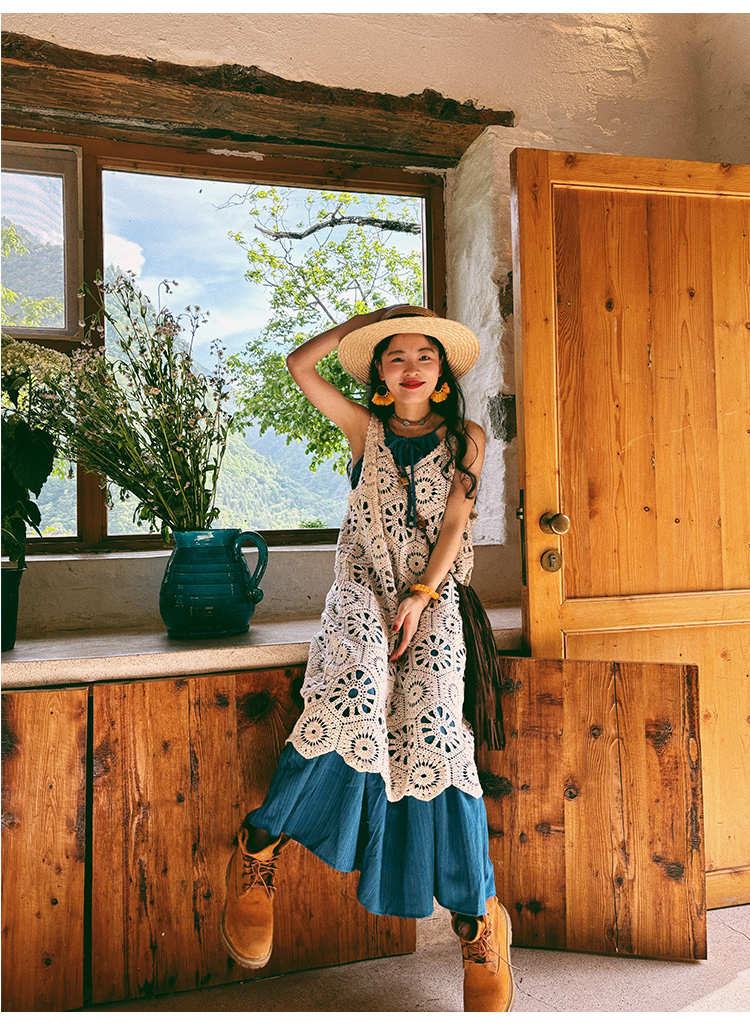 【商品名】【ワンピース】ビーチリゾート 夏 ヴィンテージ風 ゆったり 無地ノースリーブワンピース【JZシリーズ】