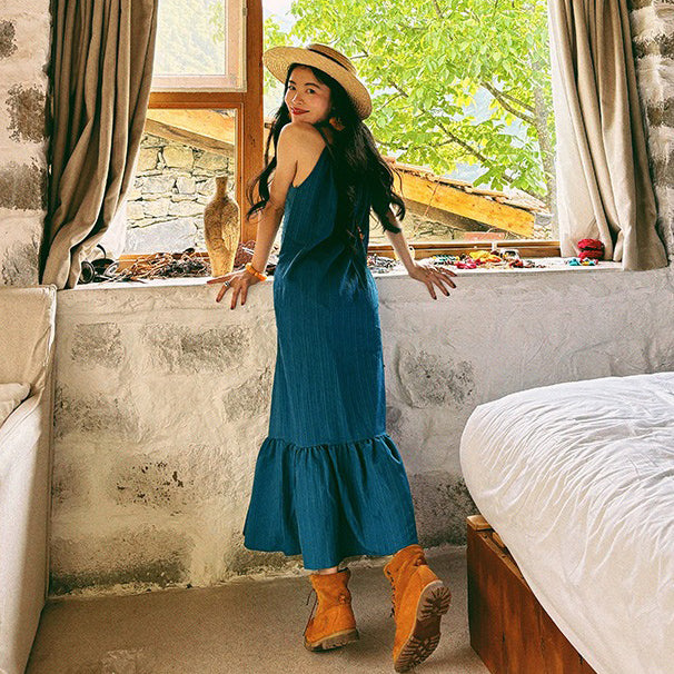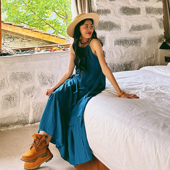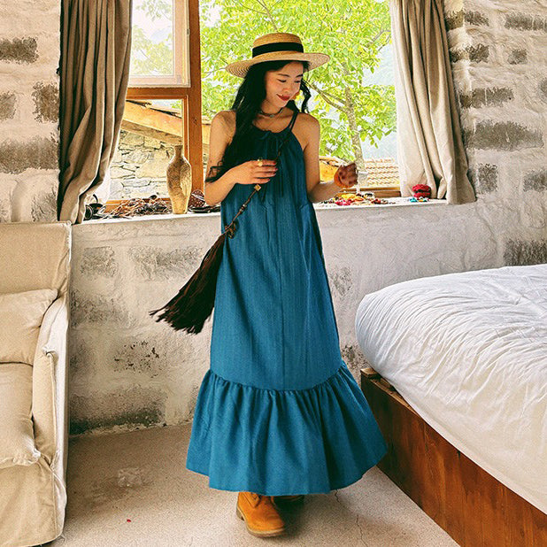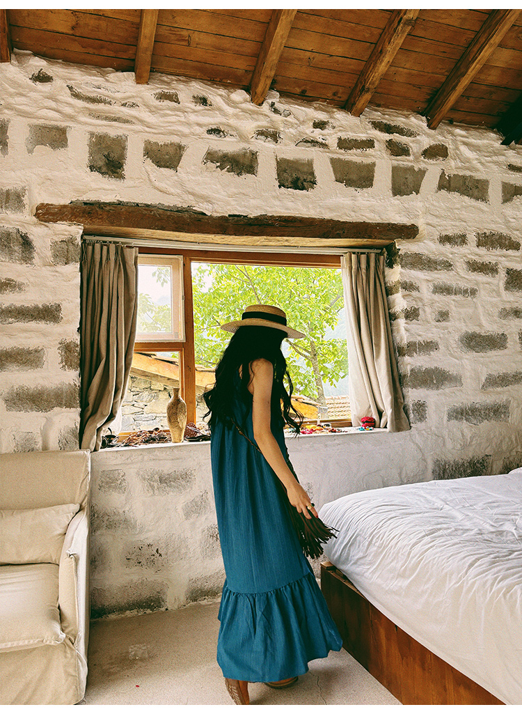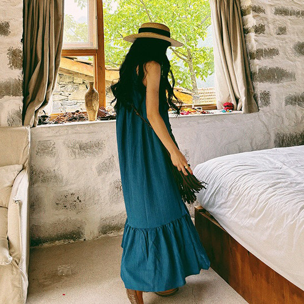 【ワンピース】ビーチリゾート 夏 ヴィンテージ風 ゆったり 無地ノースリーブワンピース【JZシリーズ】