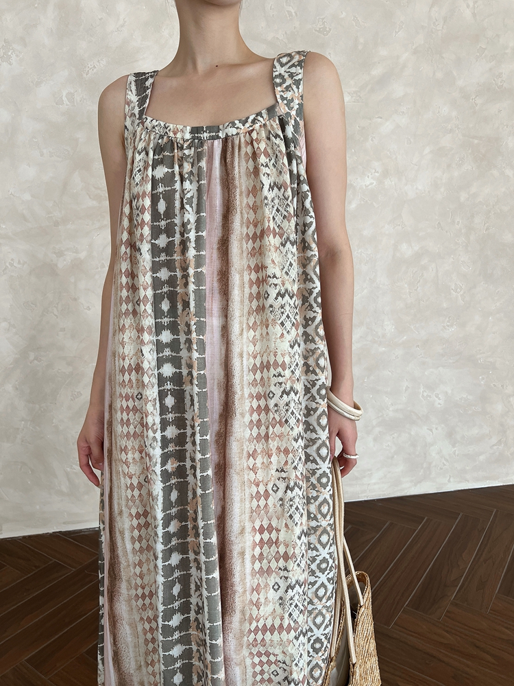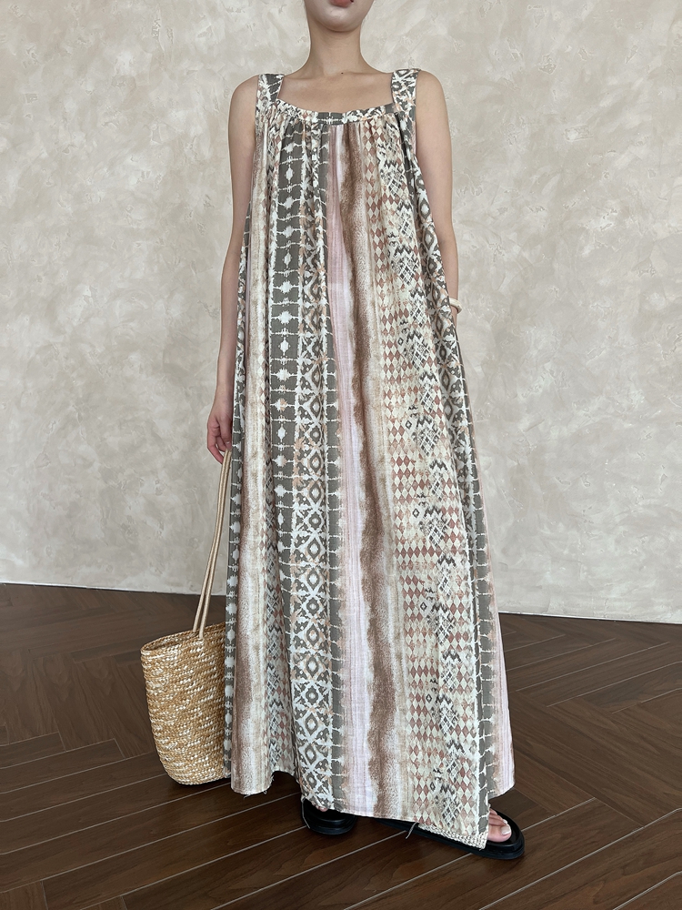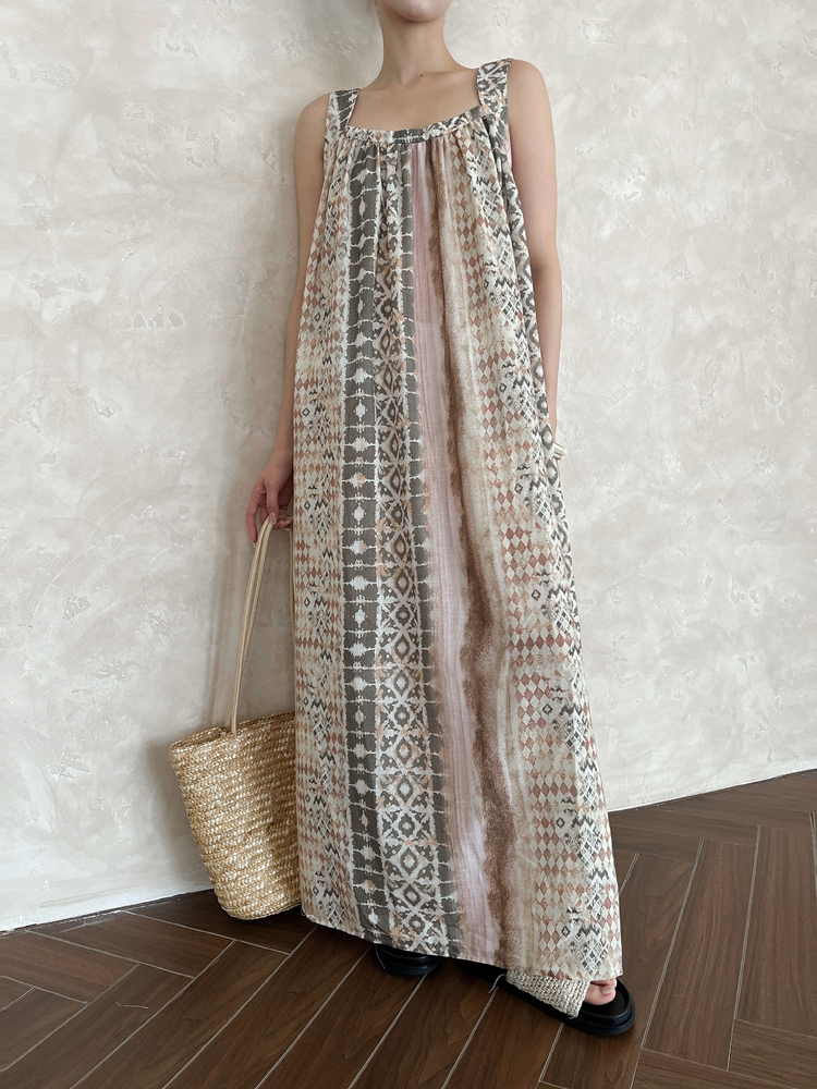 【ワンピース】夏 フランス風 花柄 キャミソール 前後2WAY ノースリーブ ワンピース 【SHシリーズ】