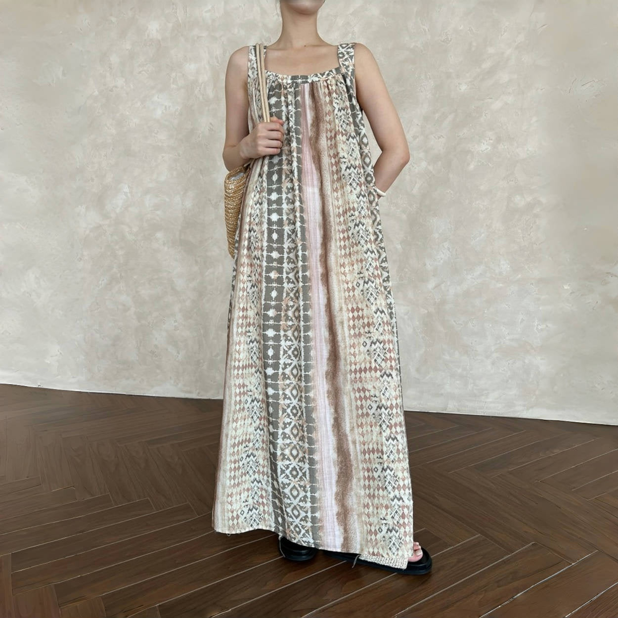 【商品名】【ワンピース】夏 フランス風 花柄 キャミソール 前後2WAY ノースリーブ ワンピース 【SHシリーズ】