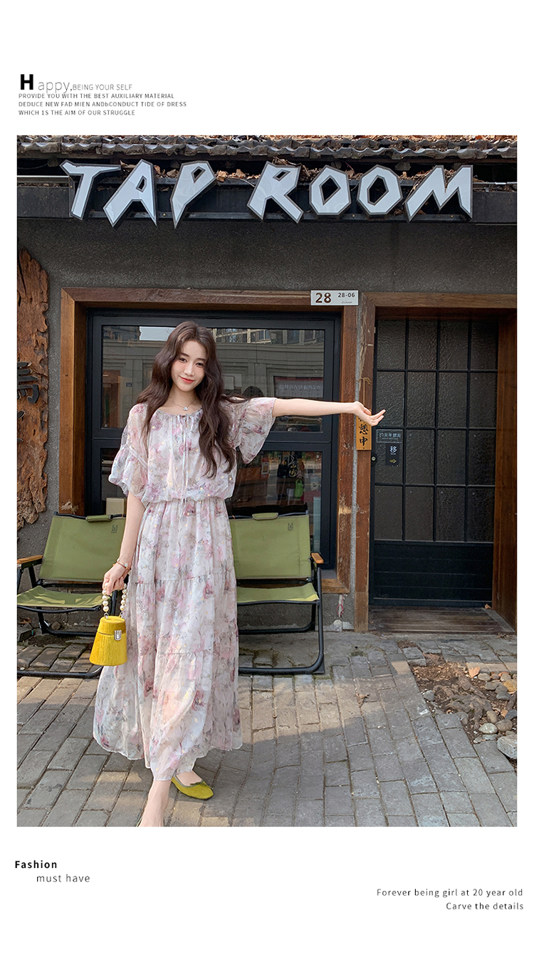 【商品名】【ワンピース】フレンチ オフショルダー フリルスリーブ 花柄ワンピース 夏 高見え ロングドレス【SHシリーズ】