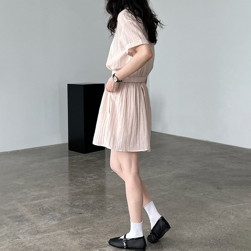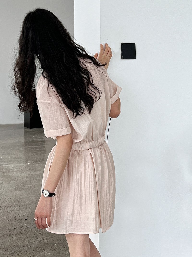 【商品名】2点セット!【ボトムス】日系シンプル 半袖シャツ+ワイドショートスカート 夏 通勤&カジュアル上下セット【JZシリーズ】