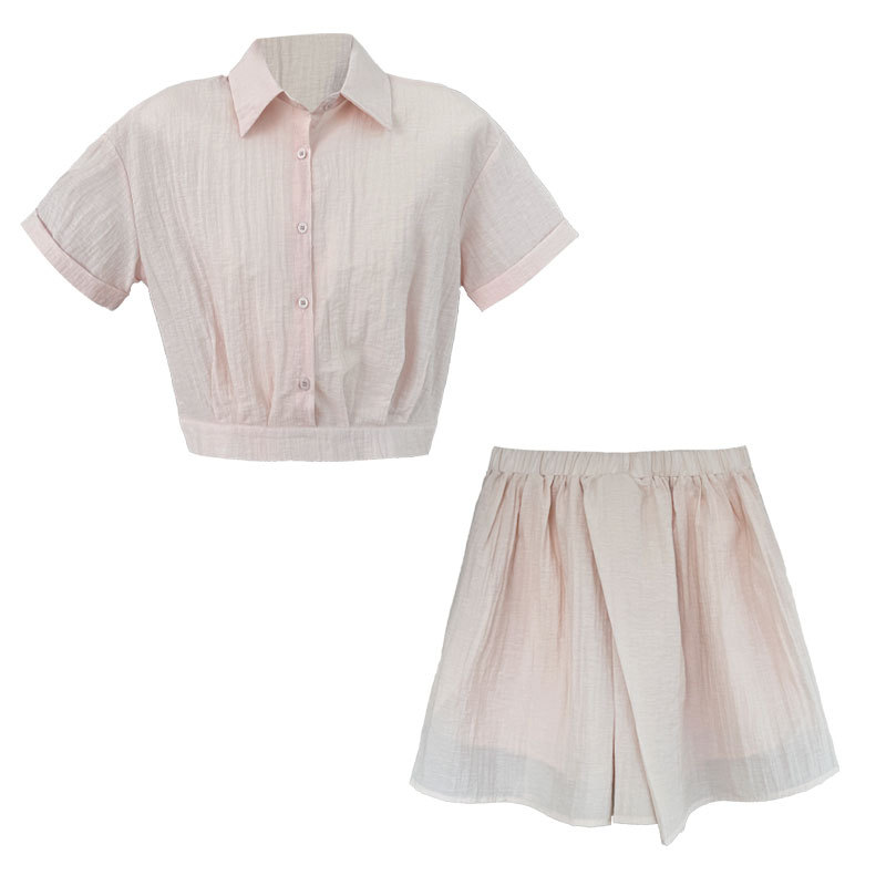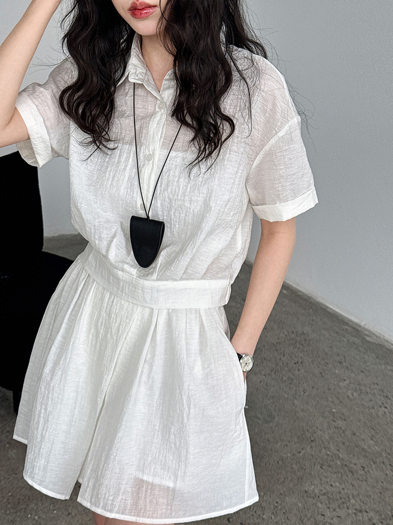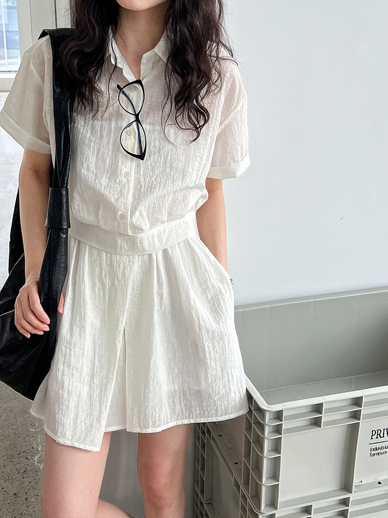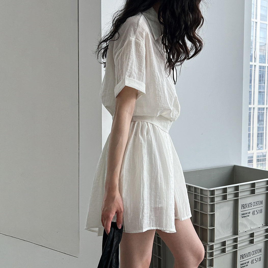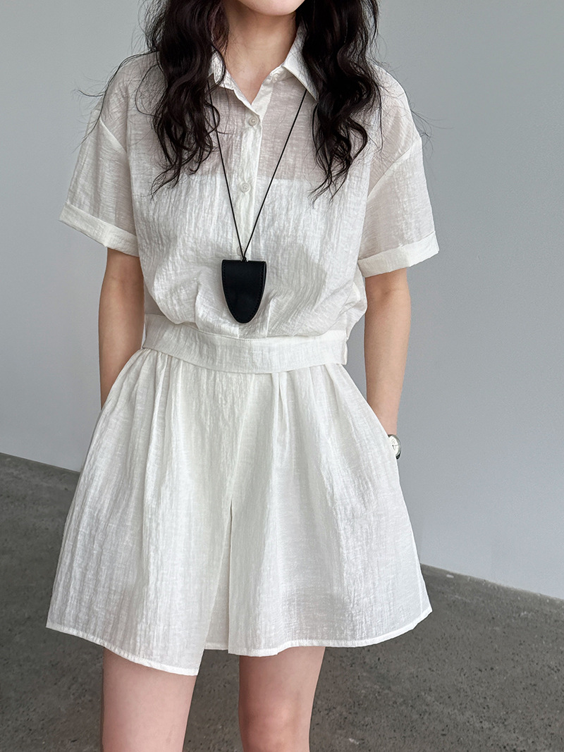 2点セット!【セットアップ】日系シンプル 半袖シャツ+ワイドショートスカート 夏 通勤&カジュアル上下セット【JZシリーズ】
