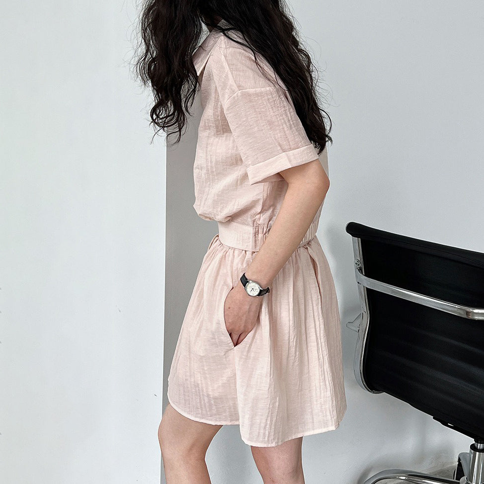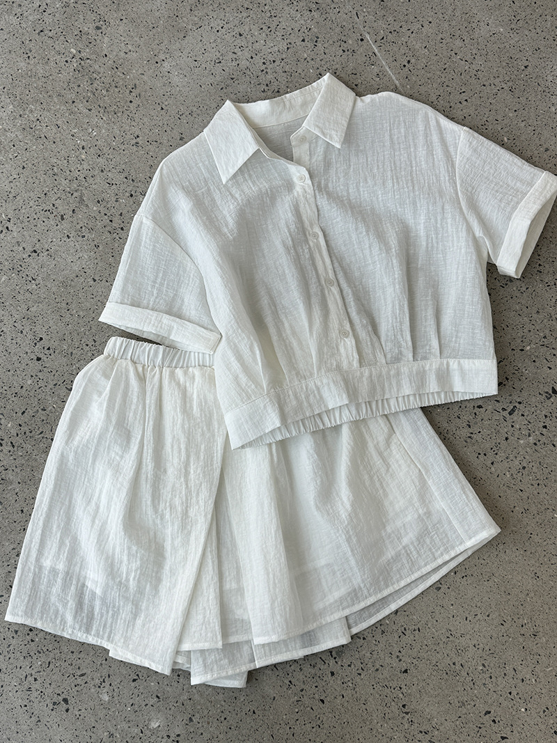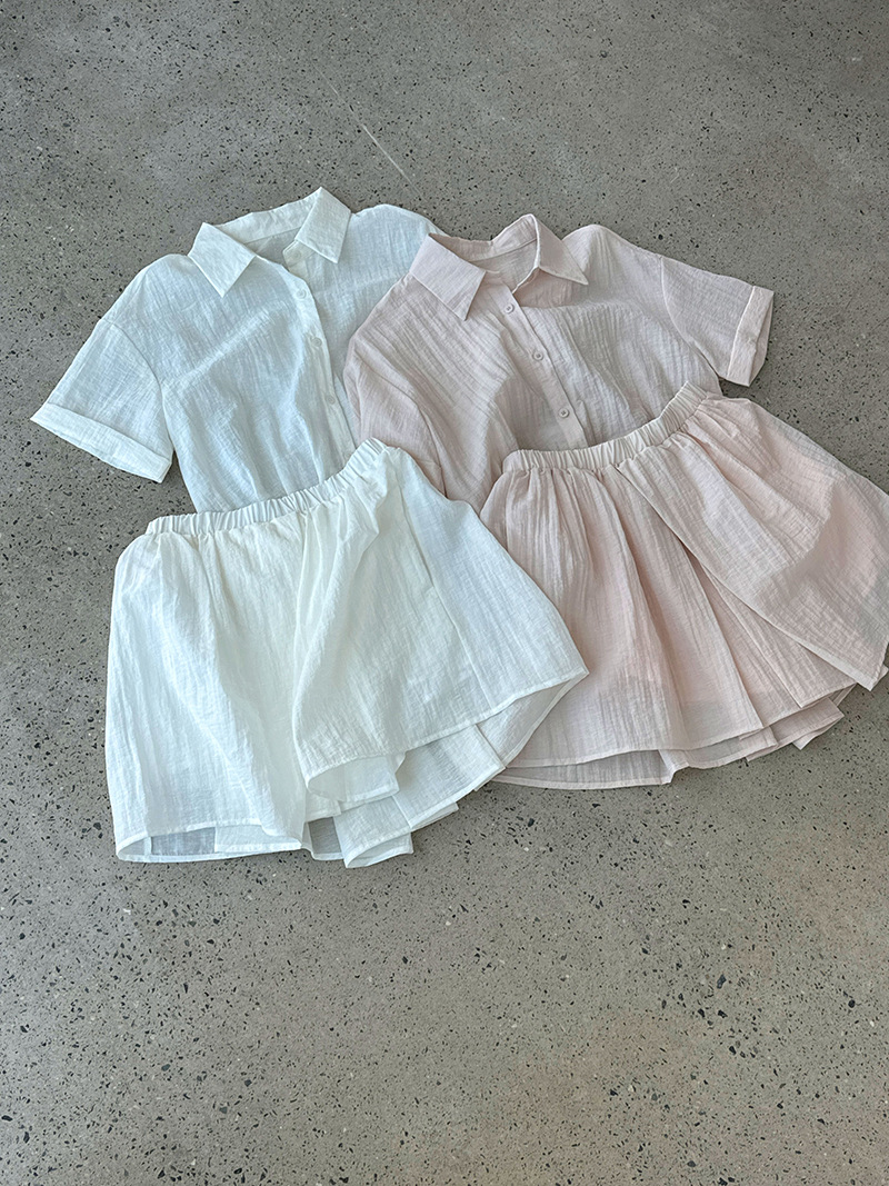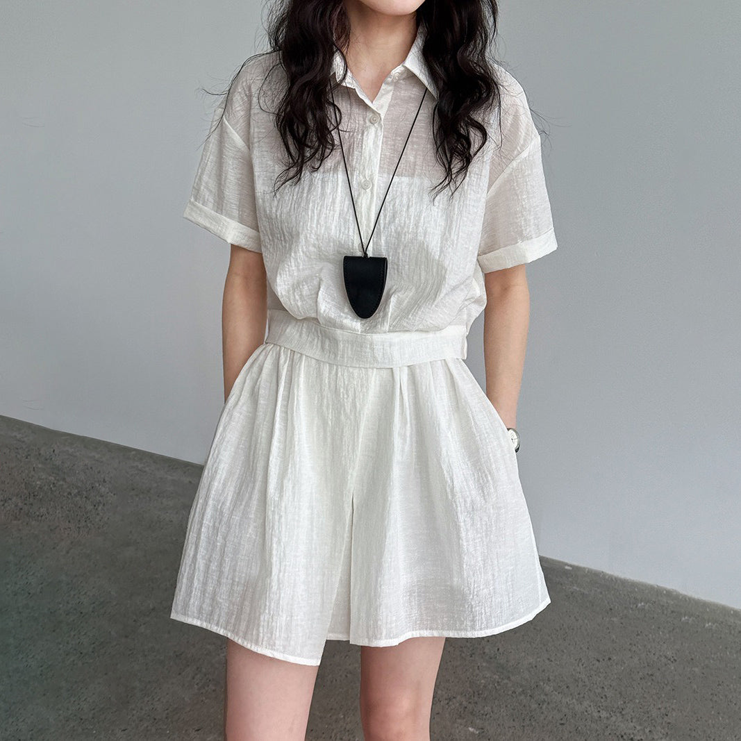 2点セット!【セットアップ】日系シンプル 半袖シャツ+ワイドショートスカート 夏 通勤&カジュアル上下セット【JZシリーズ】