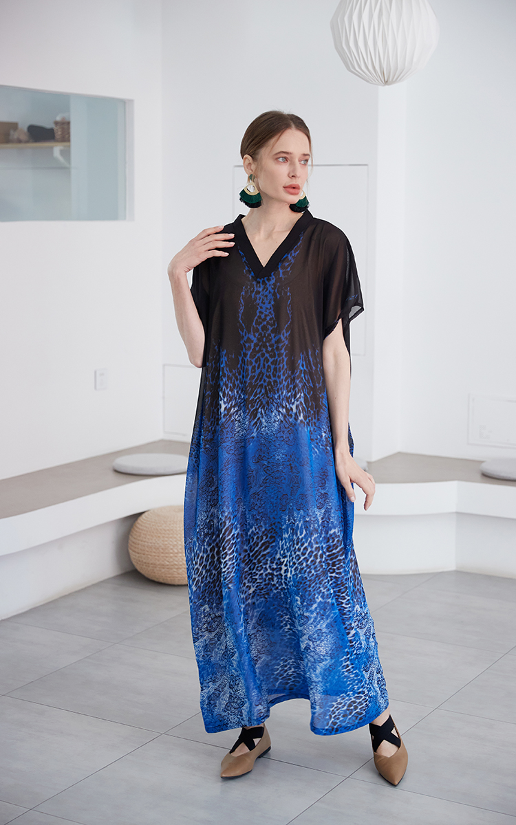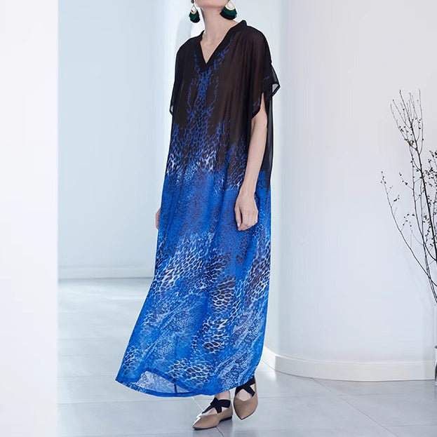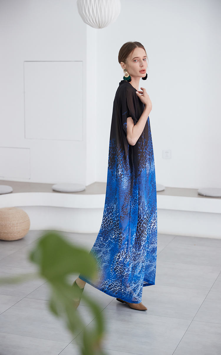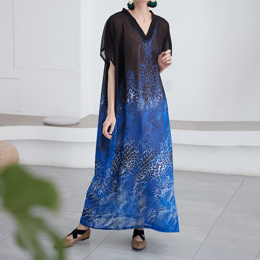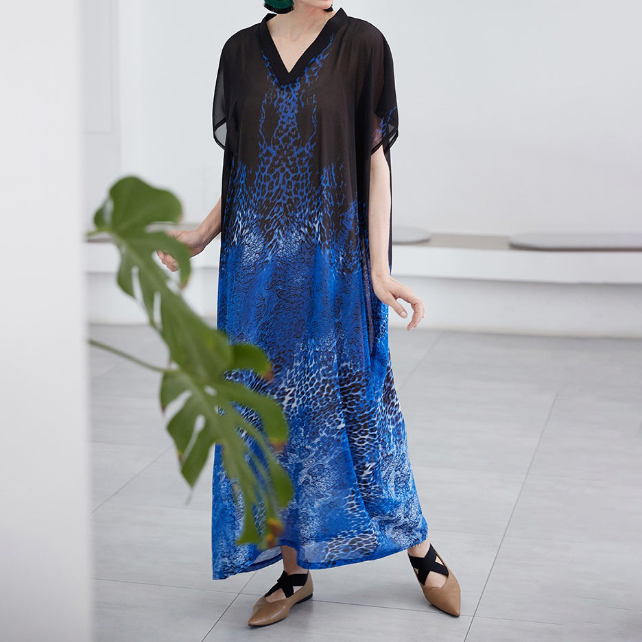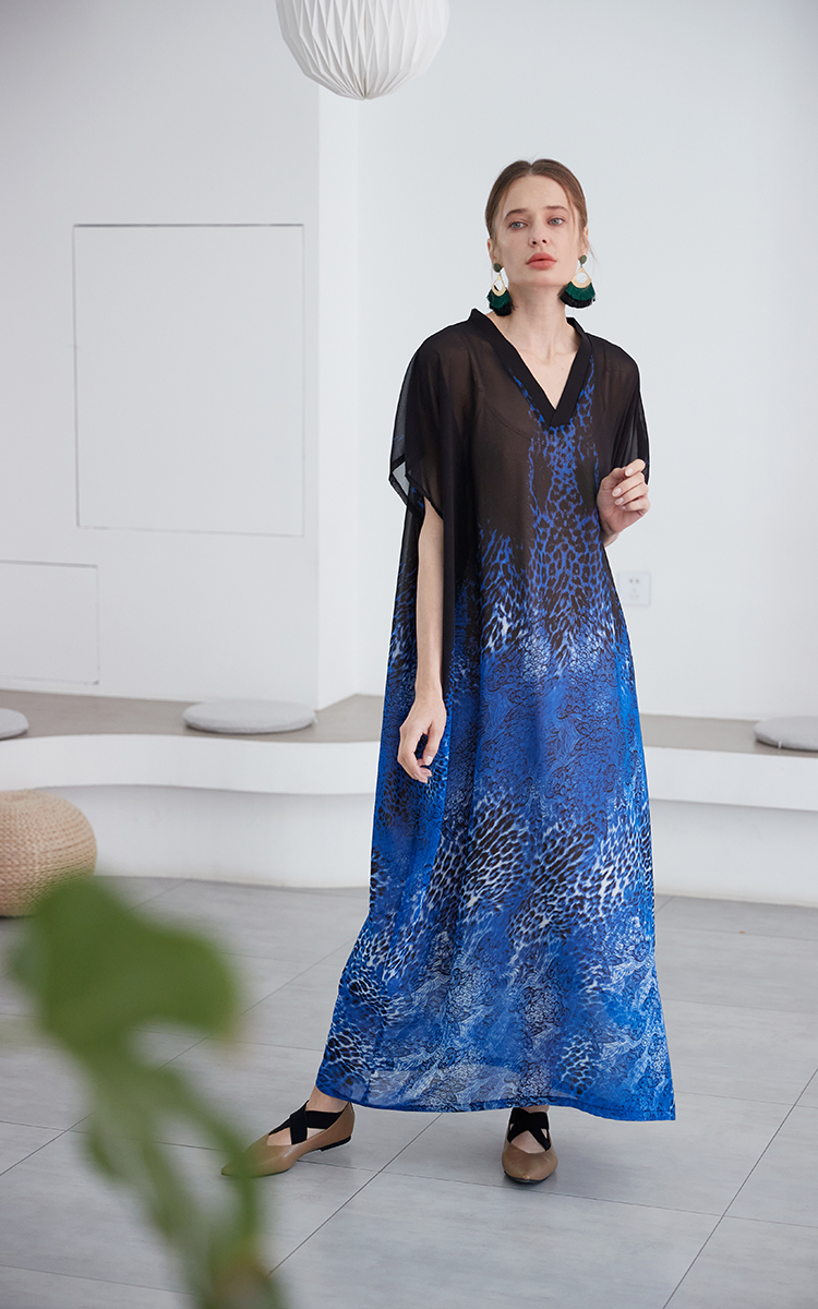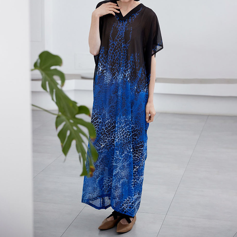 【ワンピース】上品 フレアシルエット ゆったり ロング丈 バカンス風 半袖 ワンピース【SHシリーズ】