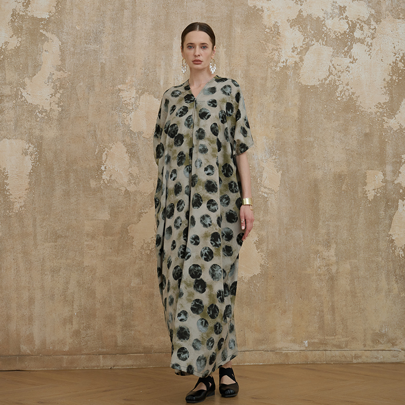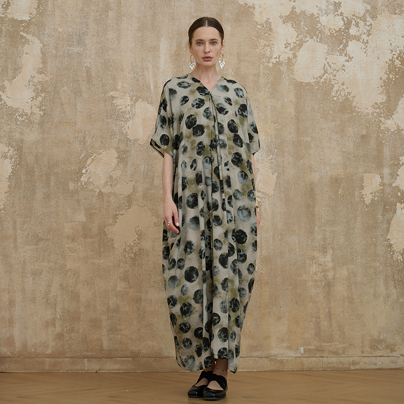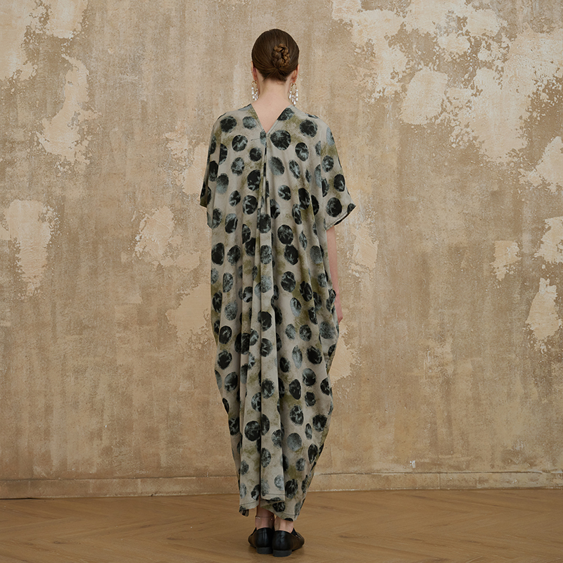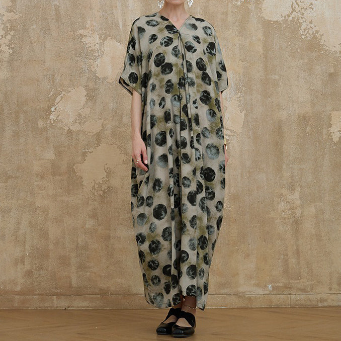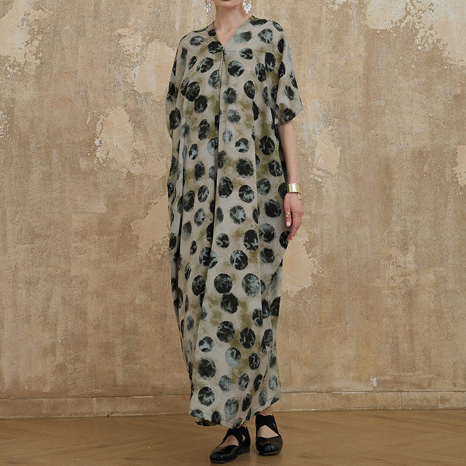【ワンピース】ヴィンテージ風 ゆったり 大きめサイズ ロング丈 細見え 上品 半袖 ワンピース【SHシリーズ】