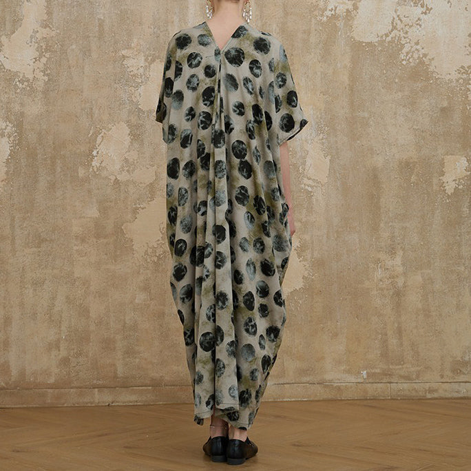 【商品名】【ワンピース】ヴィンテージ風 ゆったり 大きめサイズ ロング丈 細見え 上品 半袖 ワンピース【SHシリーズ】