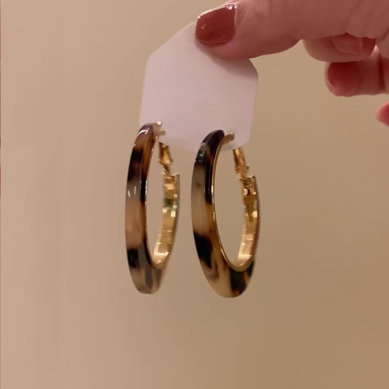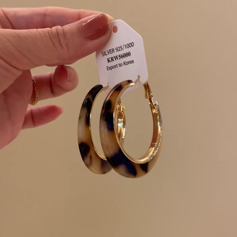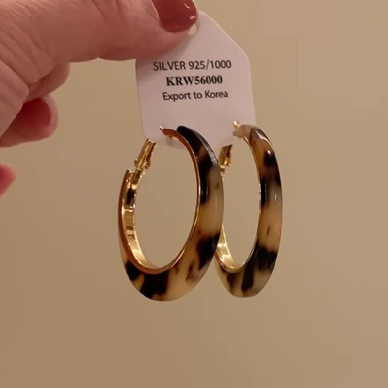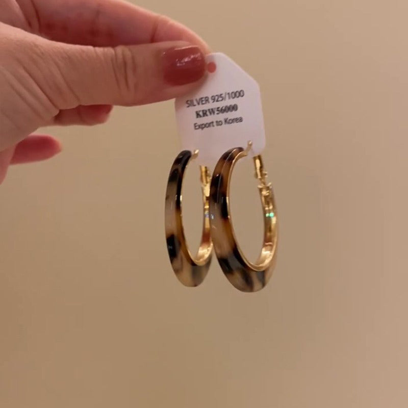 【グッズ】S925シルバー× キャラメルレオパード柄 ピアス 丸顔・面長フェイスもすっきり見え♪