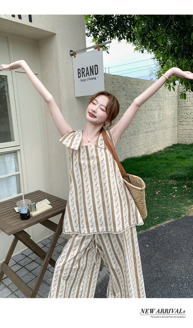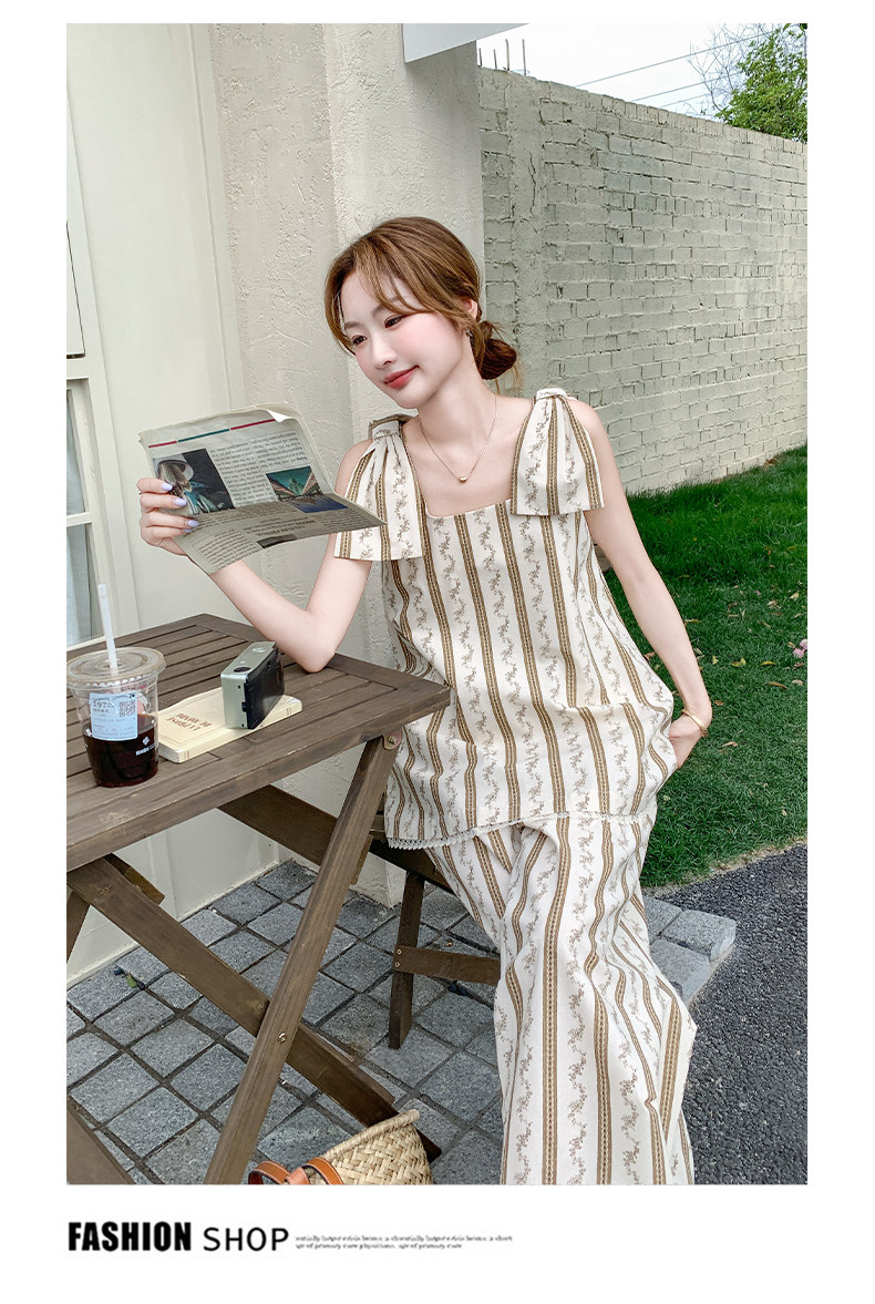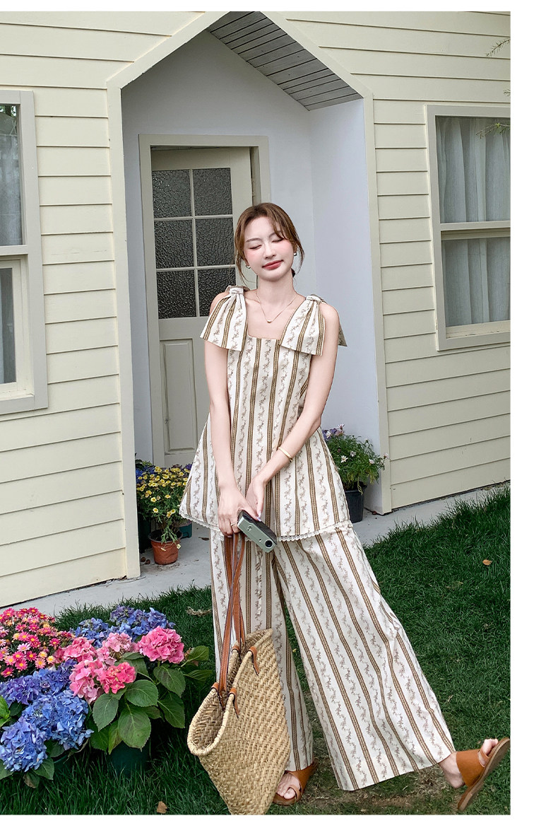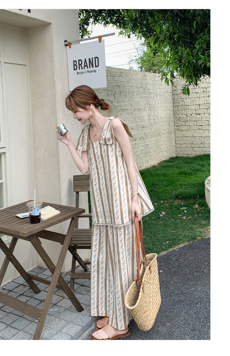 2点セット!【セットアップ】ストライプ柄キャミソール+ワイドパンツ 上下 セットアップ 夏 フレンチリゾート風【SHシリーズ】