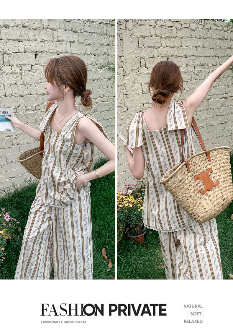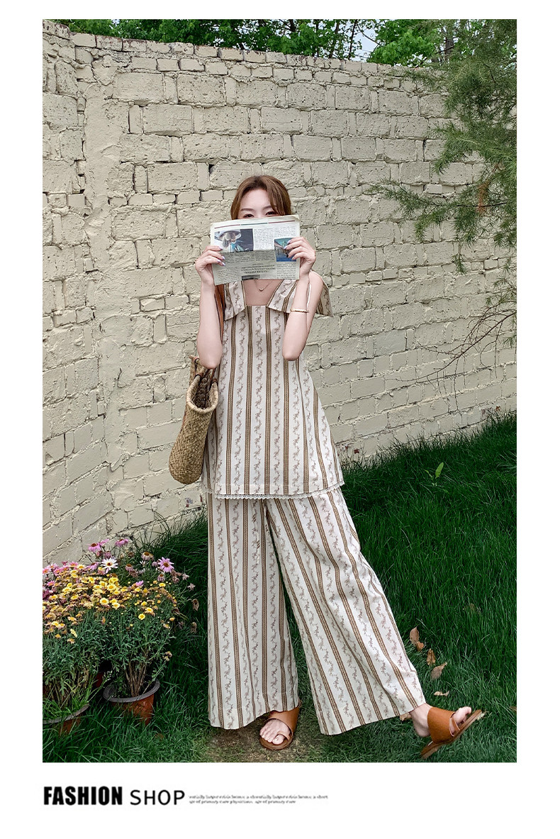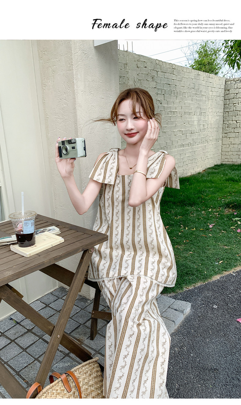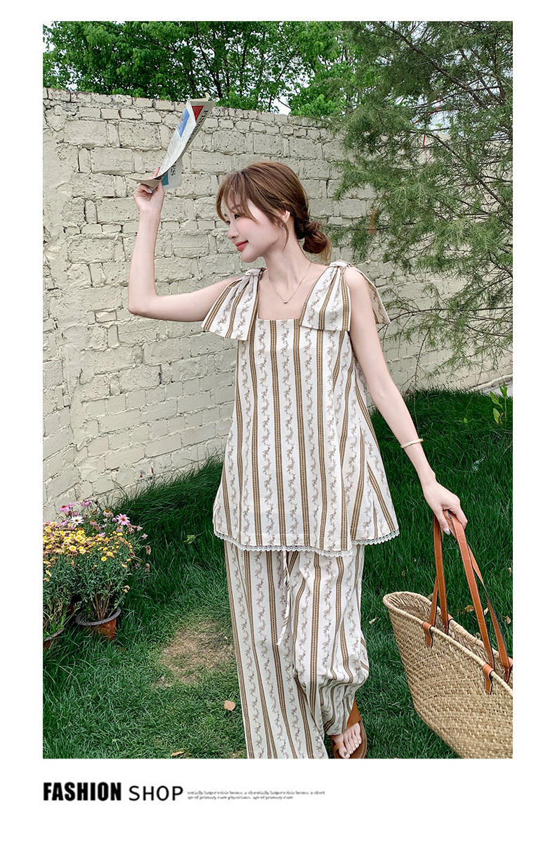 2点セット!【セットアップ】ストライプ柄キャミソール+ワイドパンツ 上下 セットアップ 夏 フレンチリゾート風【SHシリーズ】